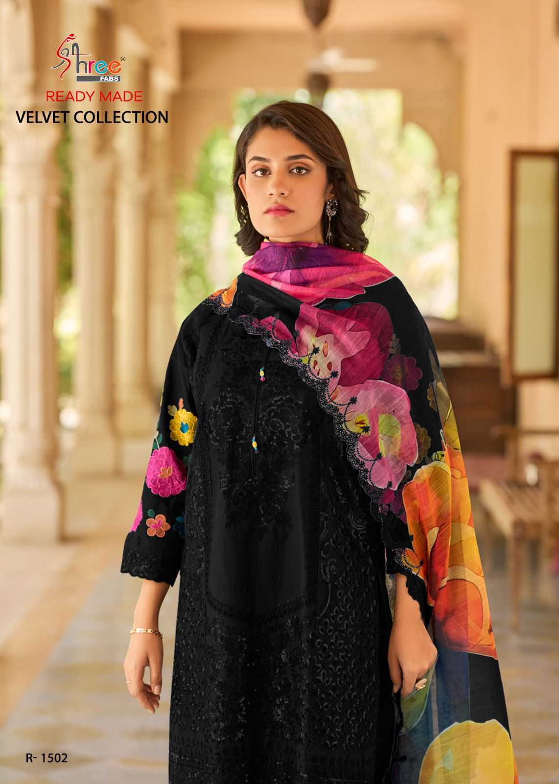 r 1502 by shree fab attractive look velvet readymade 3pcs suits