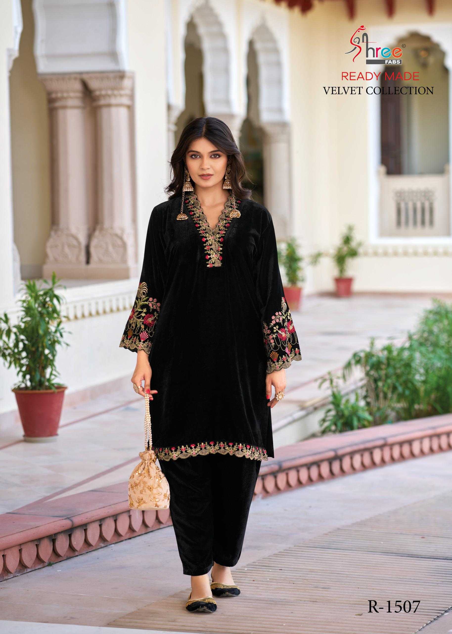 R 1507 design number velvet code set shree fabs