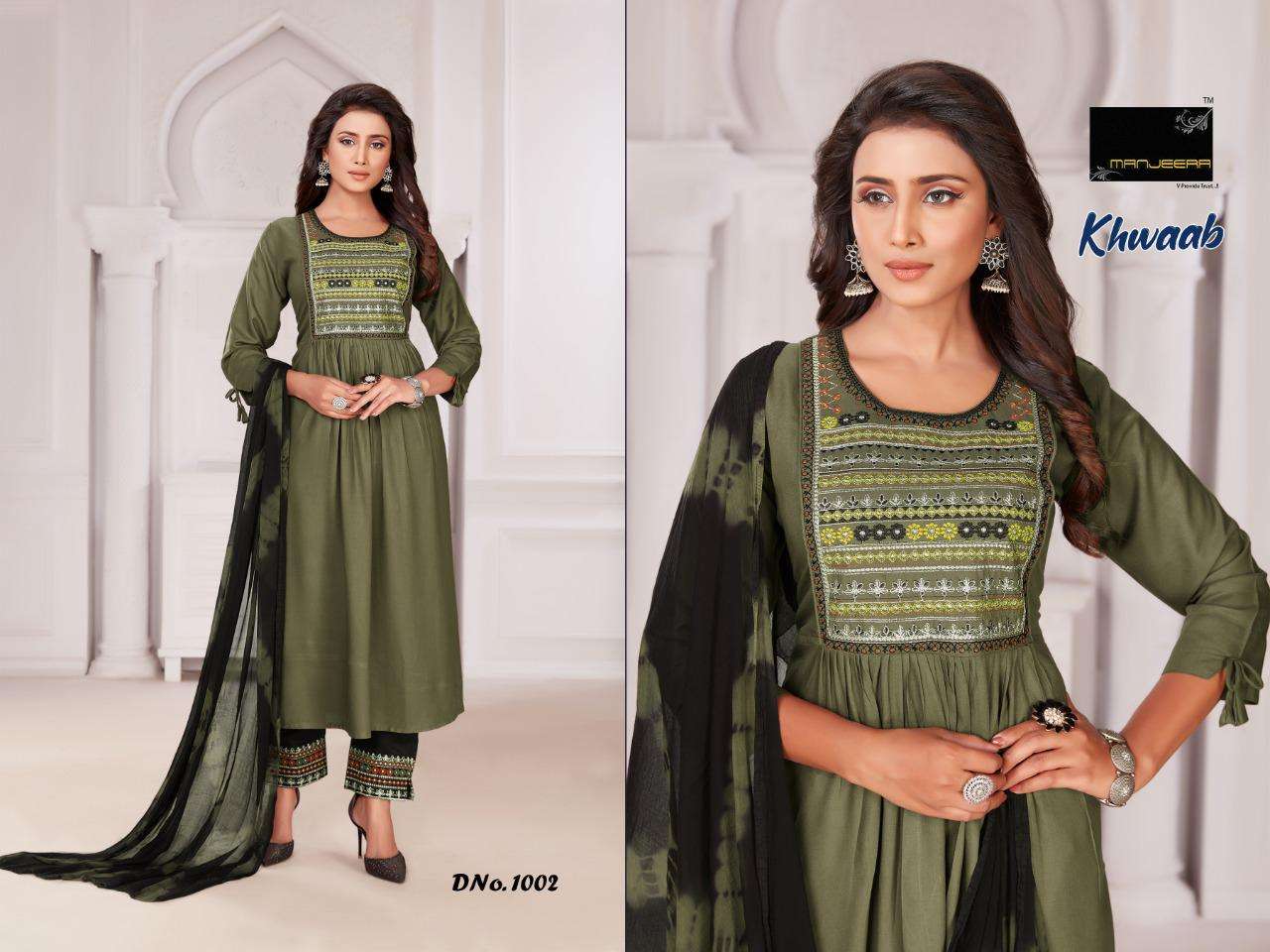 R R FASHION KHWAB TOP:- SATIN GEORGETTE ( WITH INNER SANTOON) BOTTOM :- SANTOON (2.25) DUPATTA :- GEORGETTE RATE :- 725/- |