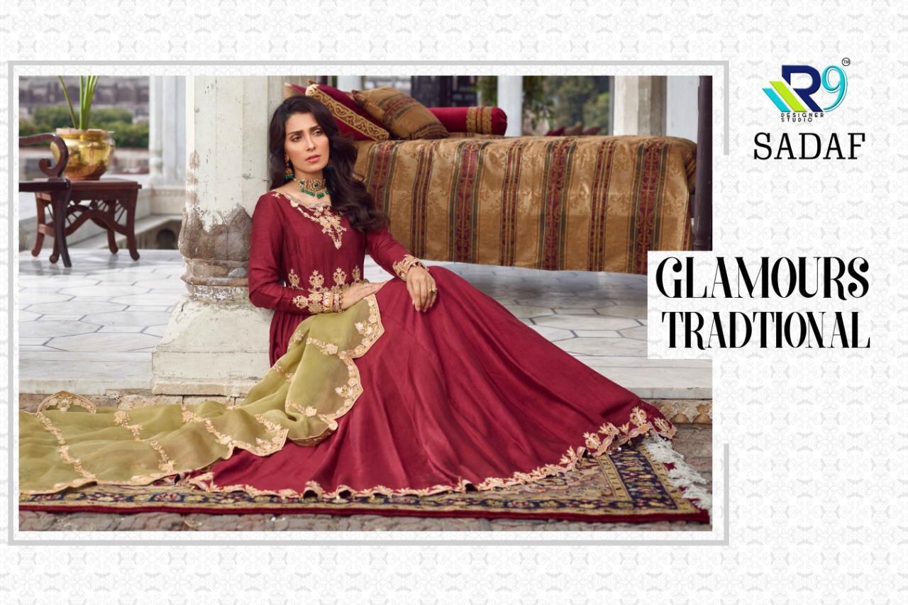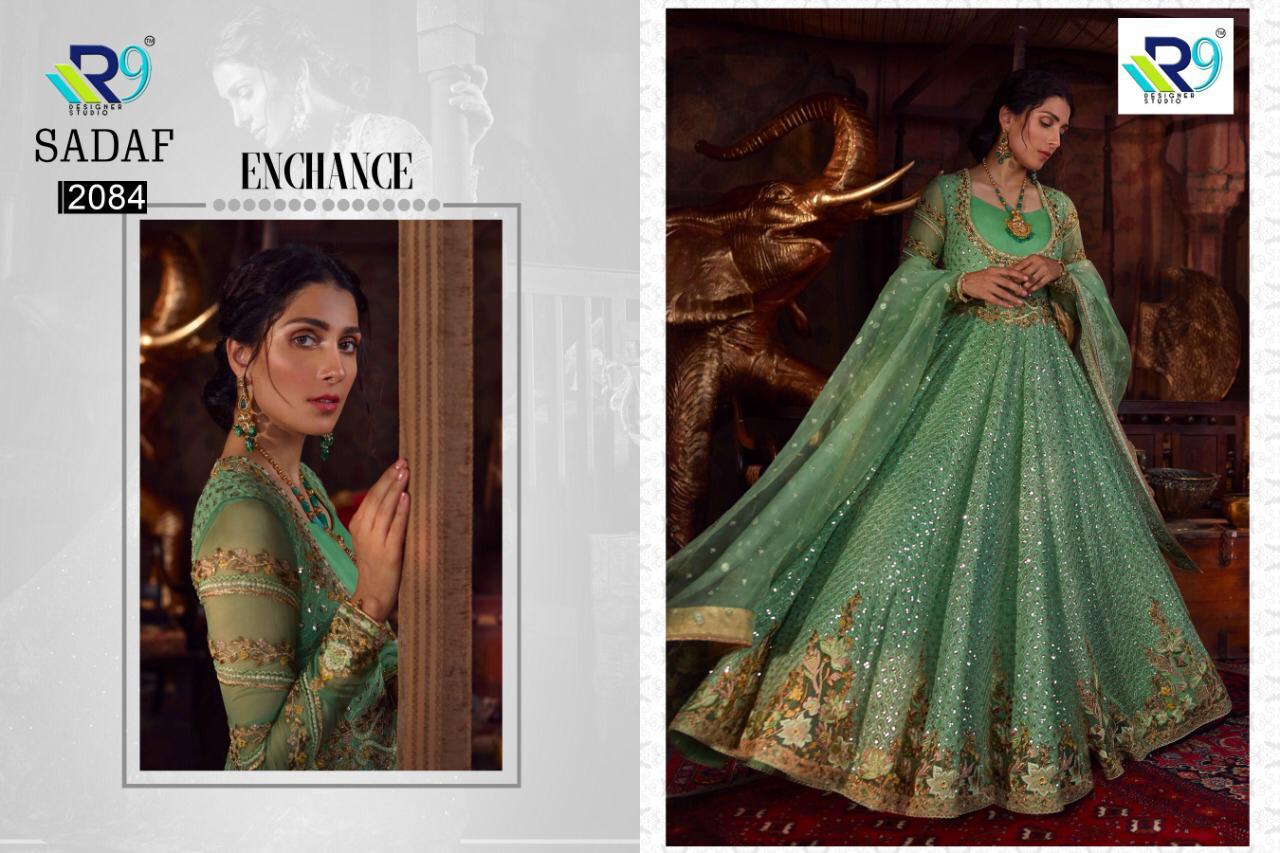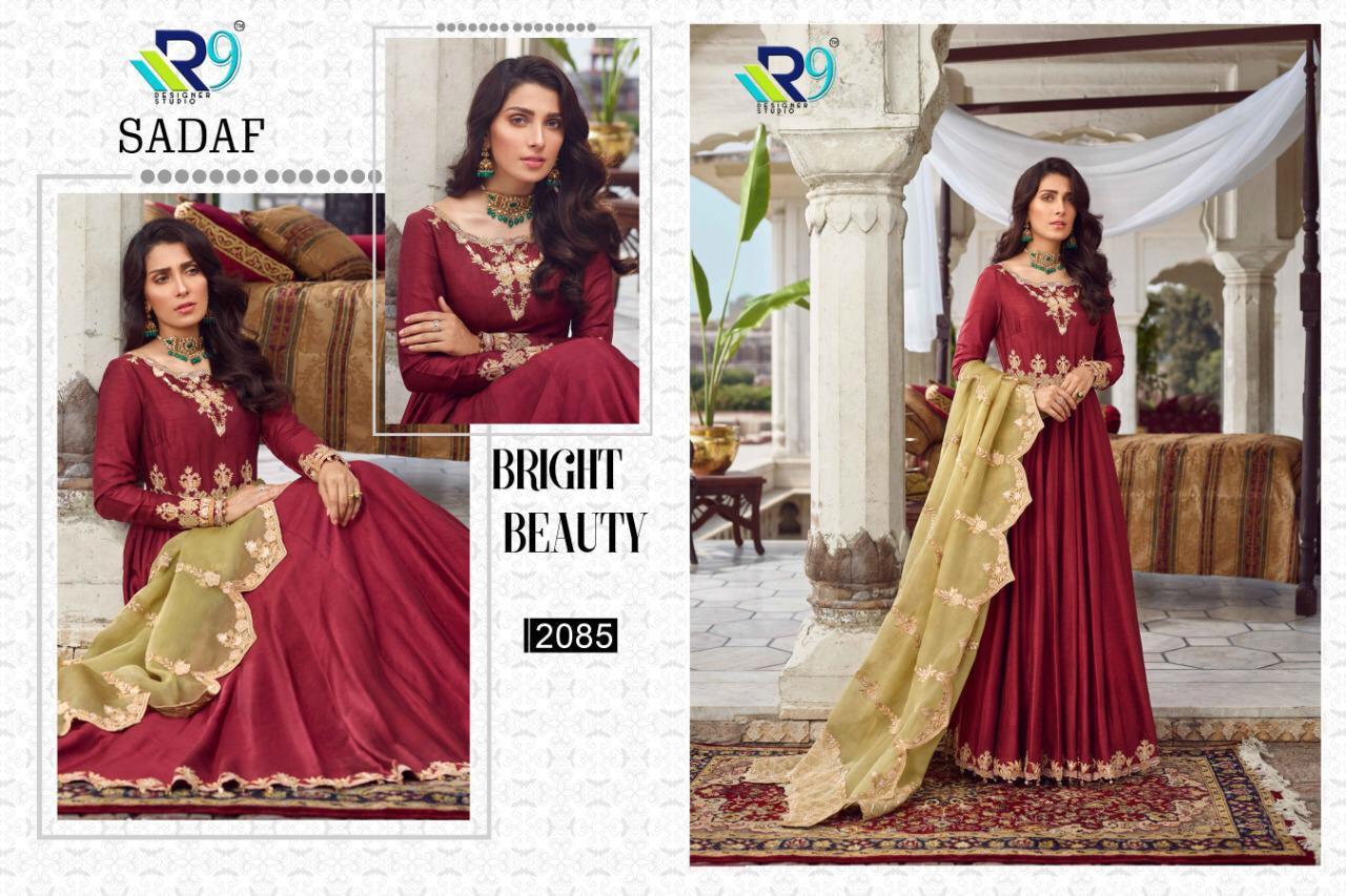 R9 Present Sadaf Georgette Silk Long Gown Style Party Wear Salwar Suit Supplier