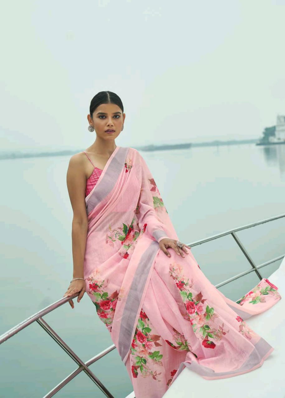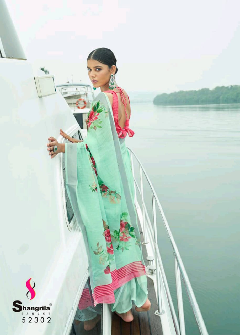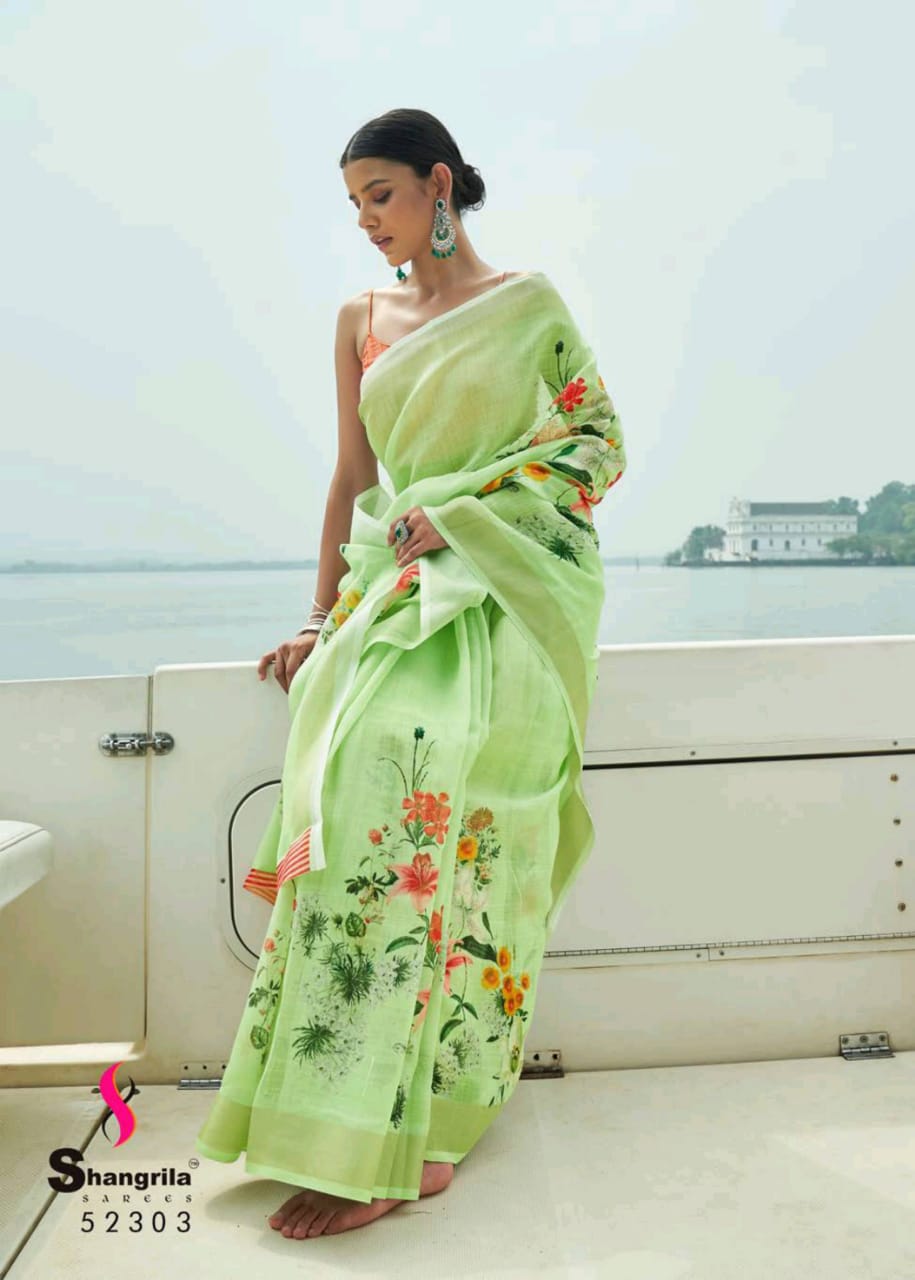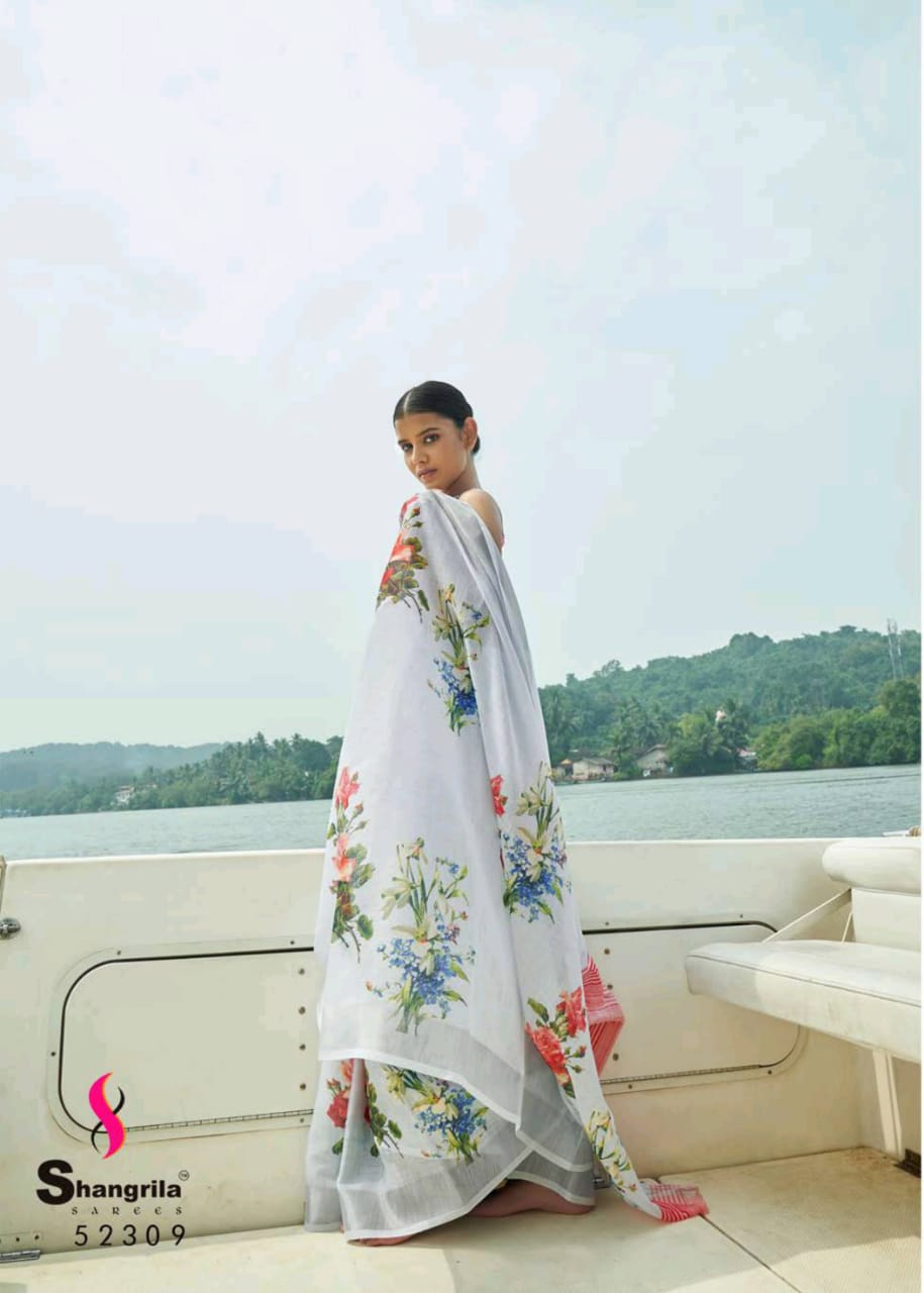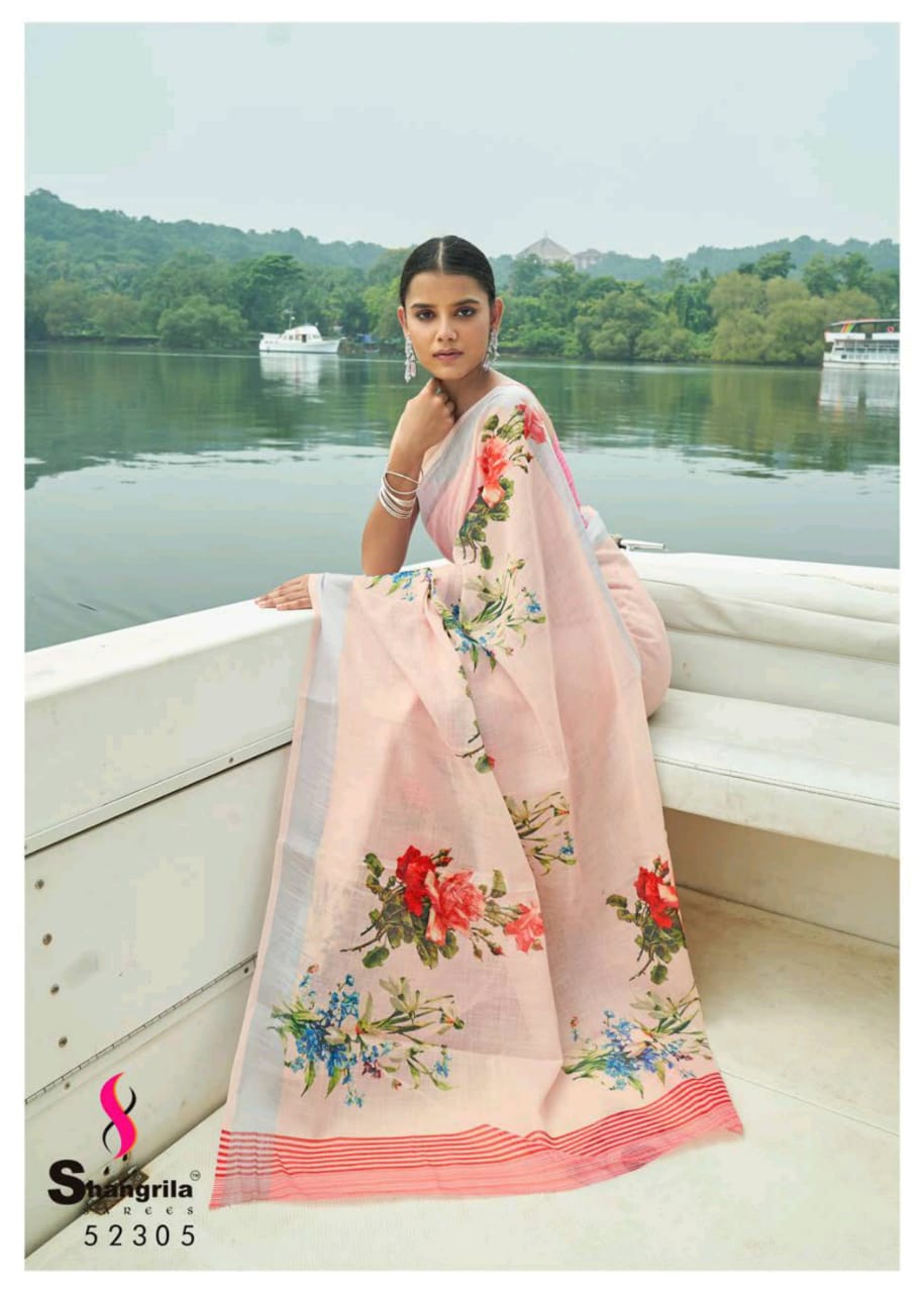 Raaga Vol 3 By Shangrila Soft Linen Digital Floral Print Designer Saree At Best Price