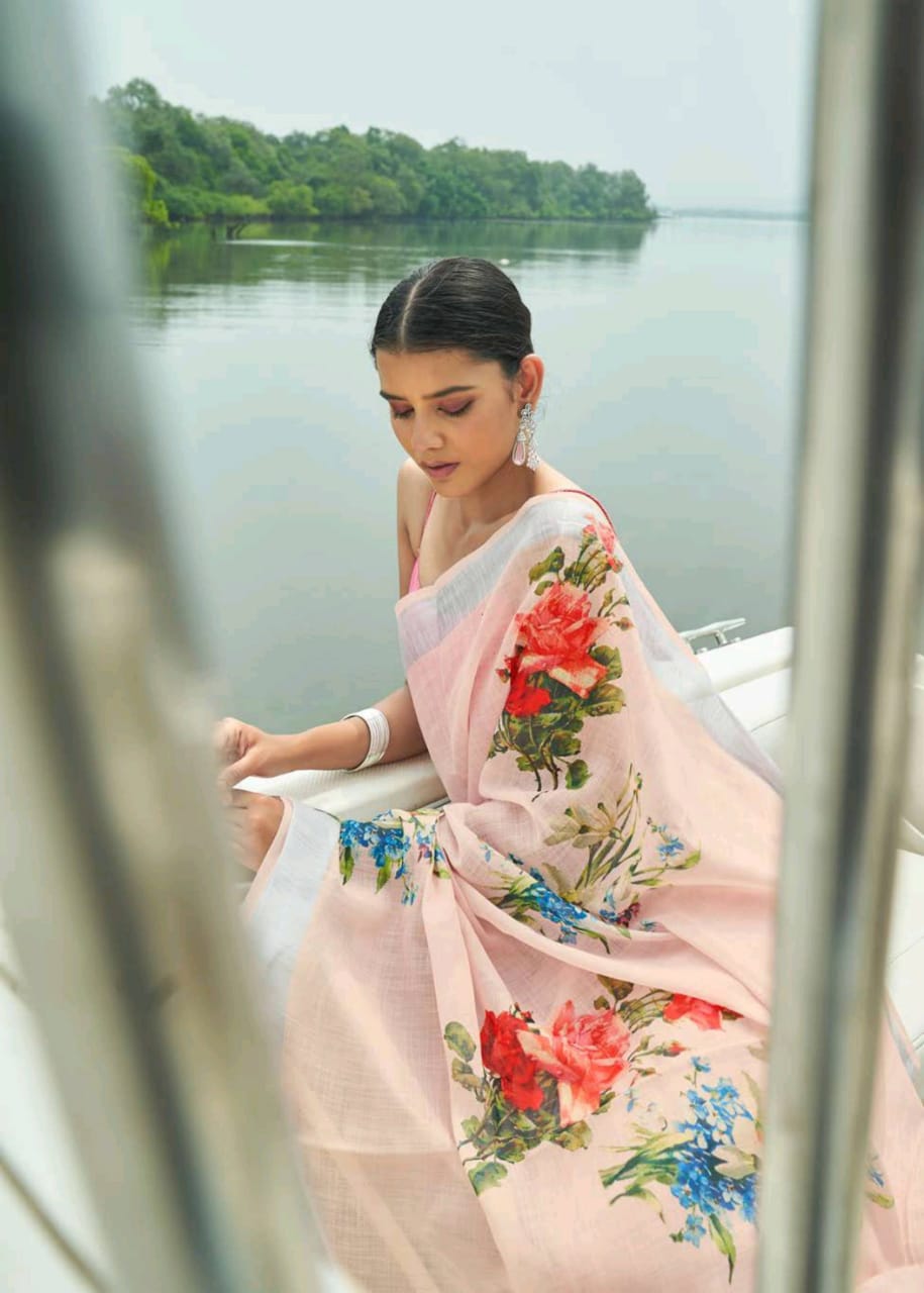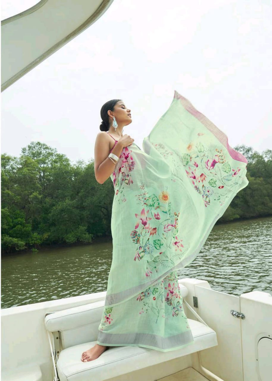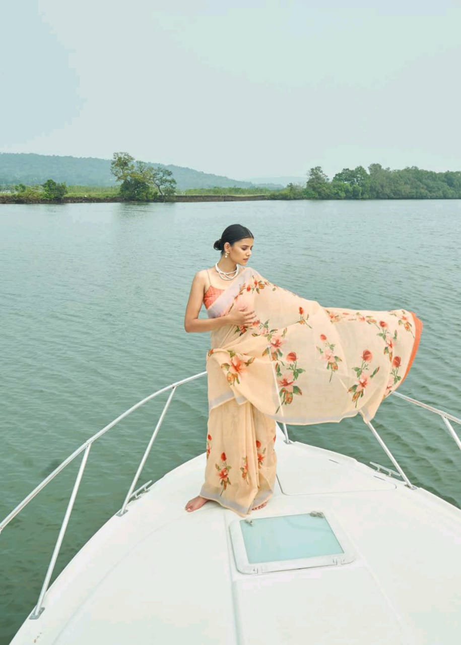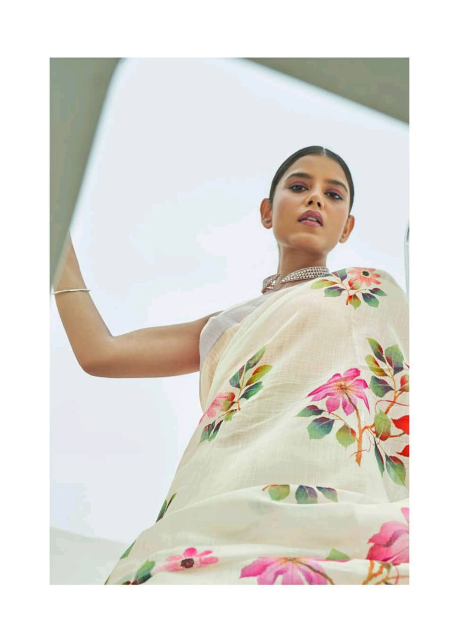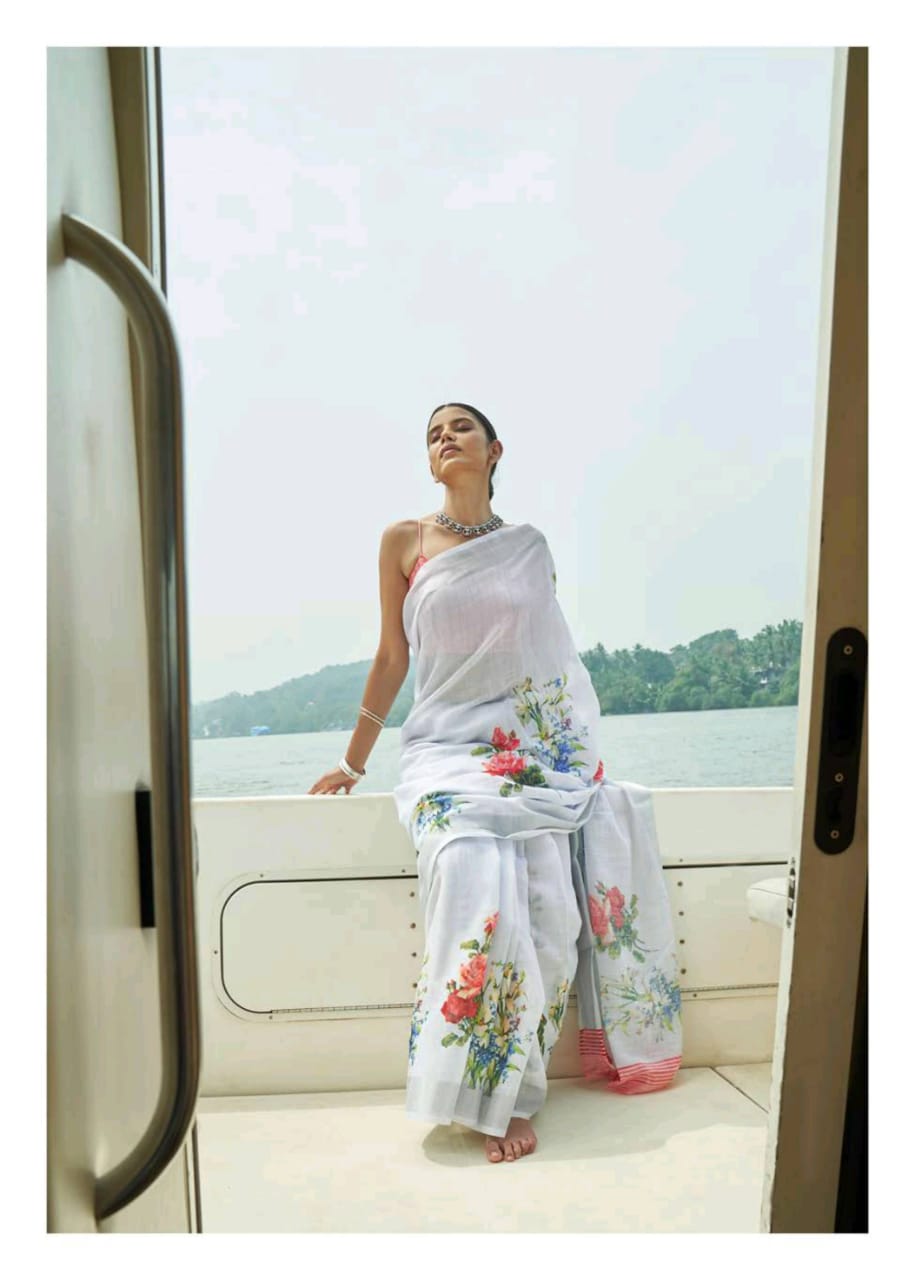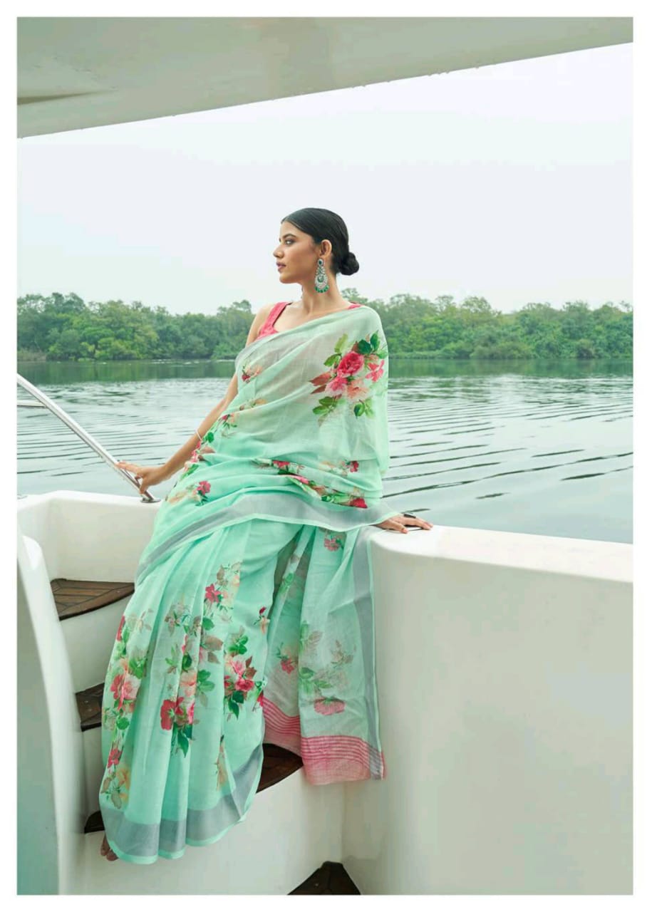 Raaga Vol 3 By Shangrila Soft Linen Digital Floral Print Designer Saree At Best Price