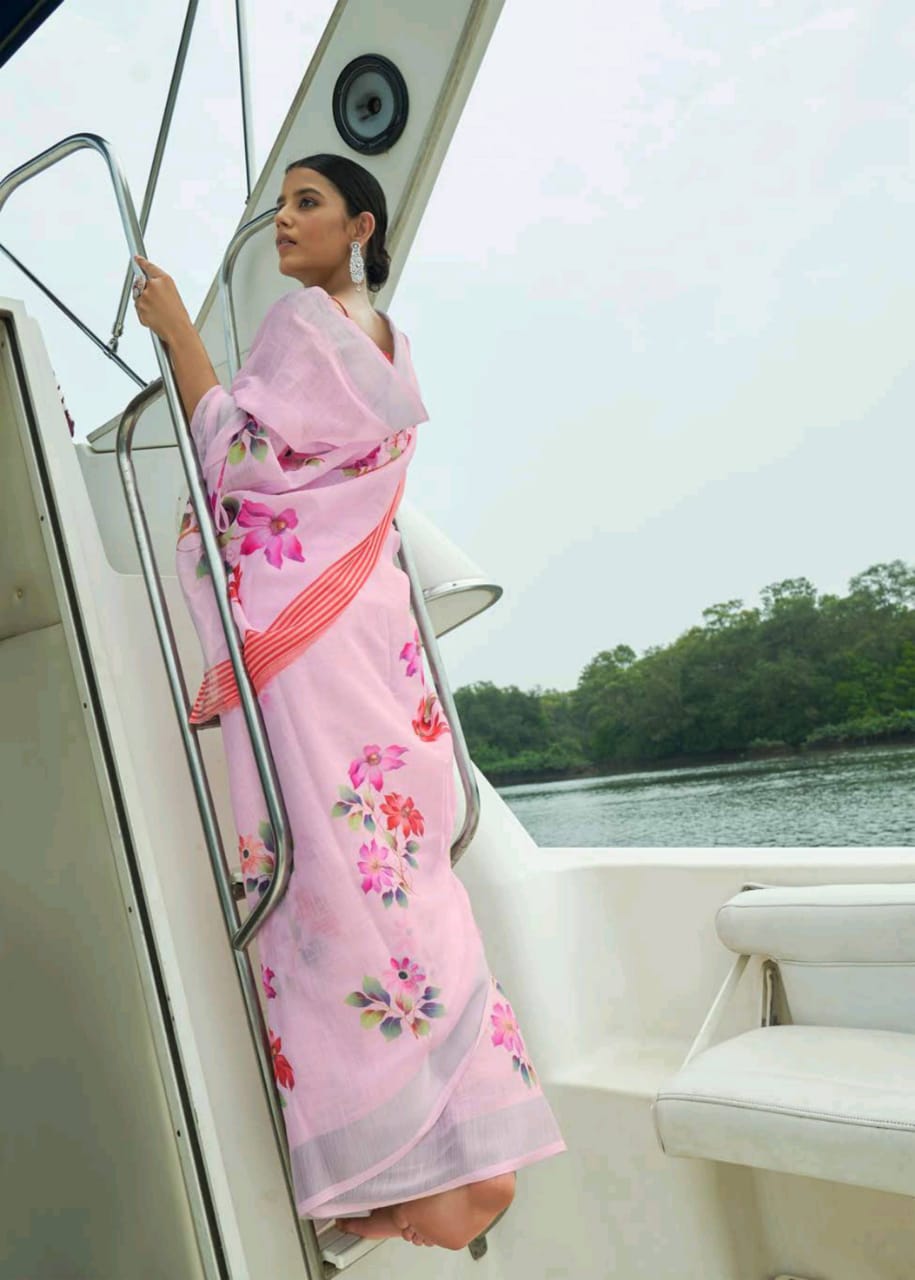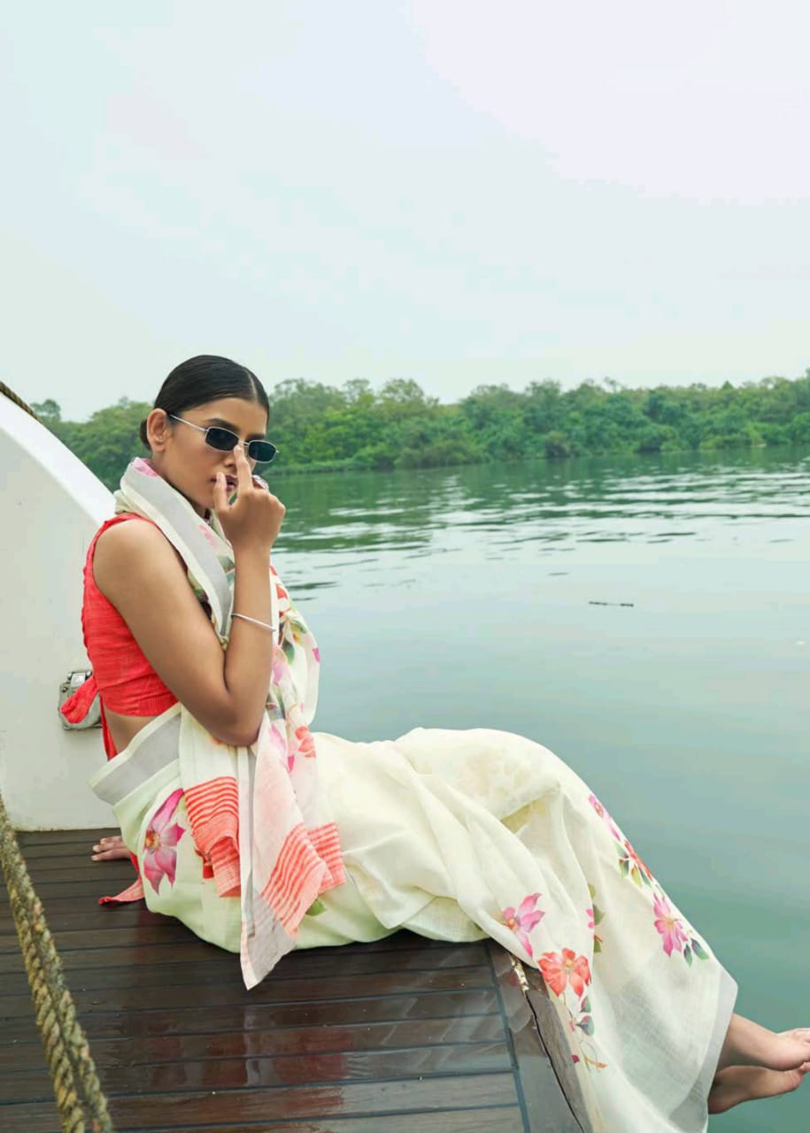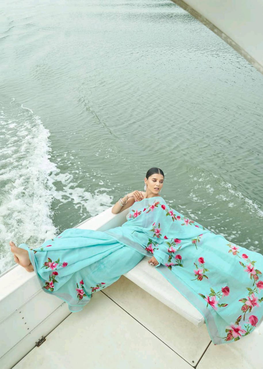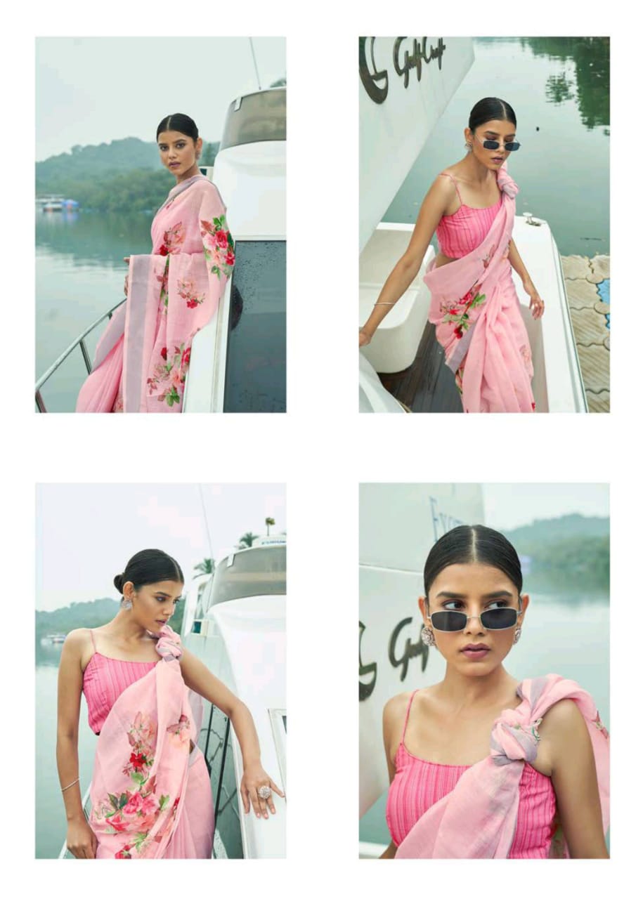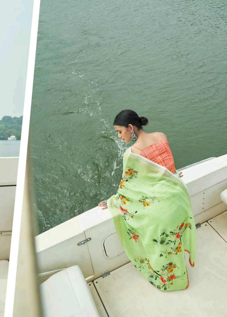 Raaga Vol 3 By Shangrila Soft Linen Digital Floral Print Designer Saree At Best Price