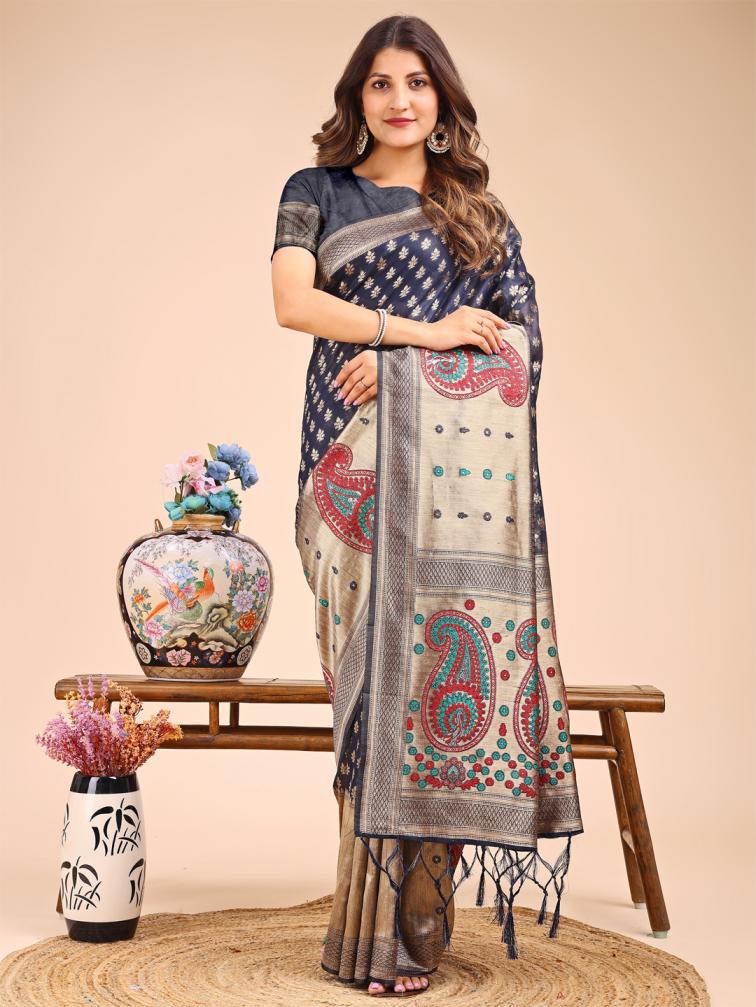 RAAGVI by astita fancy designer linen Cotton fabric saree wholesale with latkan