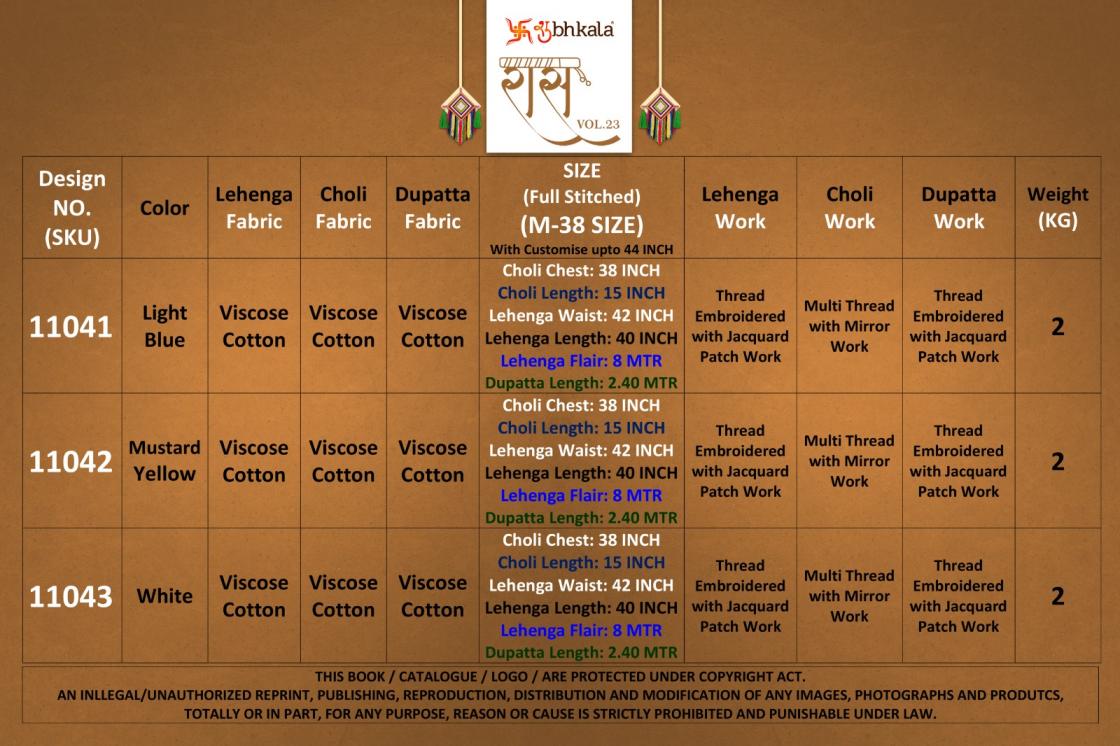 💃 SHUBHKALA - NAVRATRI 2025 🕺 🤷🏻♂️ New Arrival Designer Chaniya Choli Collection 2025 🤷🏻♂️ 💰 RAAS VOL. 23 • RATE LIST 💰 11041: 3500/- Lehenga Length (Stitched): 40 INCH Length • 42 Waist. & Length: 15 INCH Real Pic Available. ✅ |