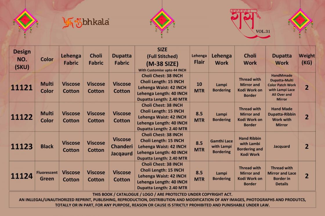 raas vol 31 by shubhkala amazing viscose cotton full stitch navratri lehenga choli dupatta
