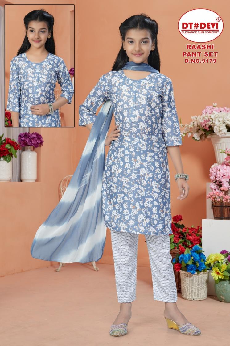 raashi pant set by dt devi 9179 fully stitch rayon kids 3pcs dress