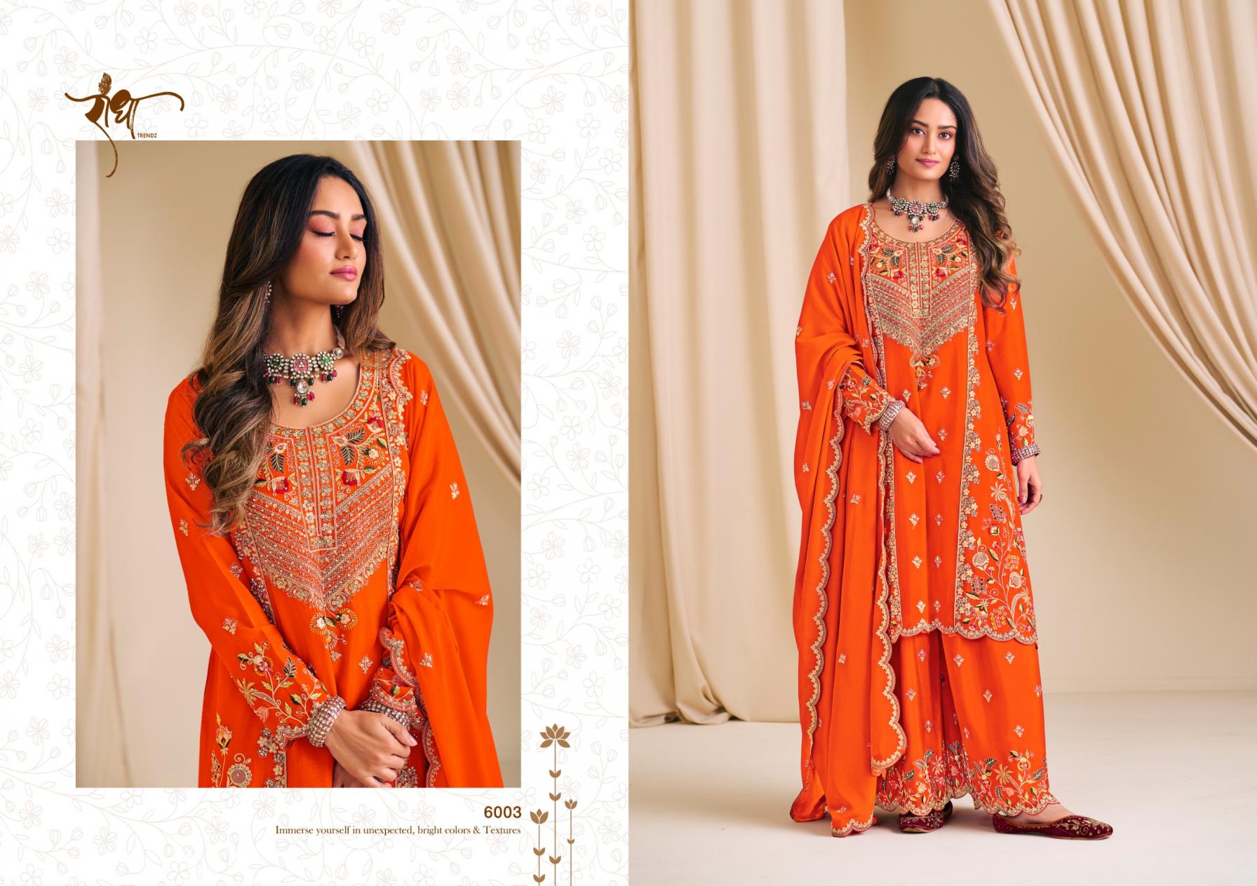BRAND: RADHA TRENDZ CATLOG TOP: HEAVY PREMIUM CHINON WITH HEAVY EMBROIDARY WORK & DIAMOND WORK(FREE SIZE STITCHED ) BOTTOM : HEAVY PREMIUM CHINON WITH FULL FLUR PLAZO WORK (FREE SIZE STITCHED) DUPATTA: HEAVY PREMIUM CHINON WITH HEAVY EMBROIDARY WORK RATE LIST : 2395/- NOTE: FREE SIZE STITCHED |