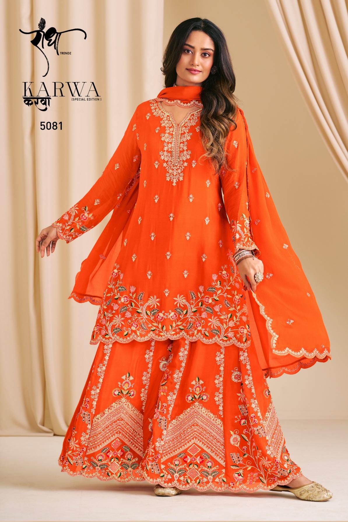 radha trendz karwa silk chinon readymade party wear plazzo suits