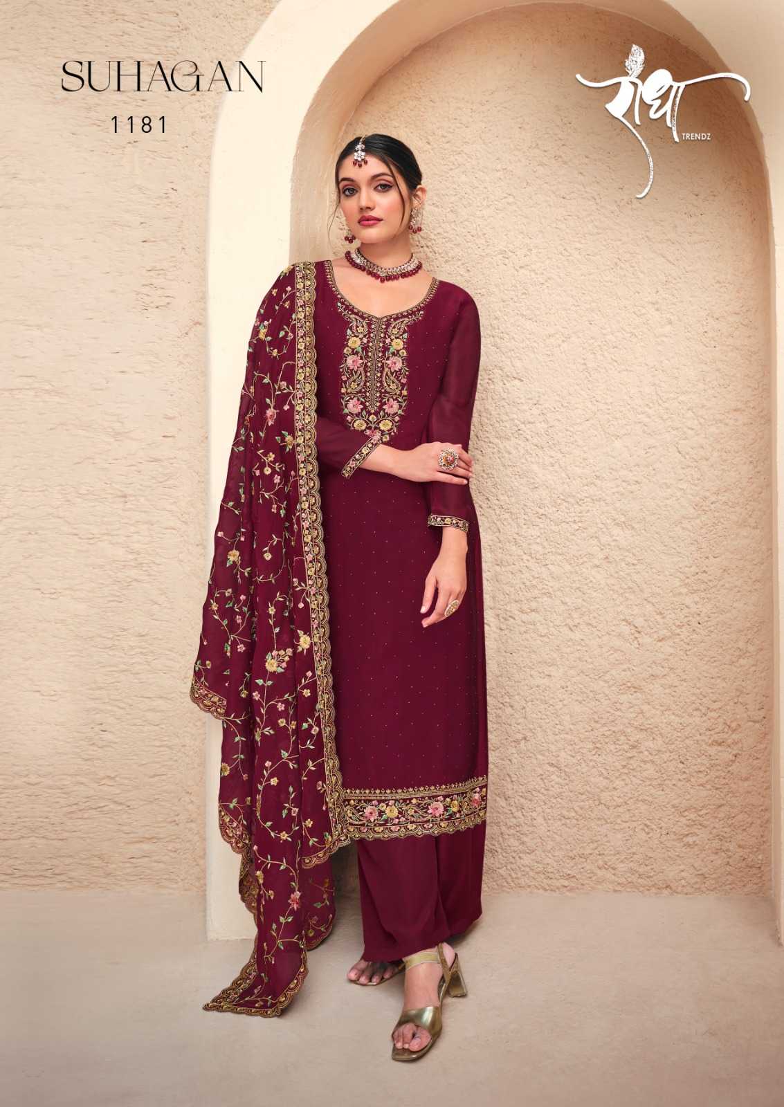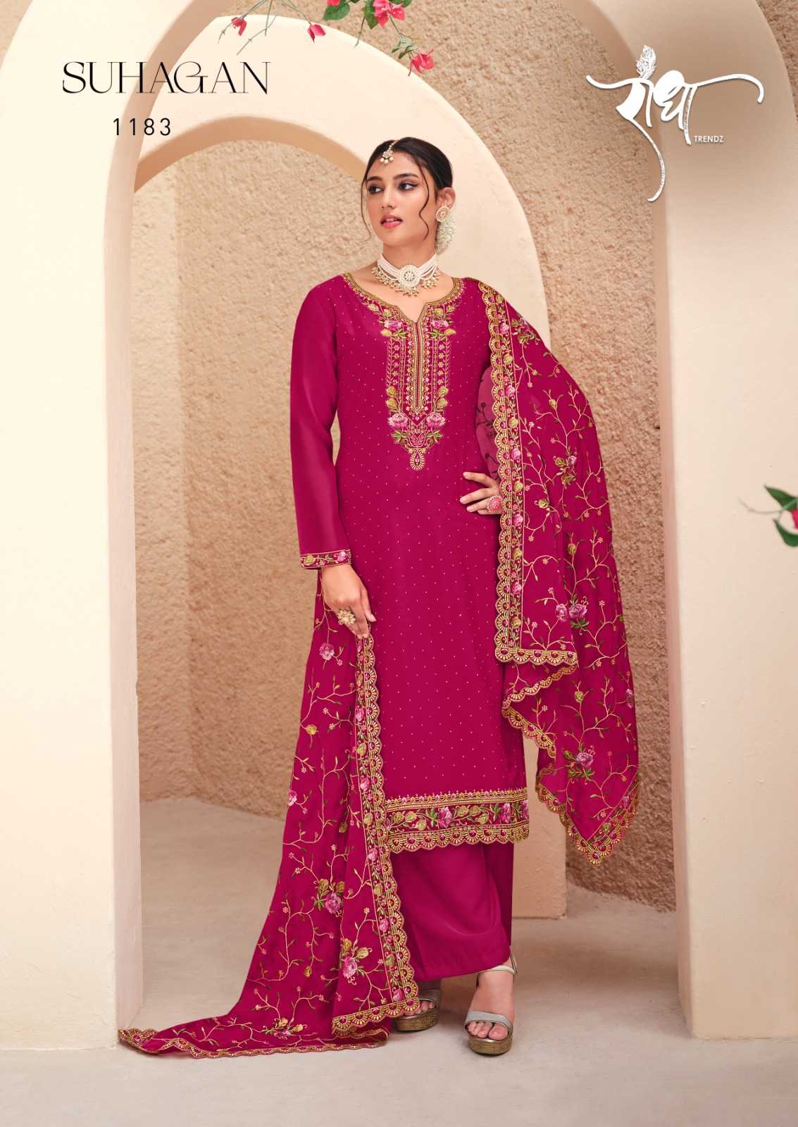 radha trendz suhagan designer georgette embroidery unstitch ladies suit