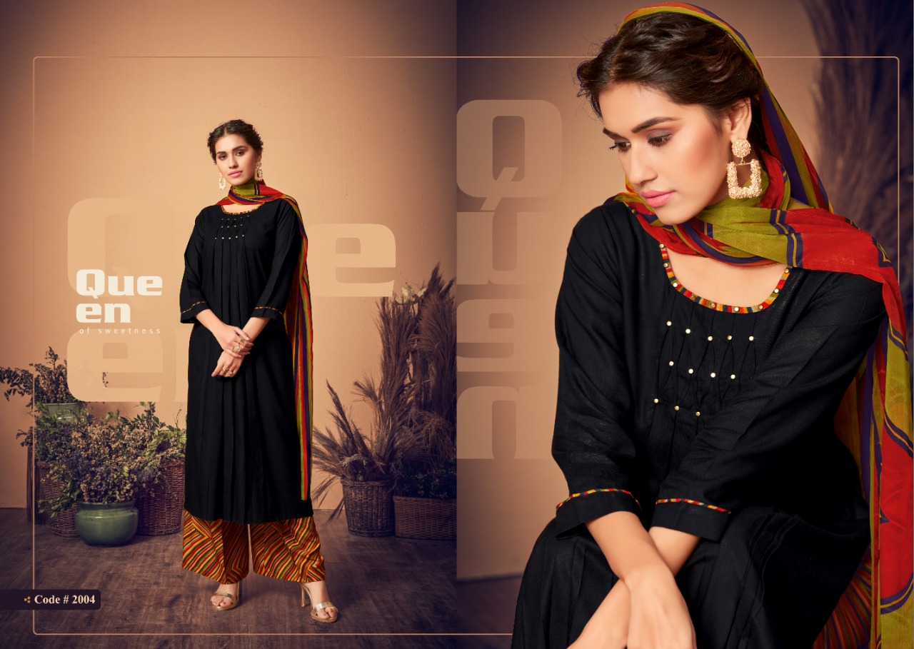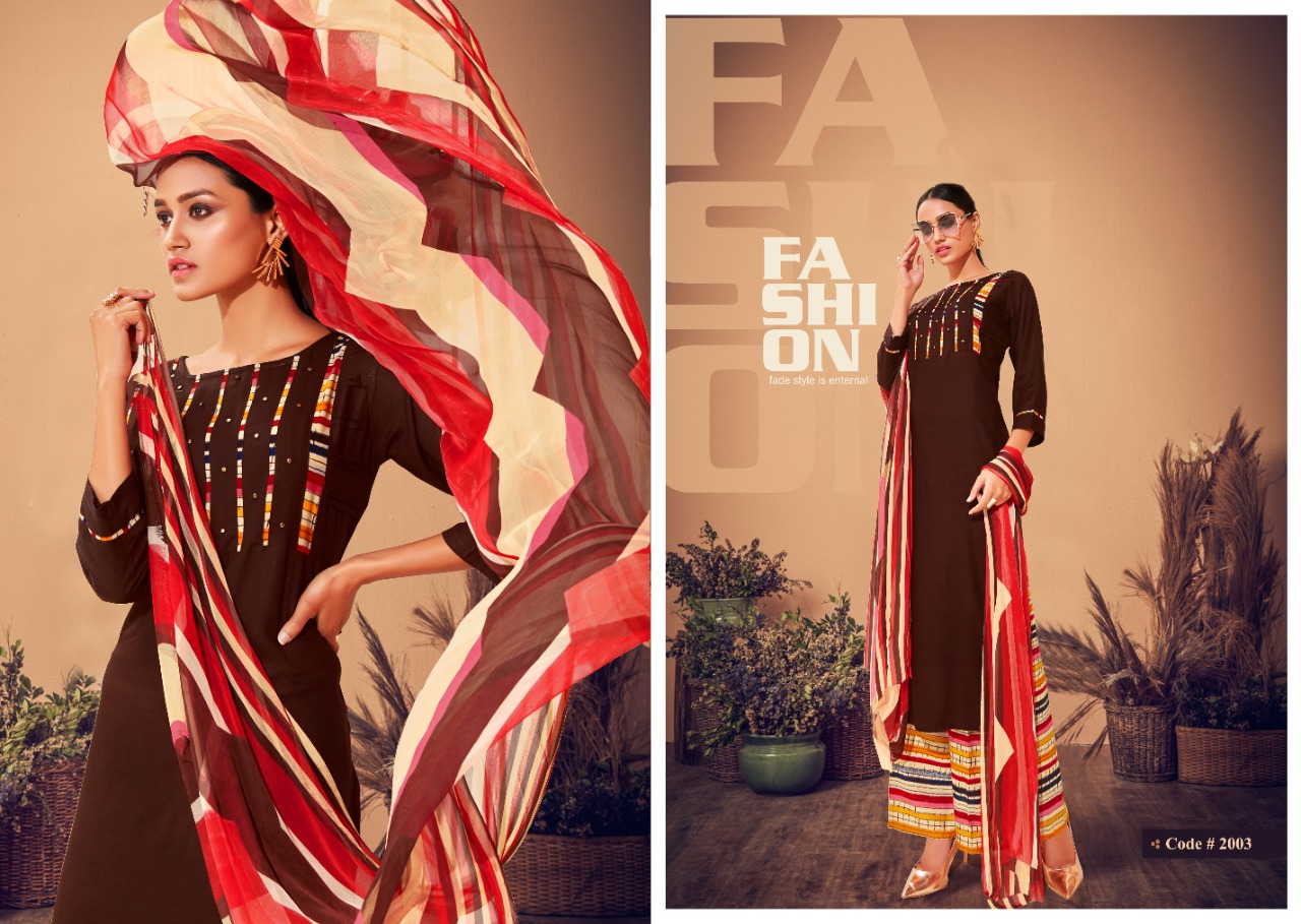Dear Customers, With your support we are trying to do something new everytime. So your believe remains on our brand Launches new catalogue full stichting suit dupta Ruhani Top:-heavy rayon cotton full stich with fancy hand work Bot:-heavy rayon cotton with palazo stich Dup:- pure naznin print 6 Design Catalogue size - L, Xl, XXL Rate -670/- Happy selling... |