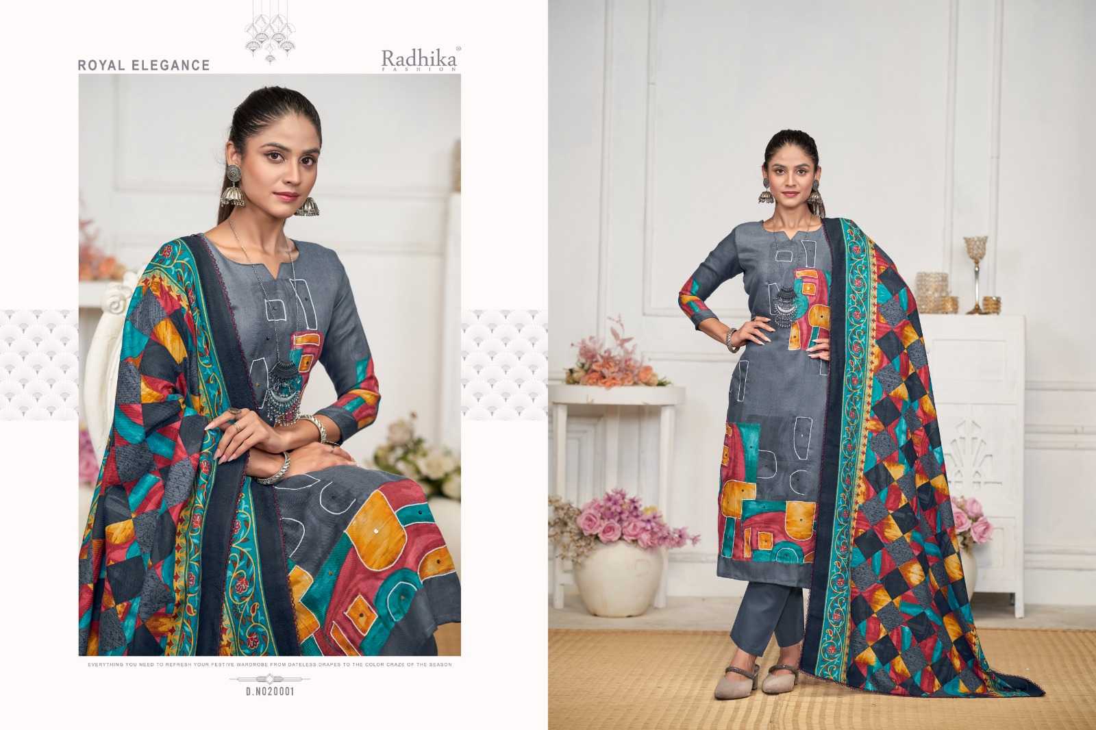 radhika fashion sumyra rehnuma pashmina stylish print ladies suits