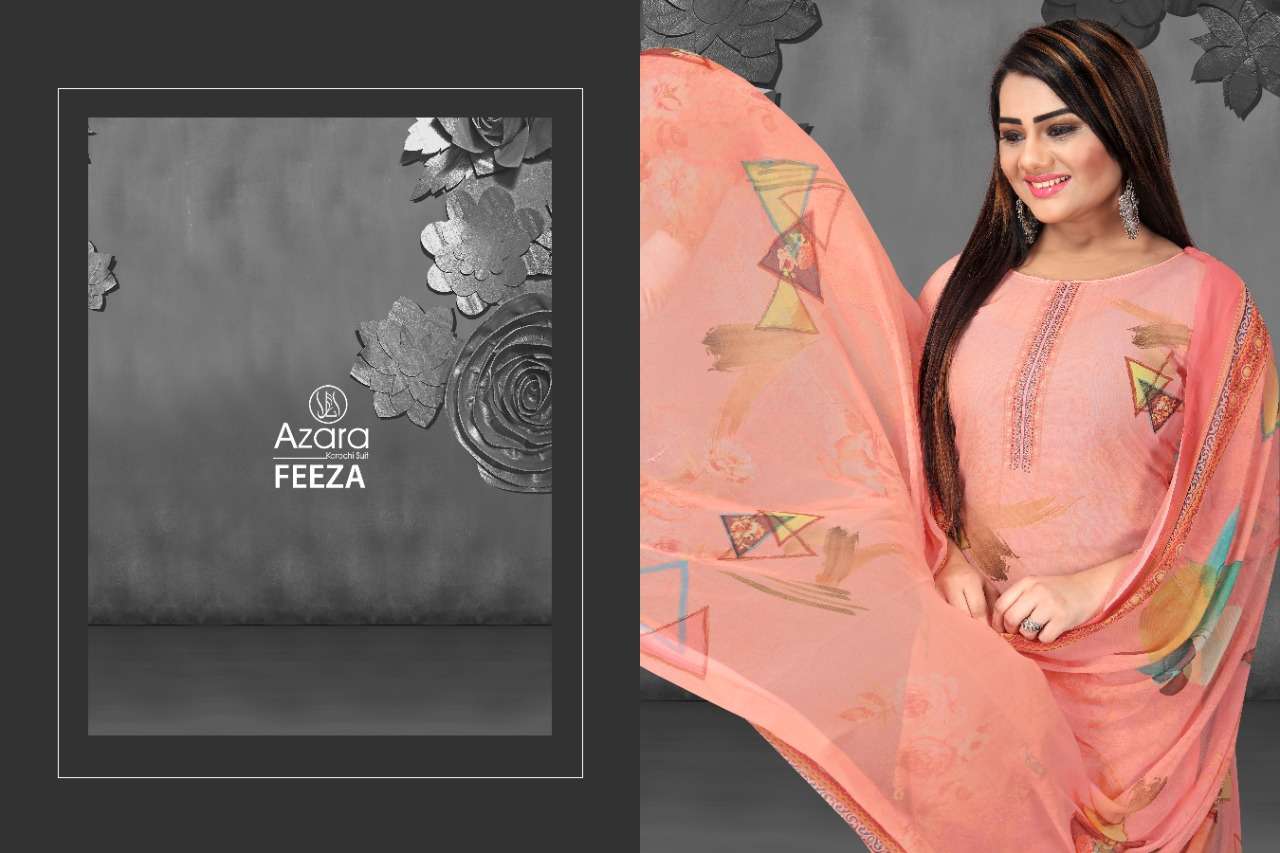 ............Azara...........           presents         âFEEZAâ             Top: pure crape digital print with             m.diamond work         Dupatta:  georgette digital print             box pallu Bottom: crape print Pcs: 4         Rate -595/-  +GST    Your trust is our capital      Radhika fashion |