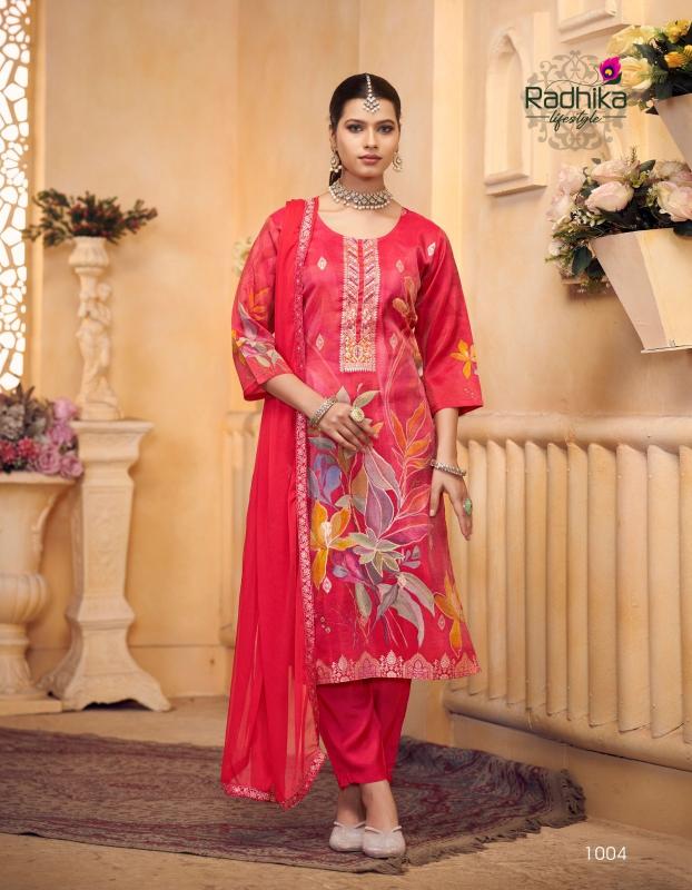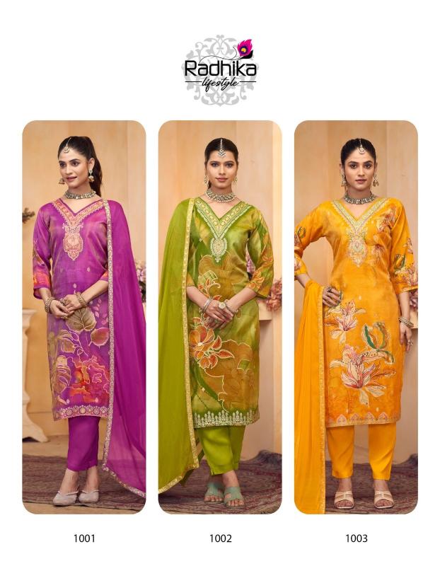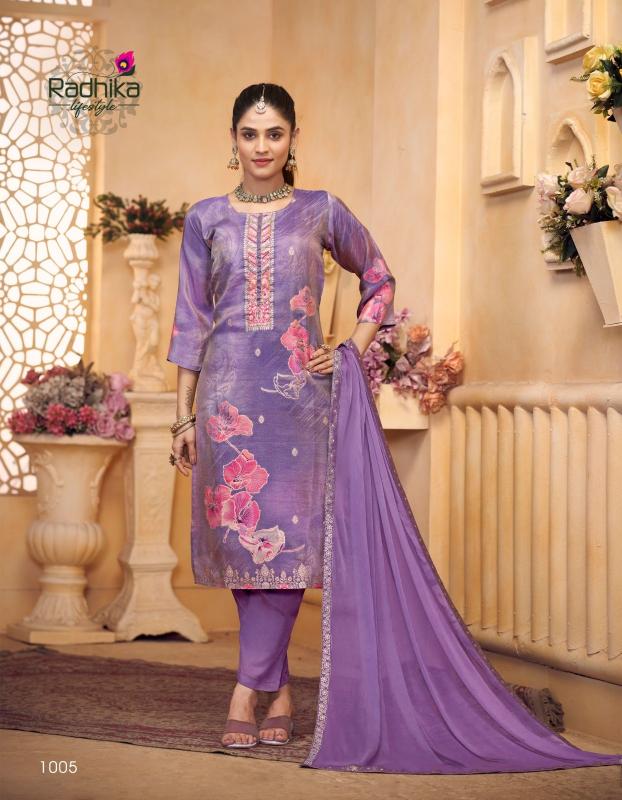 radhika life style aanchal vol 1 tissue shimmer silk readymade classic 3pcs dress