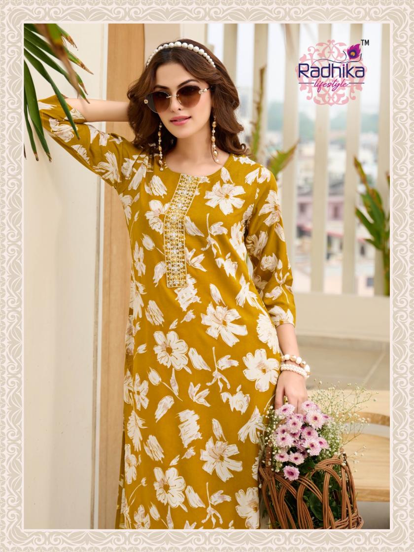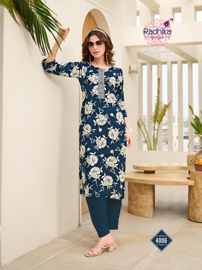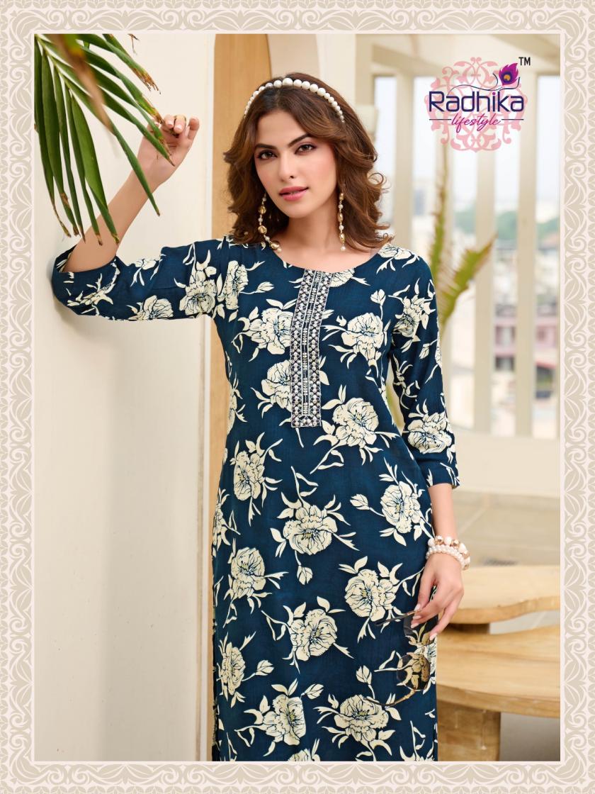 radhika lifestyle alisha vol 4 rayon print fully stitch casual big size long kurtis