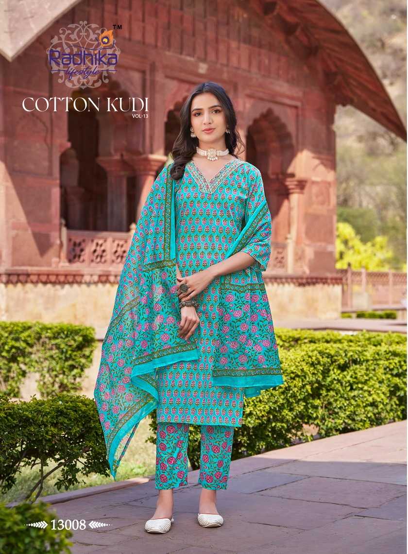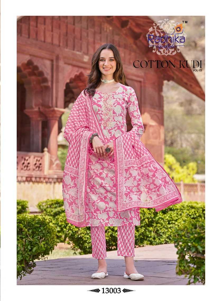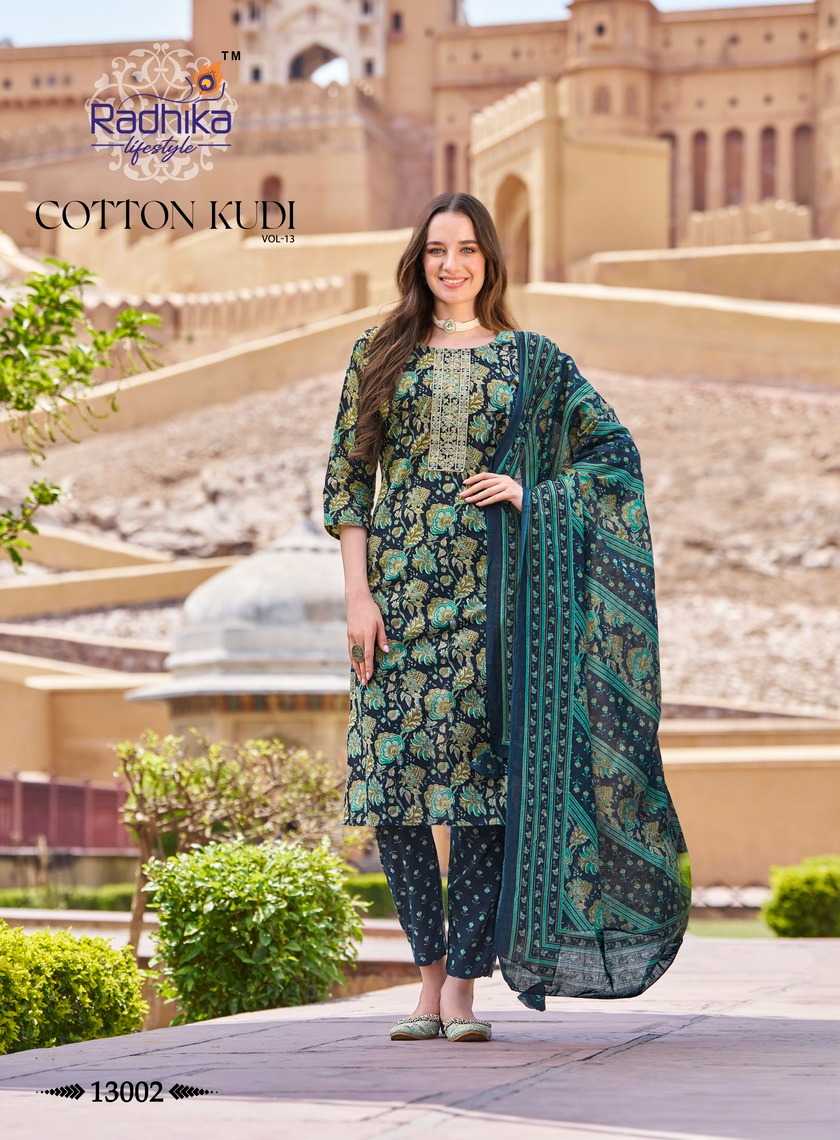 radhika lifestyle cotton kudi vol 13 readymade embellished design big size salwar suit