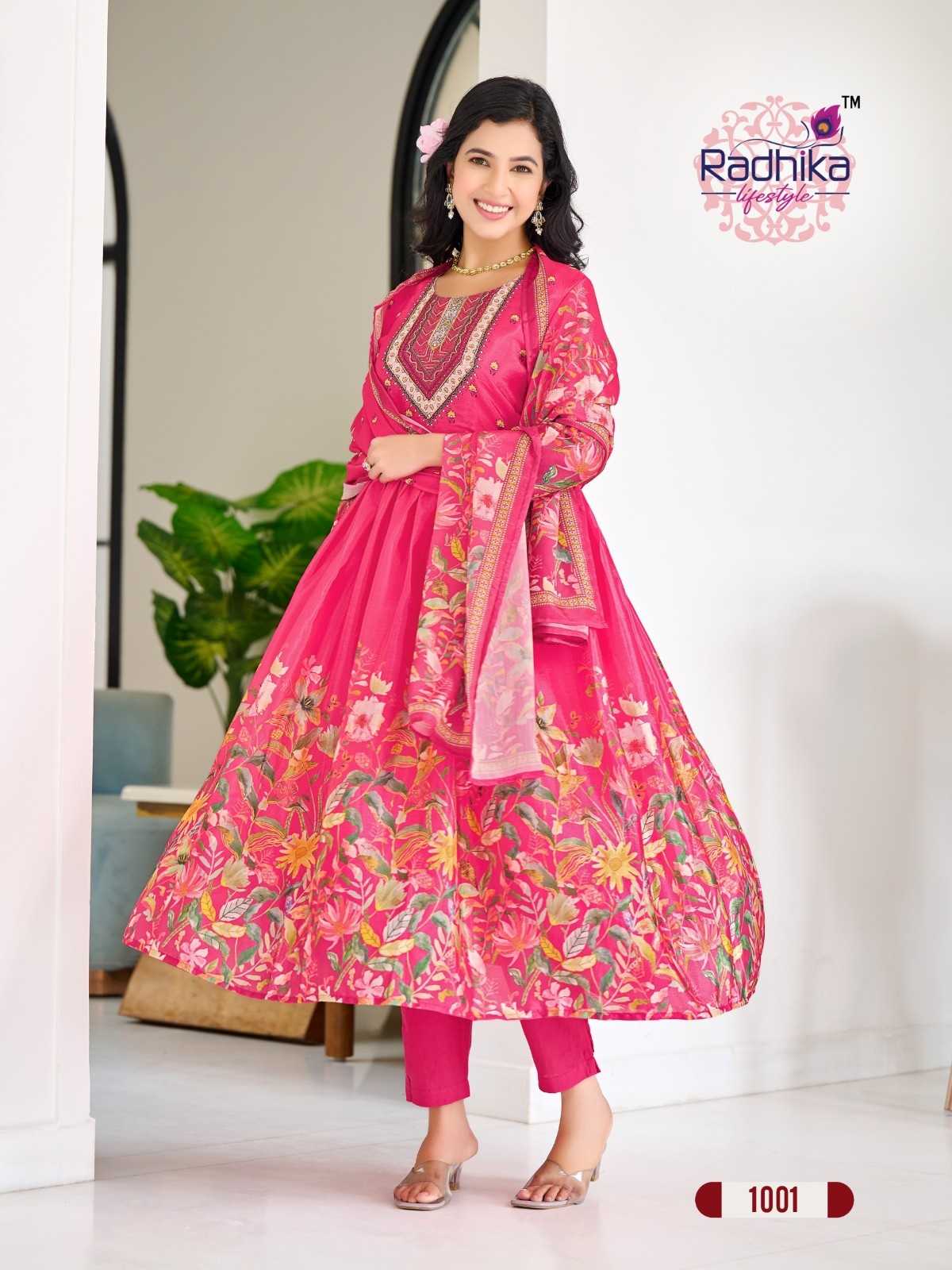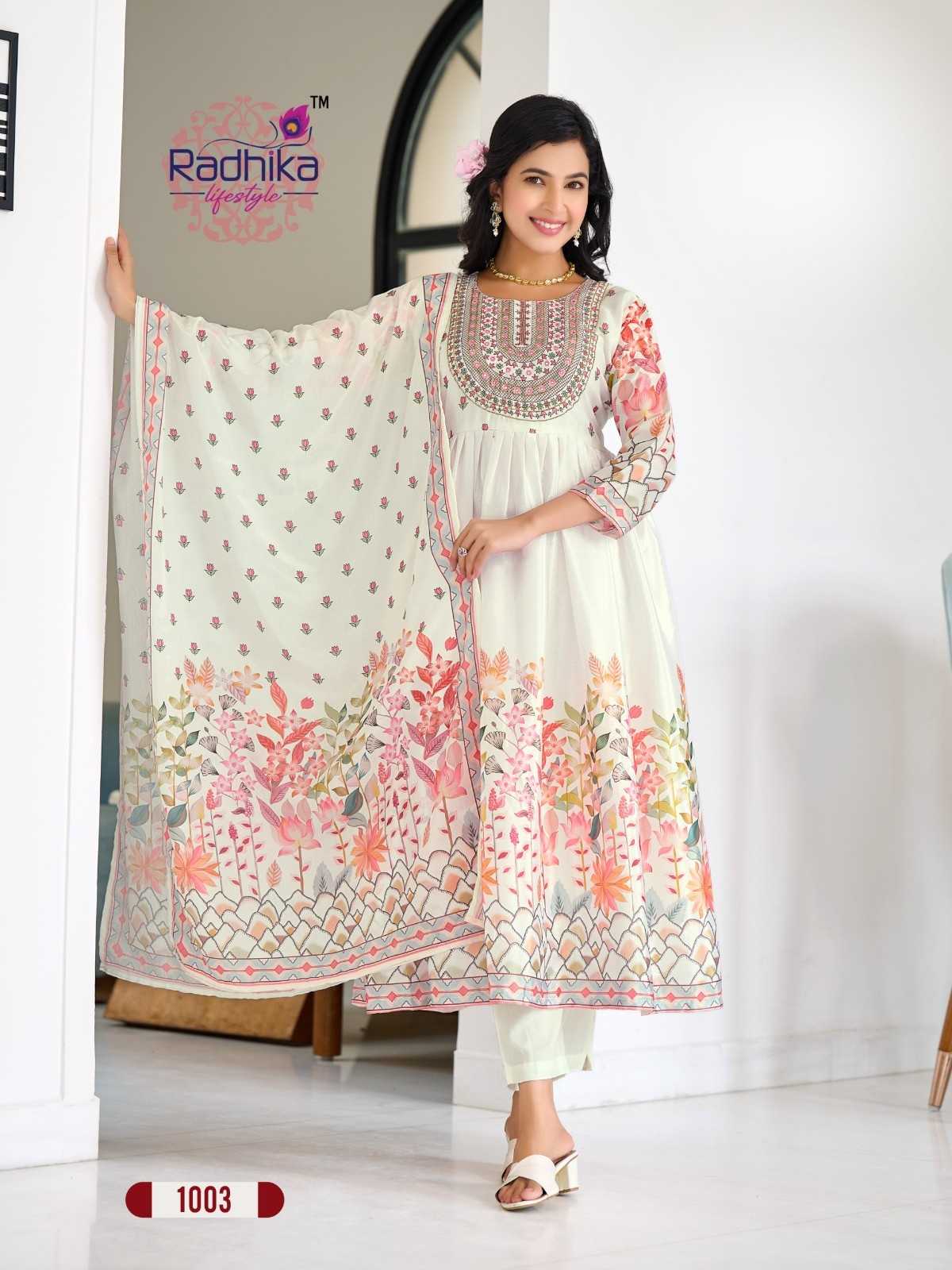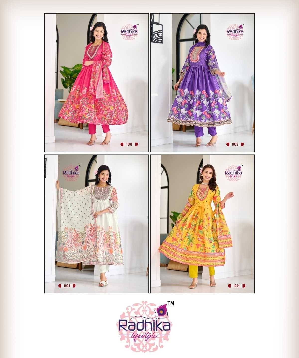 radhika lifestyle guzarish vol 1 chinon 1001-1004 full stitch stylish 3pcs dress
