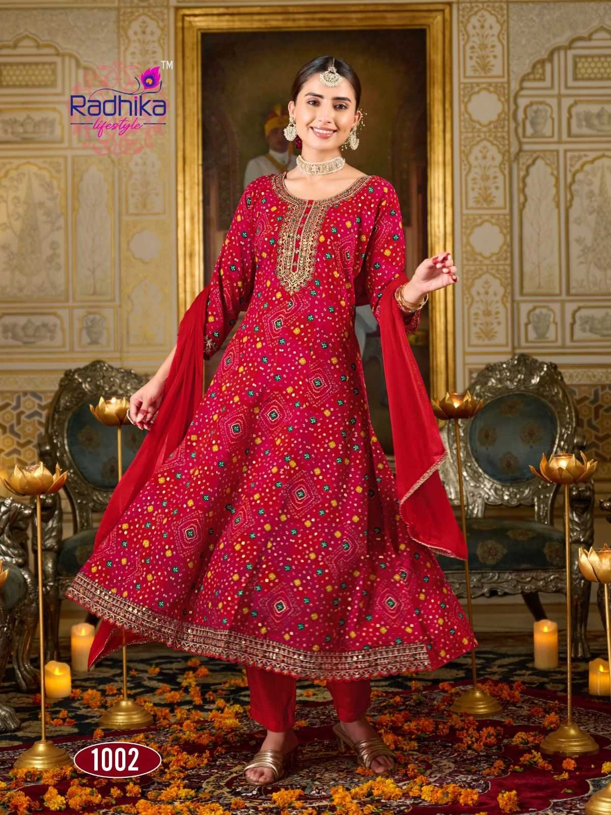 radhika lifestyle prasang vol 1 rayon foil print plus size readymade anarkali gown