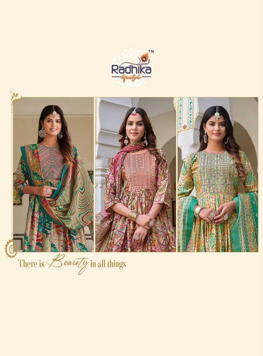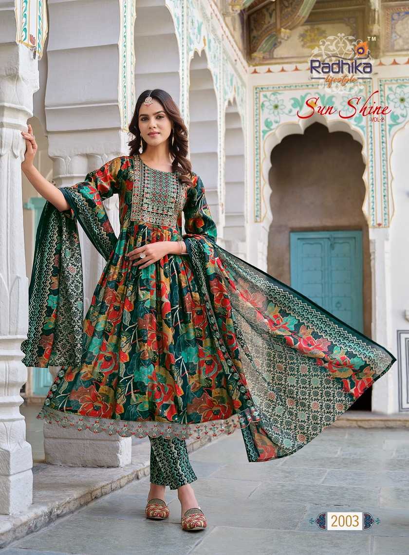 radhika lifestyle present sun shine vol 2 readymade nayra cut 3pcs traditonal collection