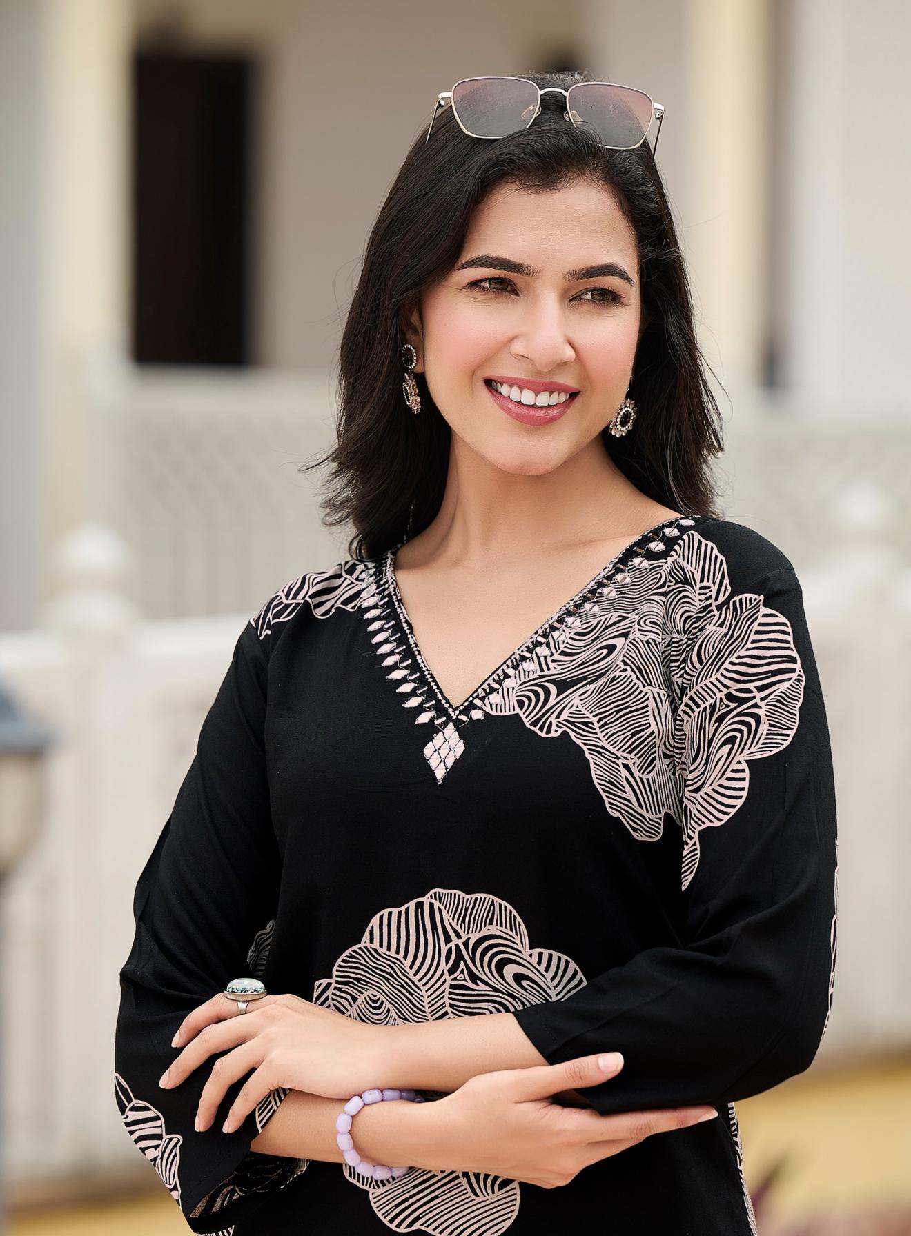 radhika lifestyle zion vol 2 rayon readymade plus size long kurti with plazzo