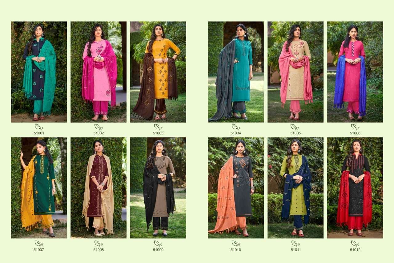HELLO MADAM, Vol-3 - A designer work bottom, top and  dupatta range. Top: Soft Cotton Slub With fancy embroidery work, Cut-2.40  mts. Dupatta: Fancy Tulip Silk Dupatta with embroidery work, Cut-2.40 mts. Bottom: Heavy Cotton with designer work, Cut-2.00 mts. Total cut- 6.80 mts approx RATE :- 725/-PER PCS Regards, Raghav Royals |