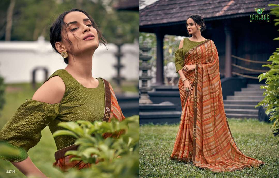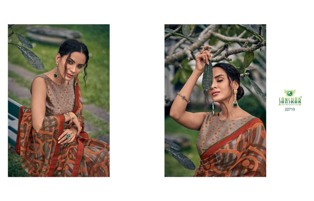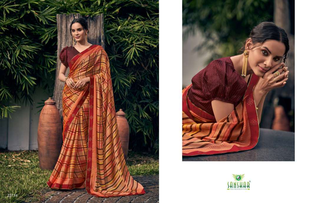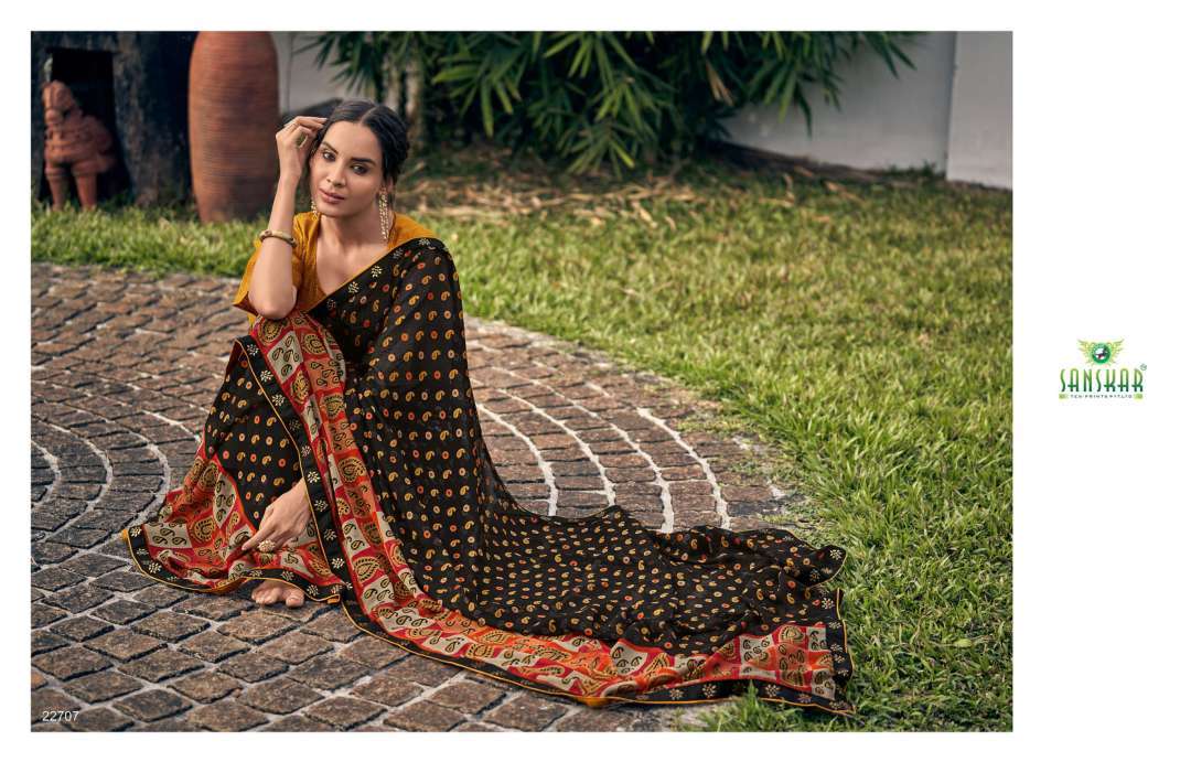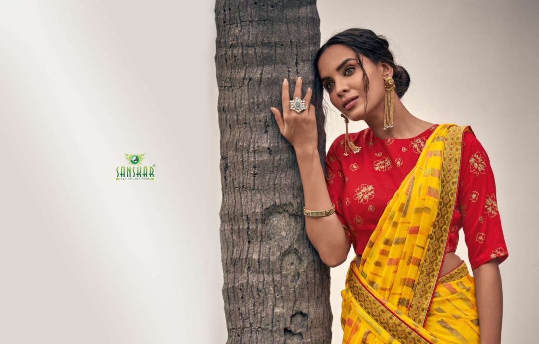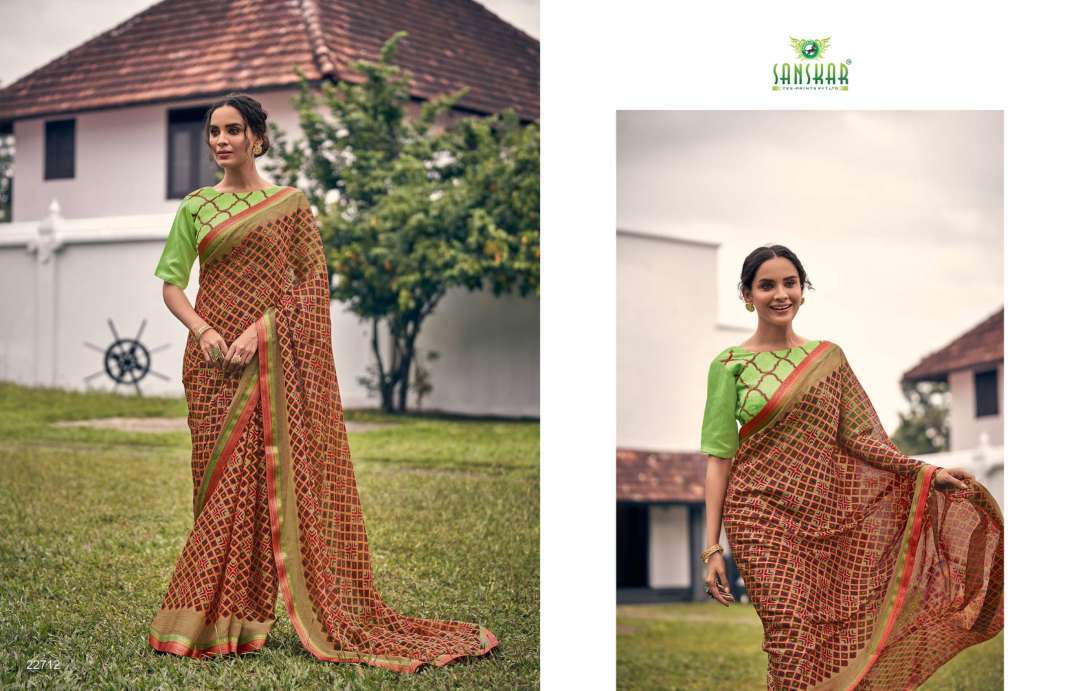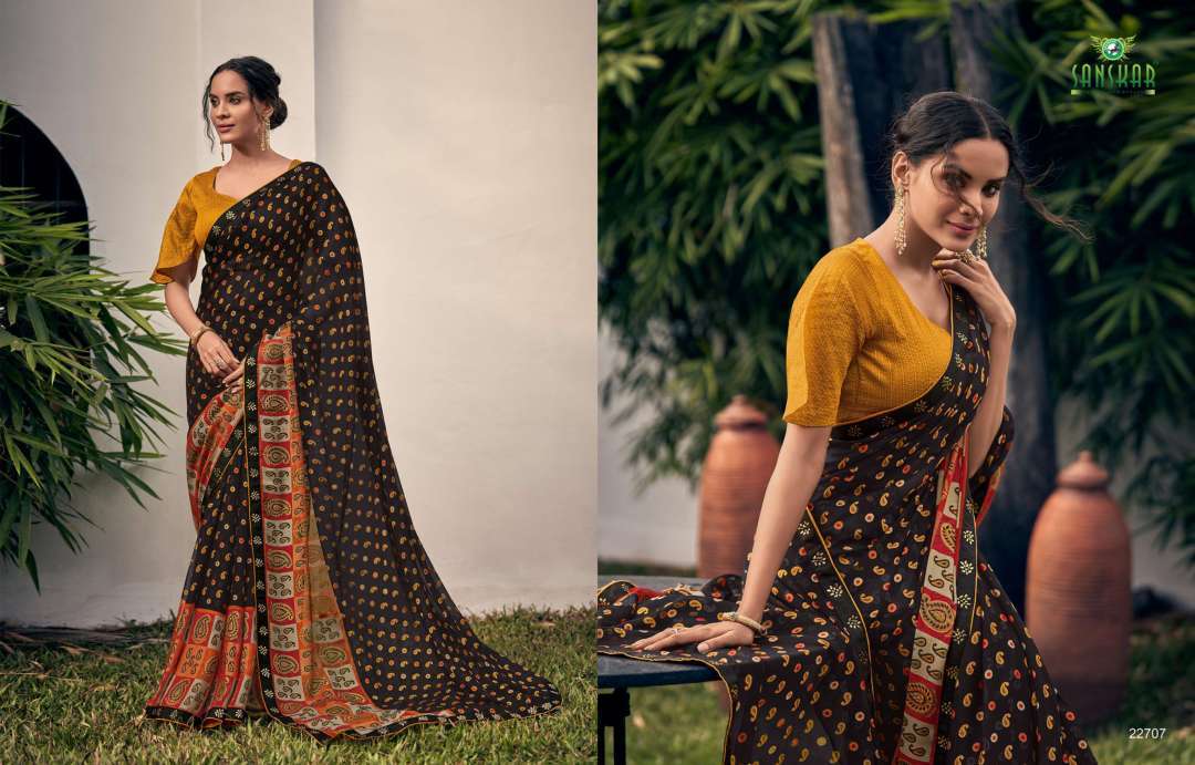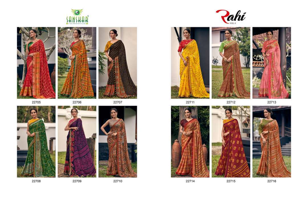 rahi vol 9 by sanskar tex print chiffon brasso printed saree with designer blouse concept
