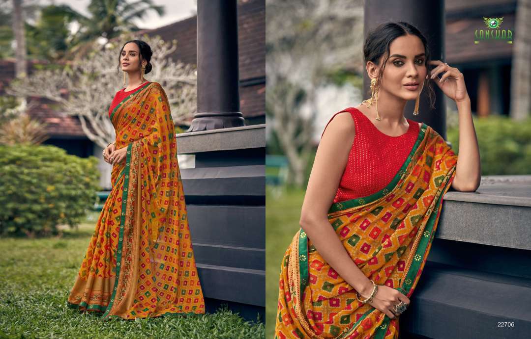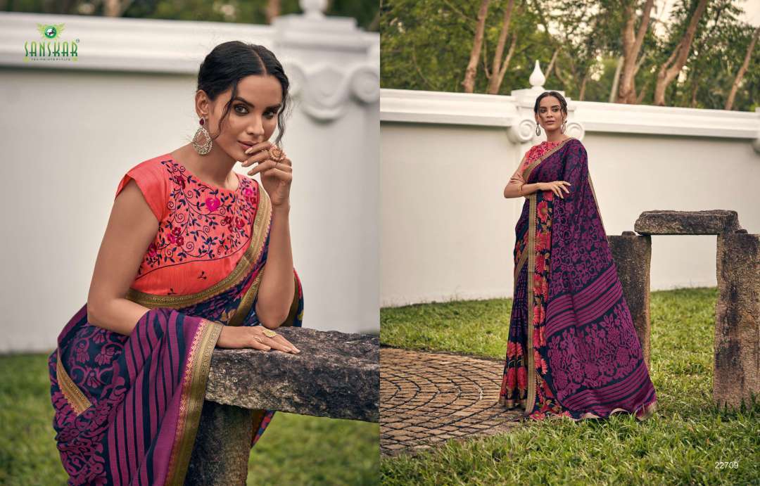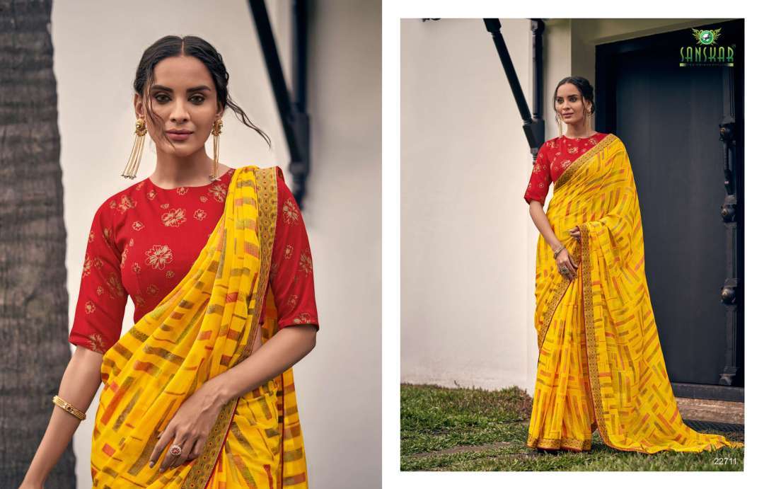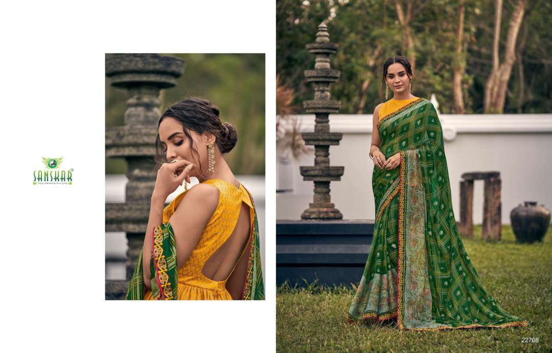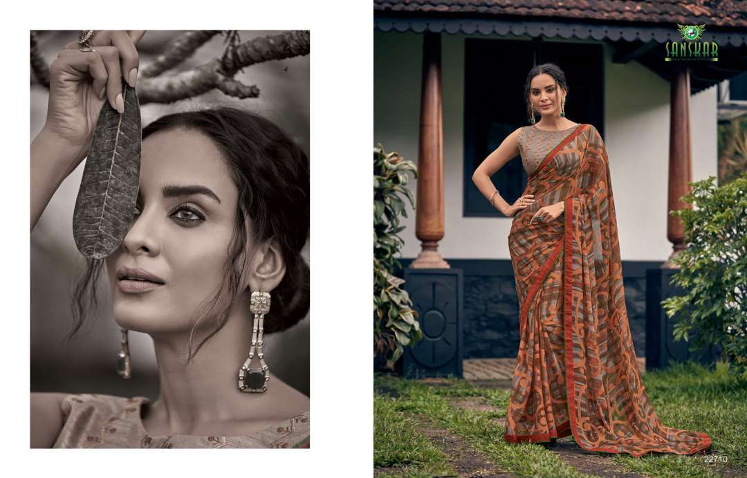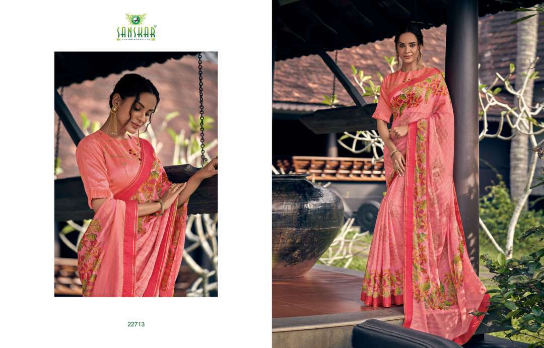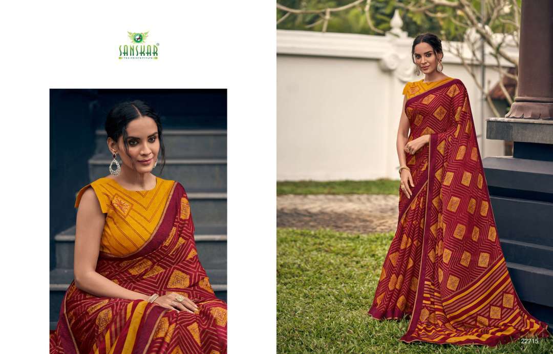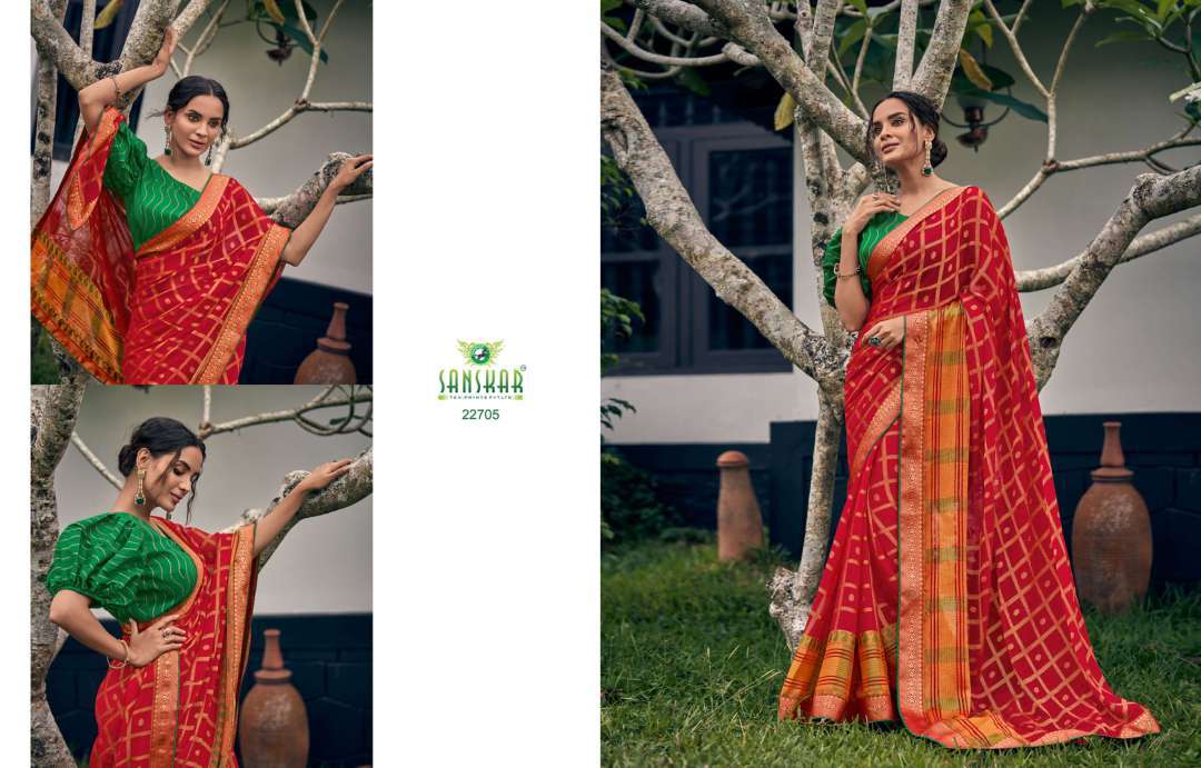 rahi vol 9 by sanskar tex print chiffon brasso printed saree with designer blouse concept