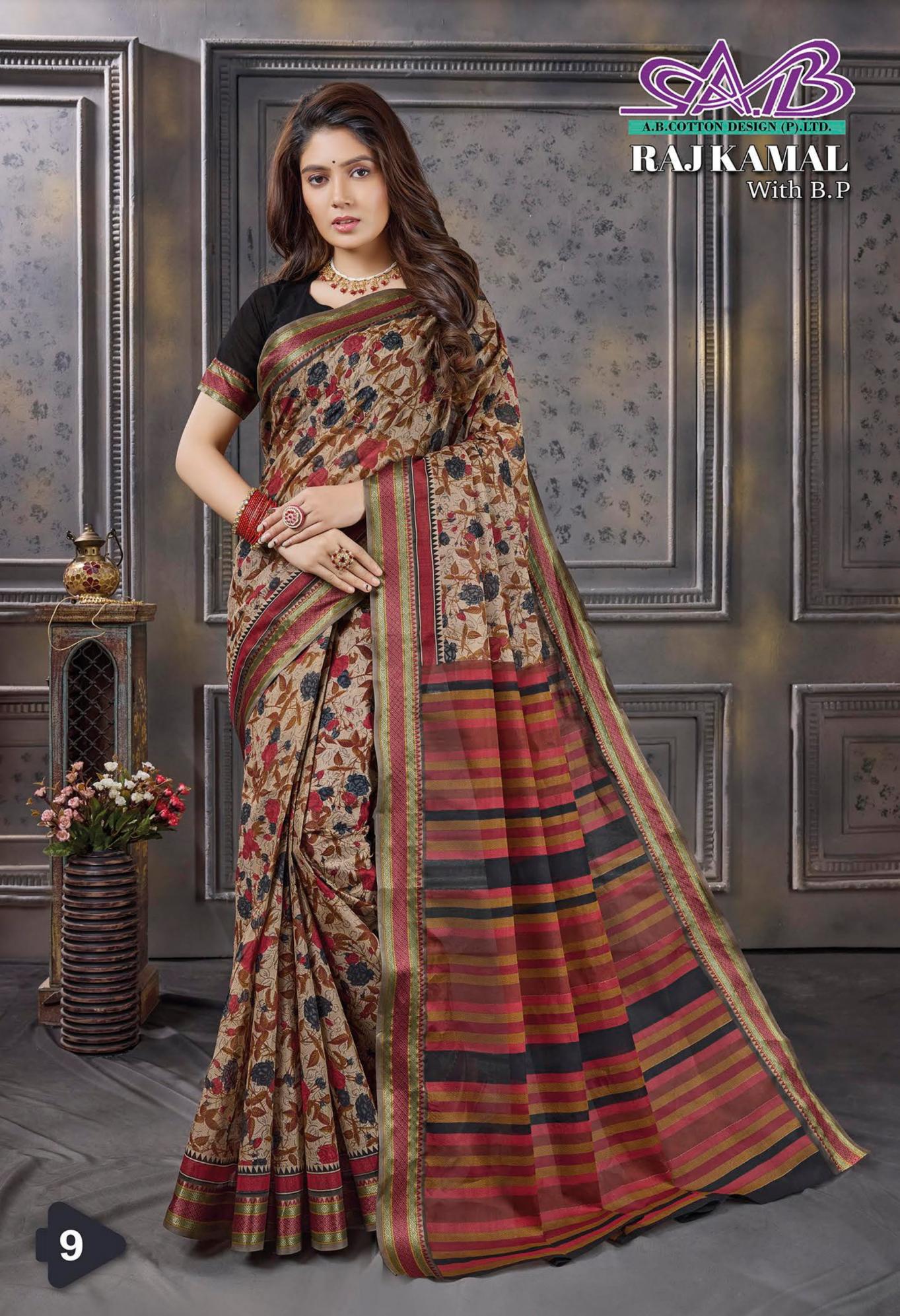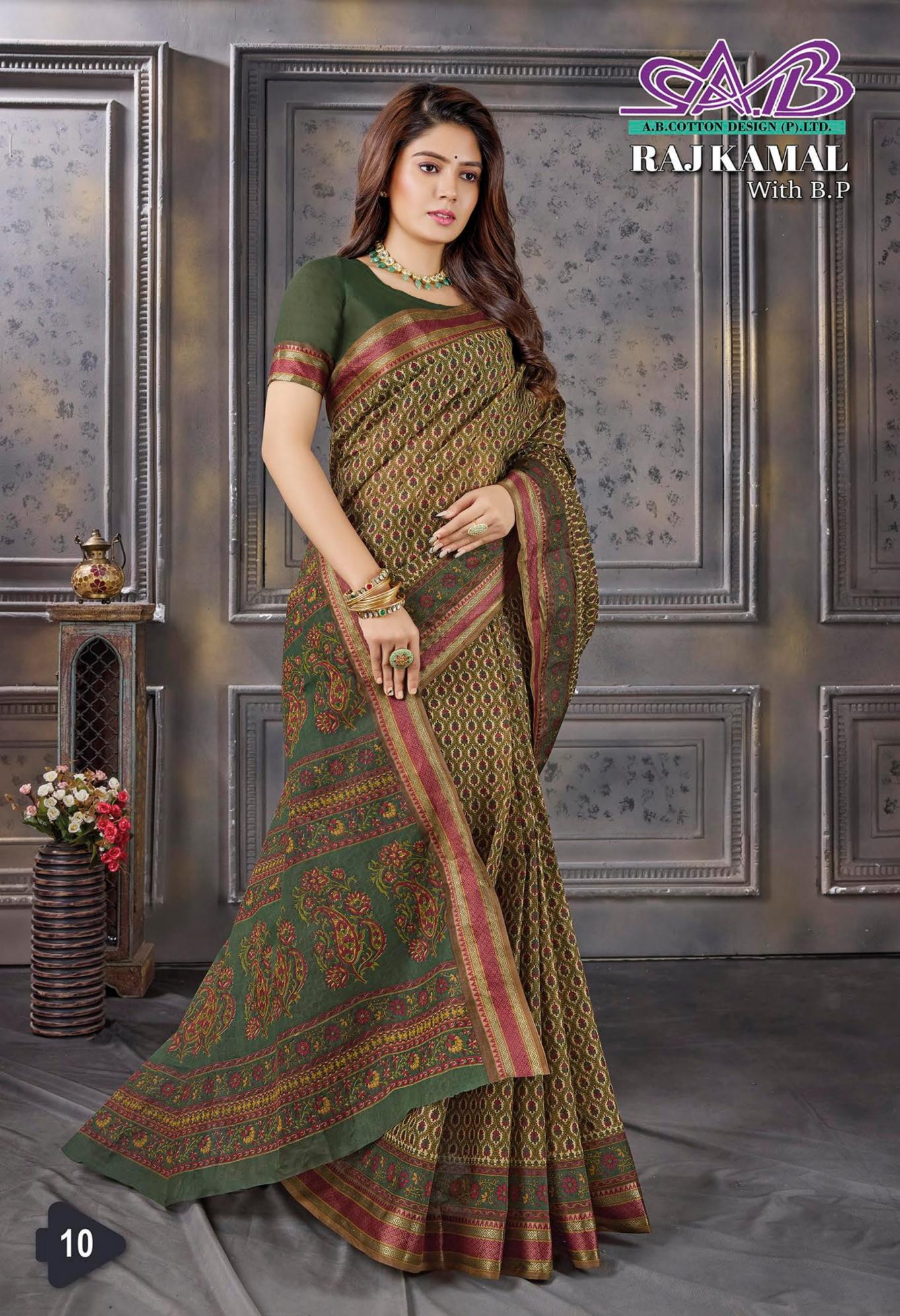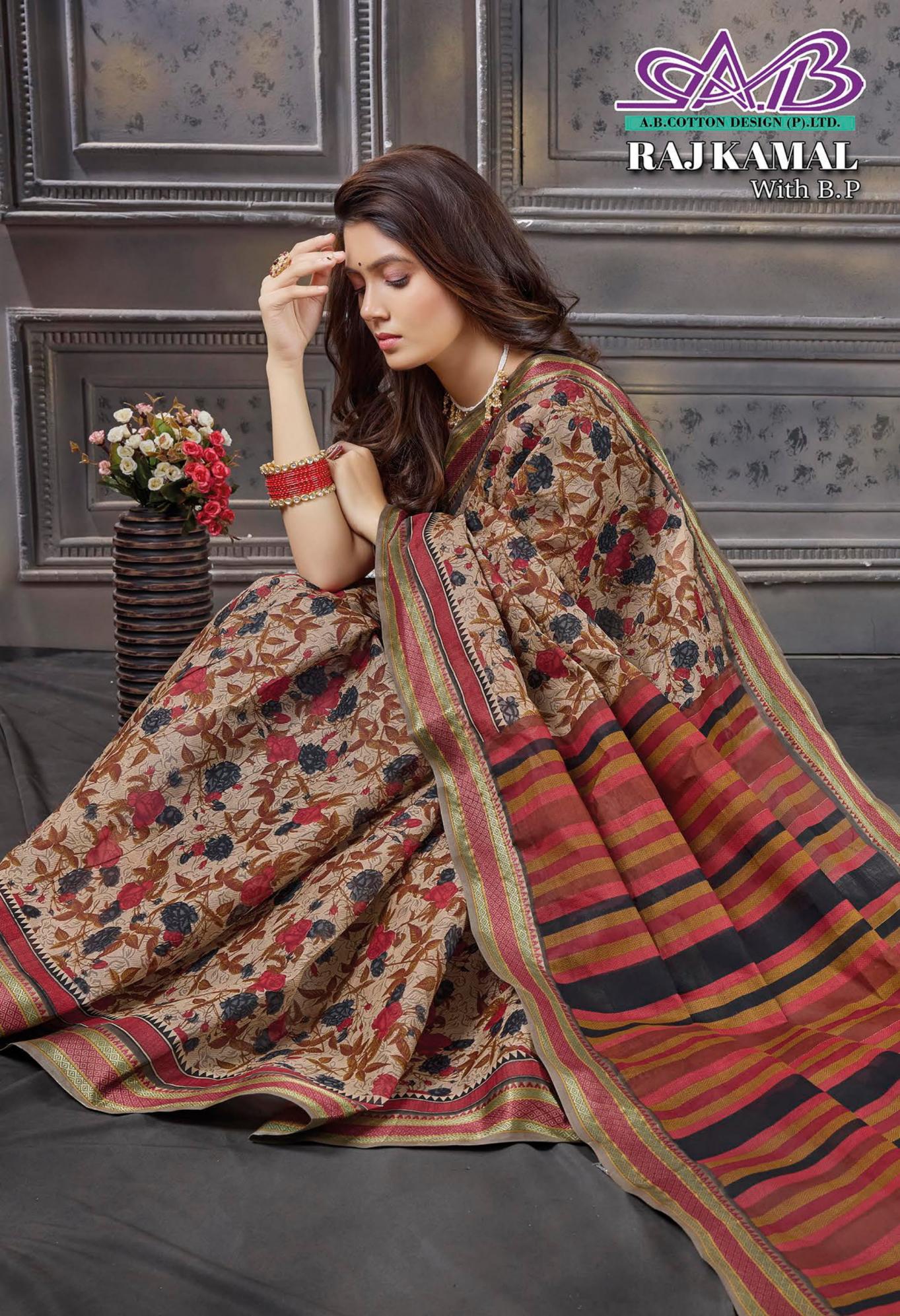 raj kamal by ab resham border cotton hit design sarees for womens