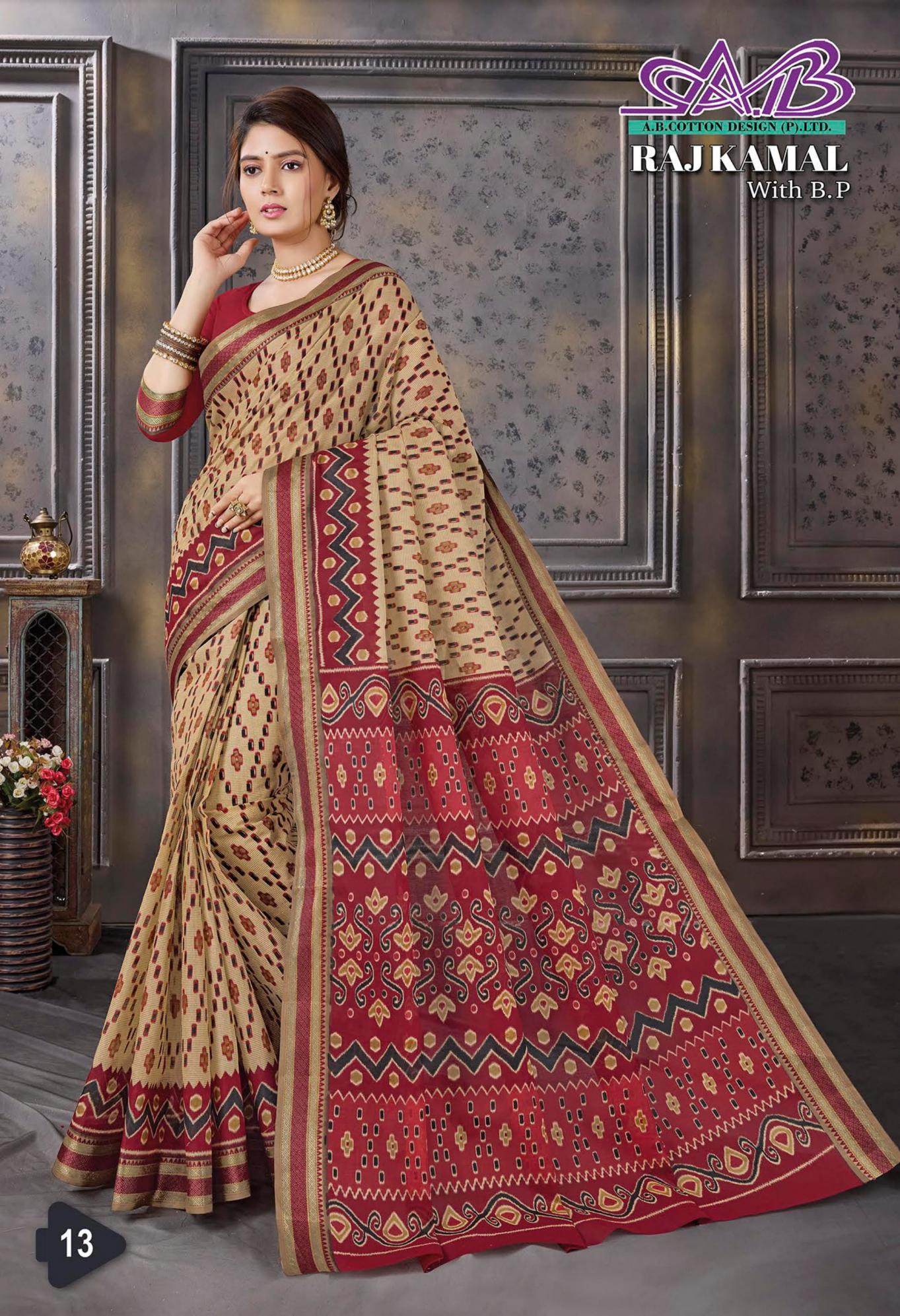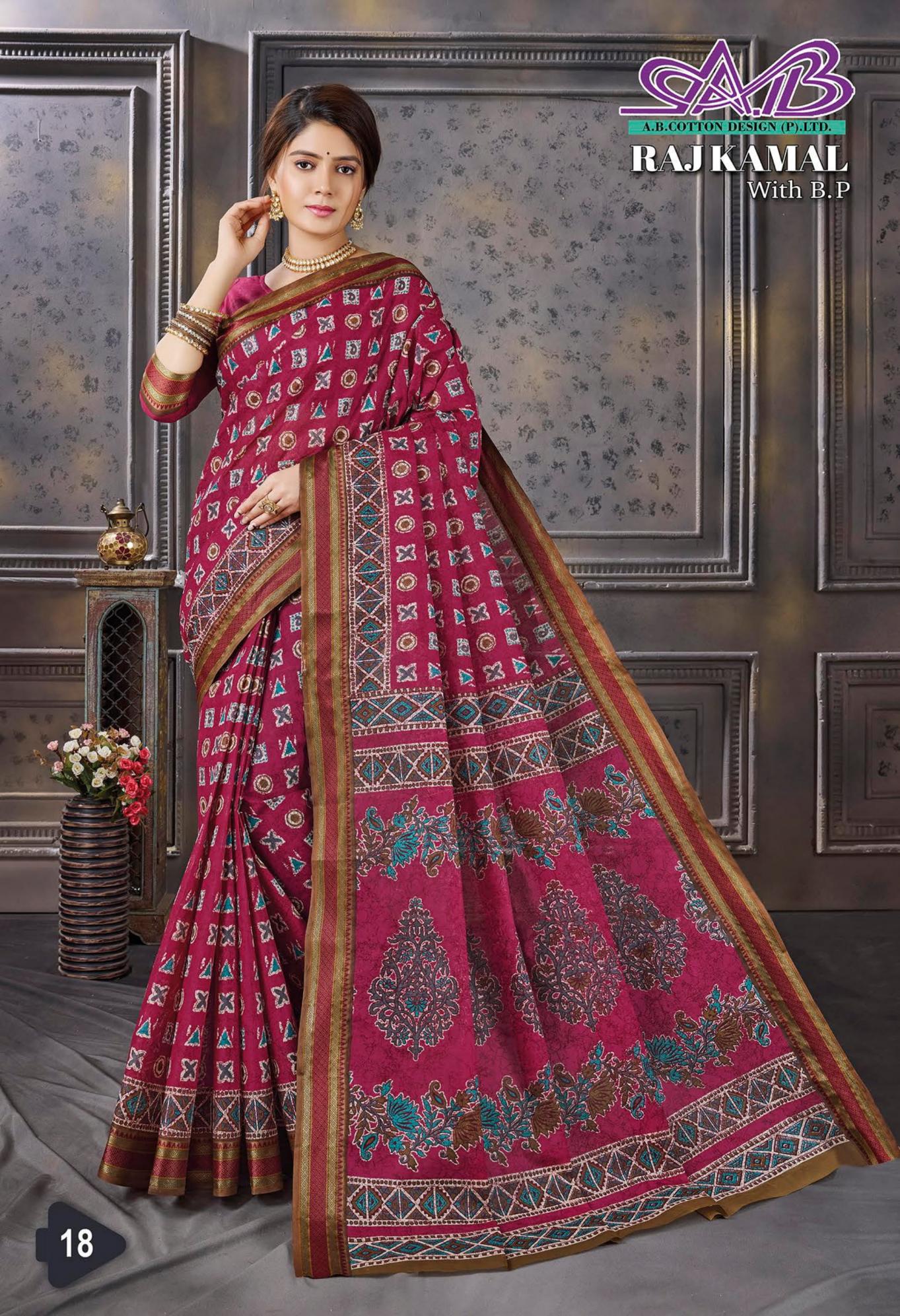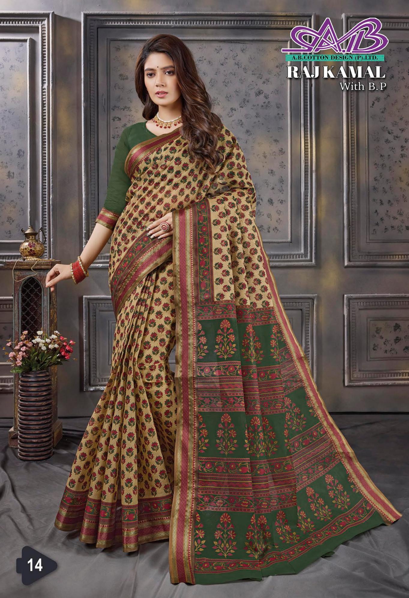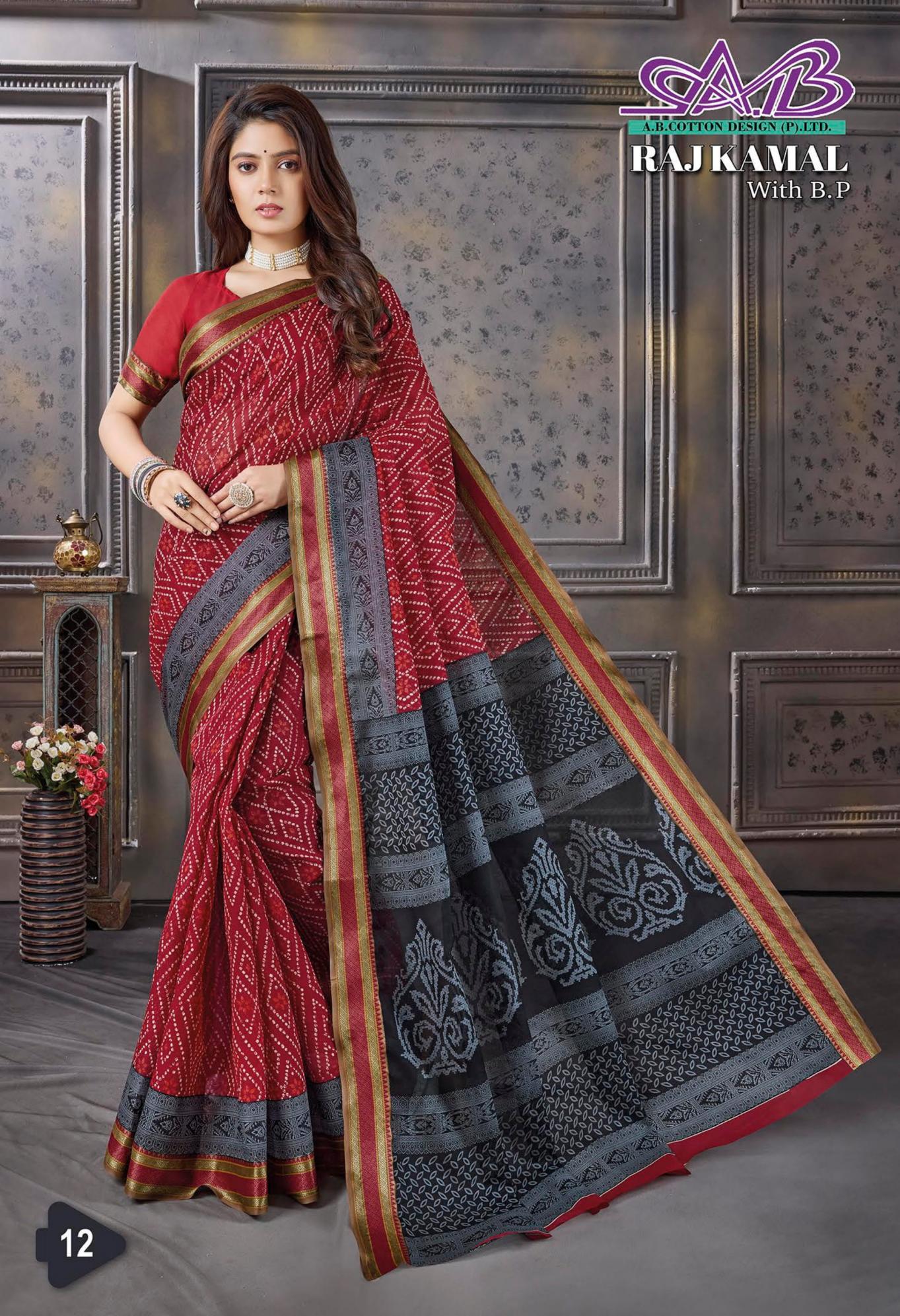 raj kamal by ab resham border cotton hit design sarees for womens