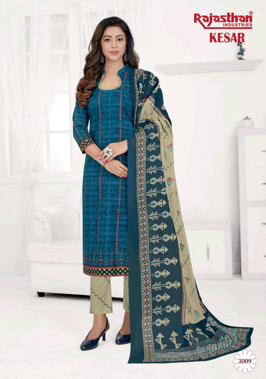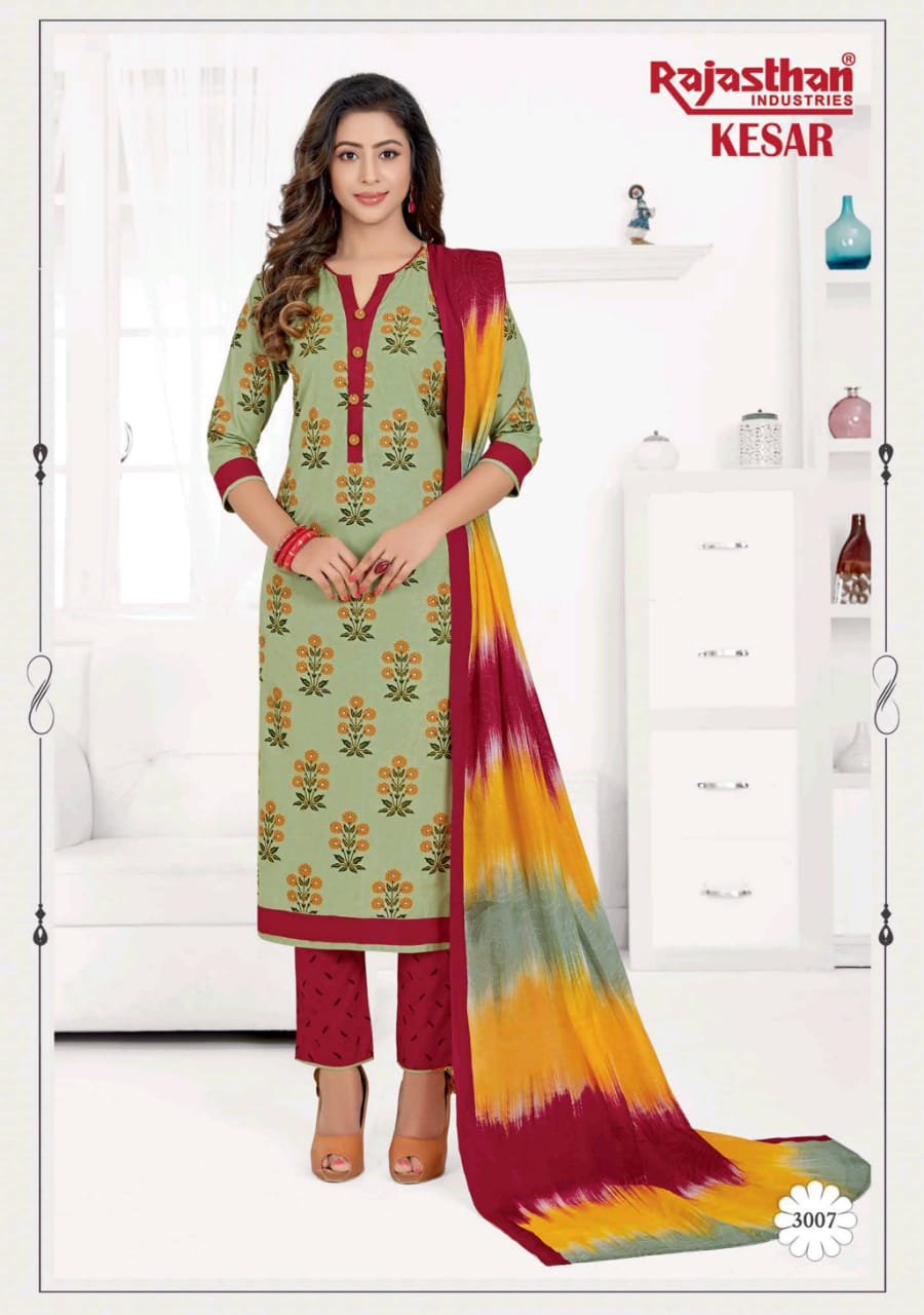 NEW LAUNCH KESAR VOL-3 12 Beautiful Designs UNSTITCHED LADIES SUITS COTTON PRINTED CASUAL WEAR CHUDIDAR SUITS WHOLESALER RATE :- 395/- |
