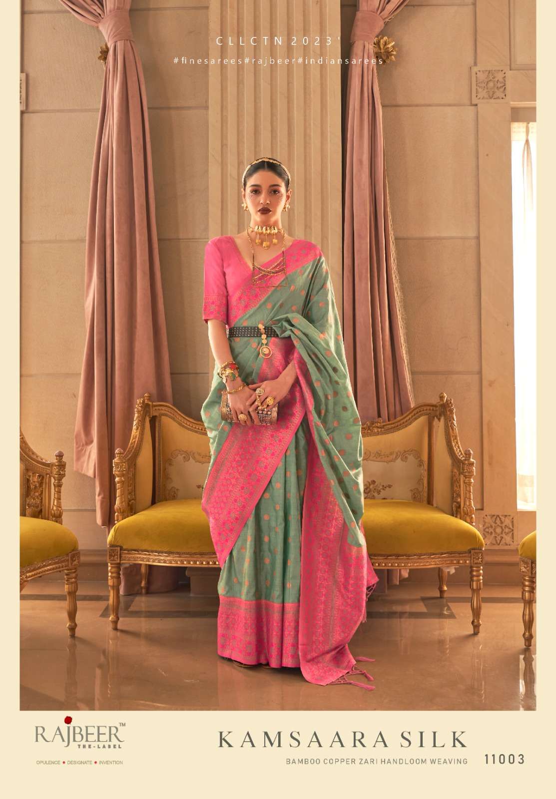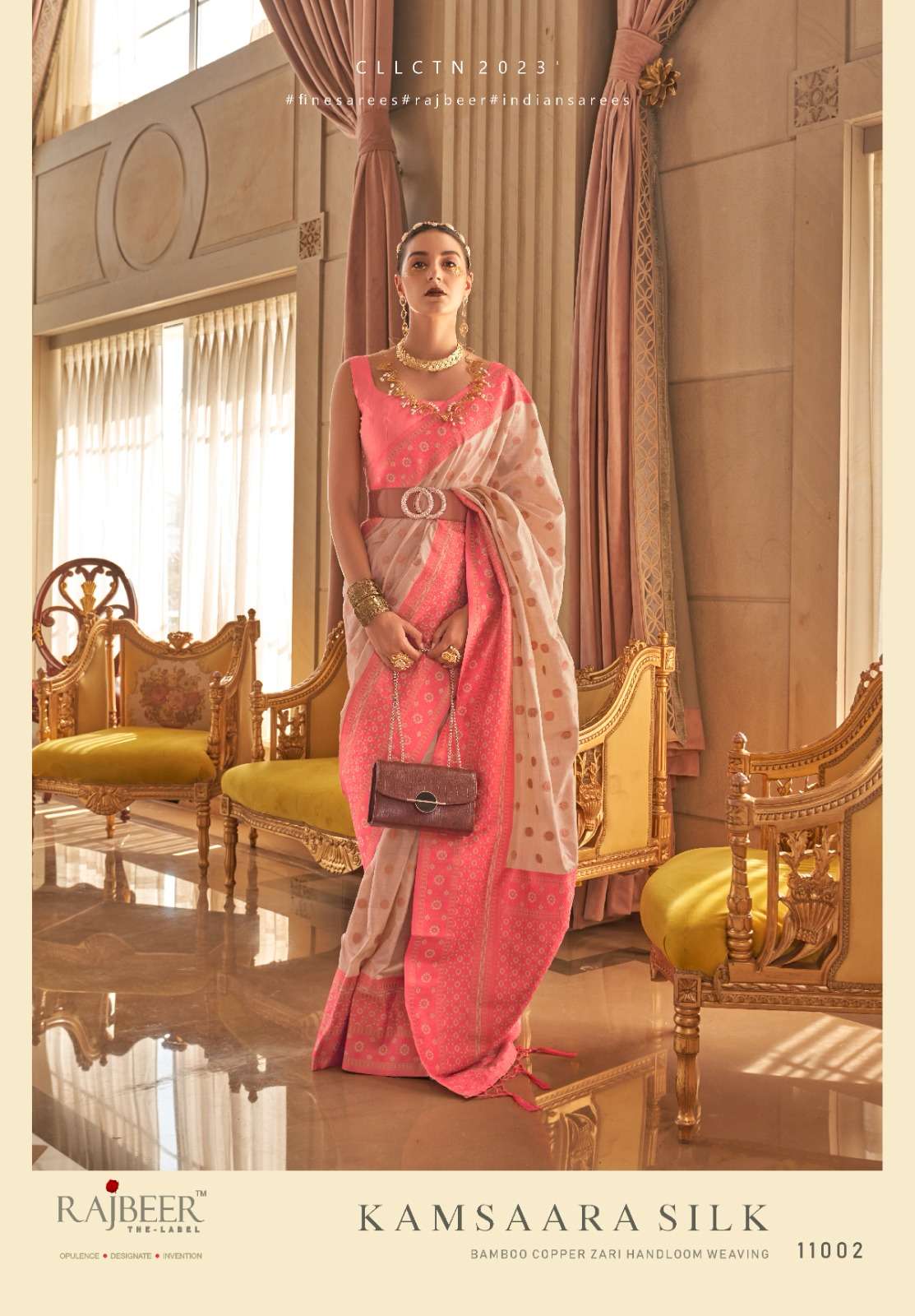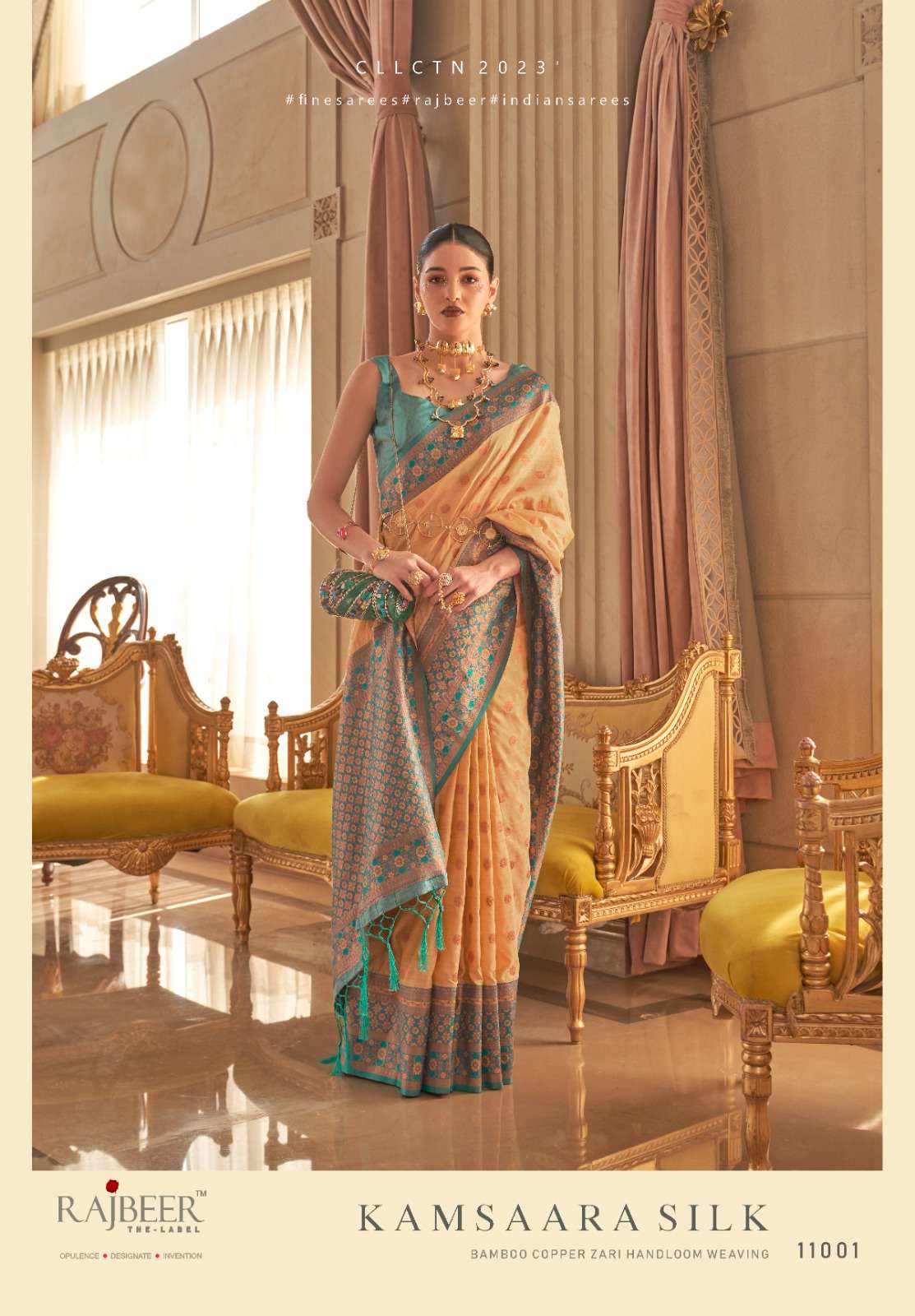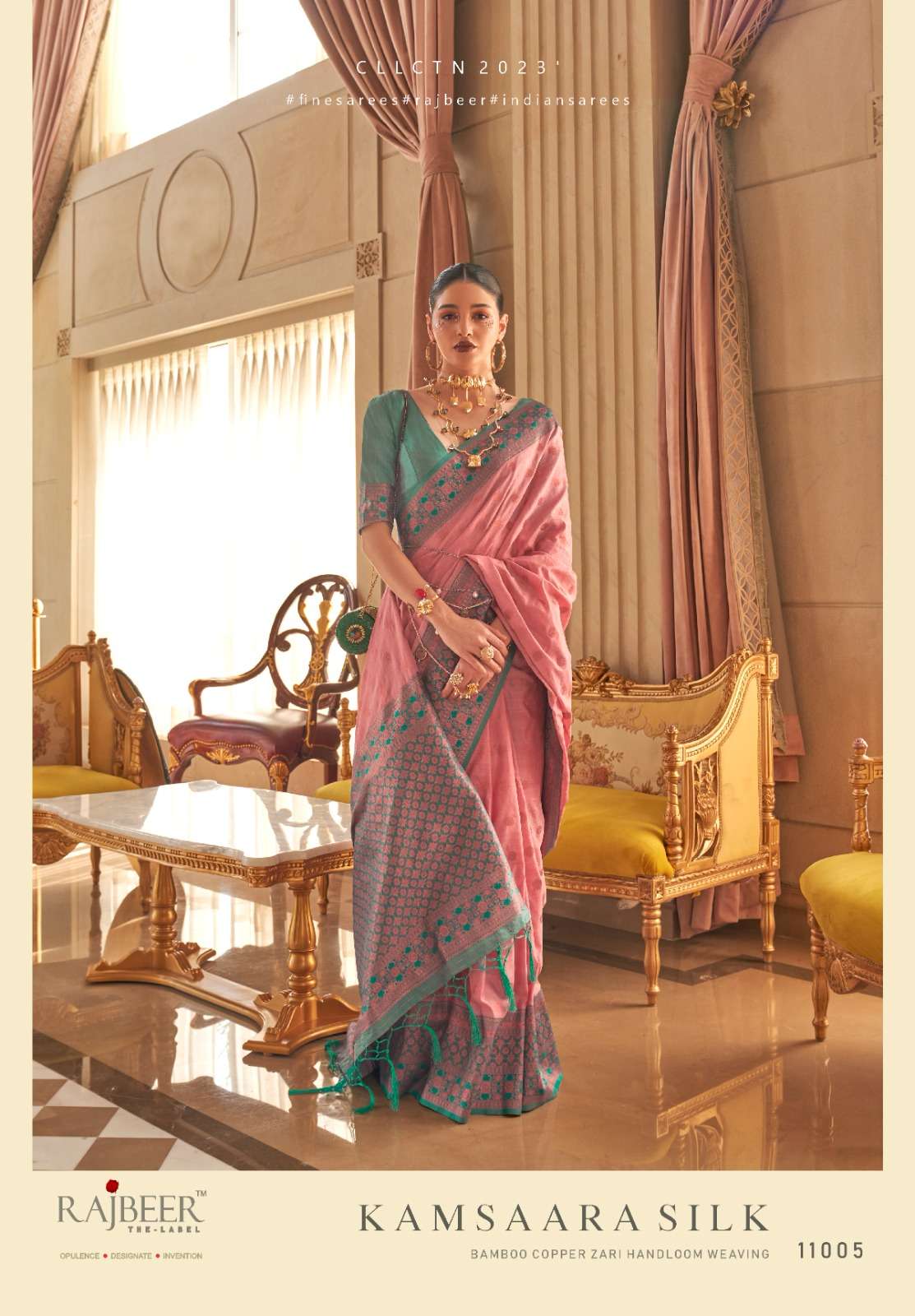 rajbeer present kamsaara silk bamboo copper zari handloom weaving sarees wholesaler