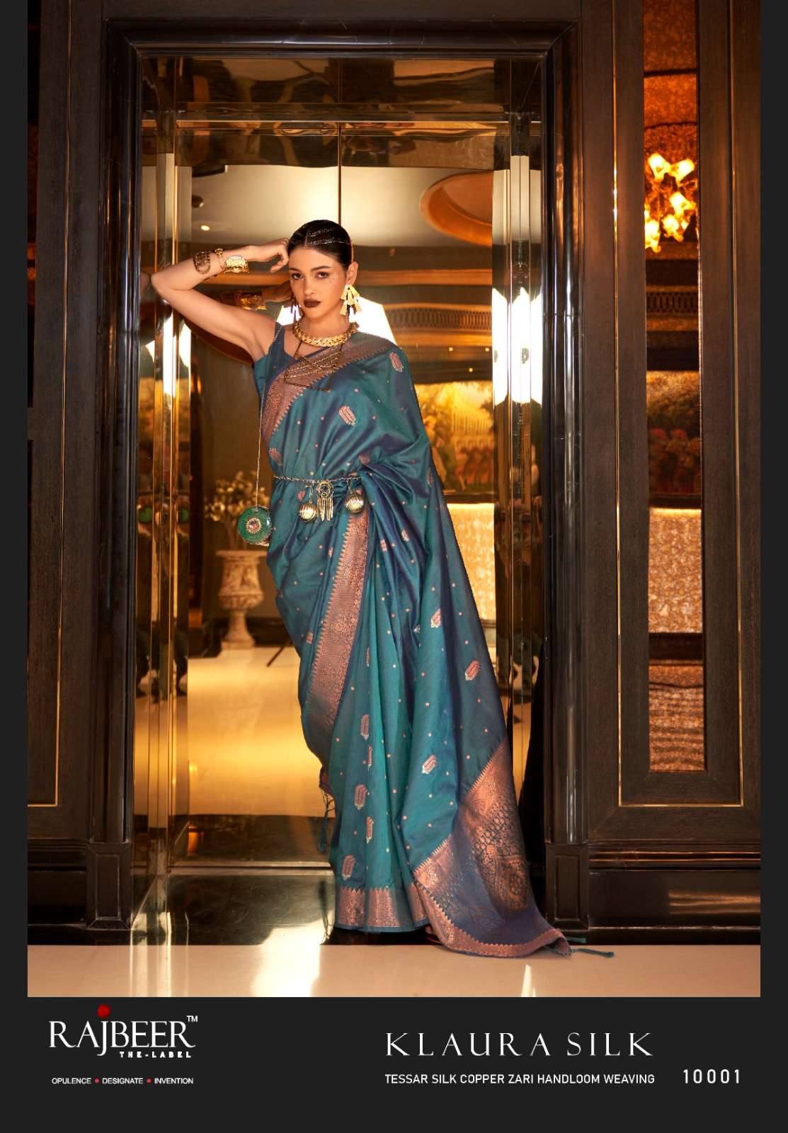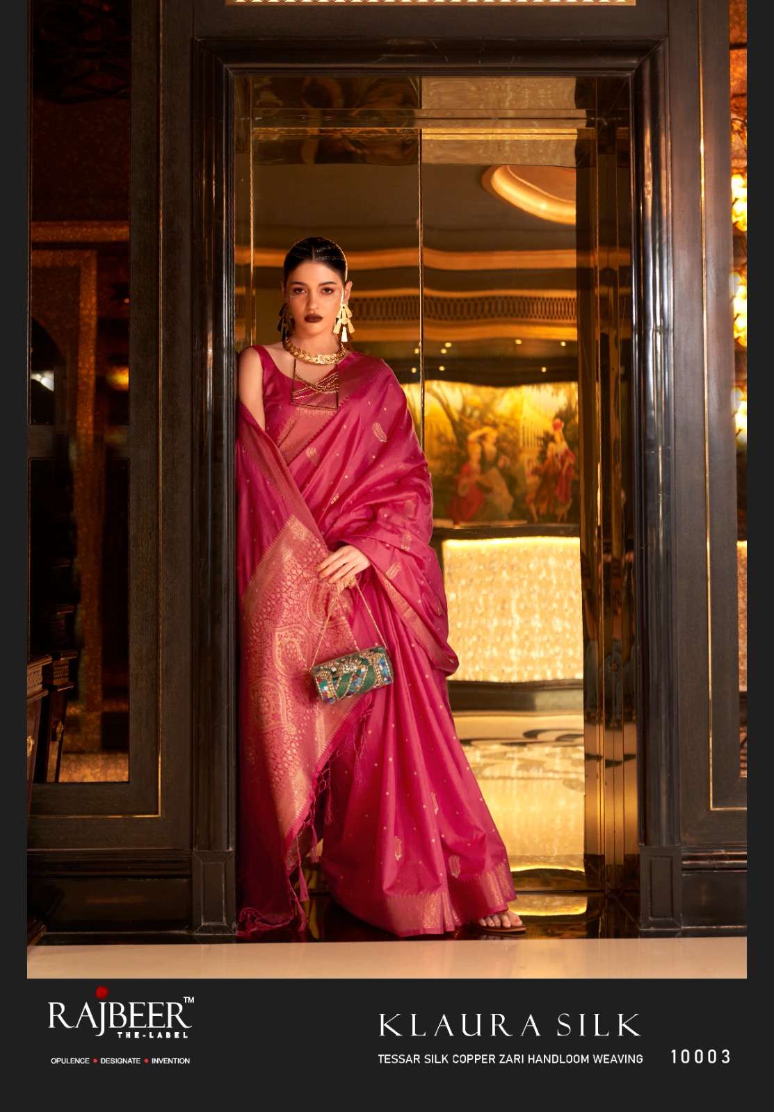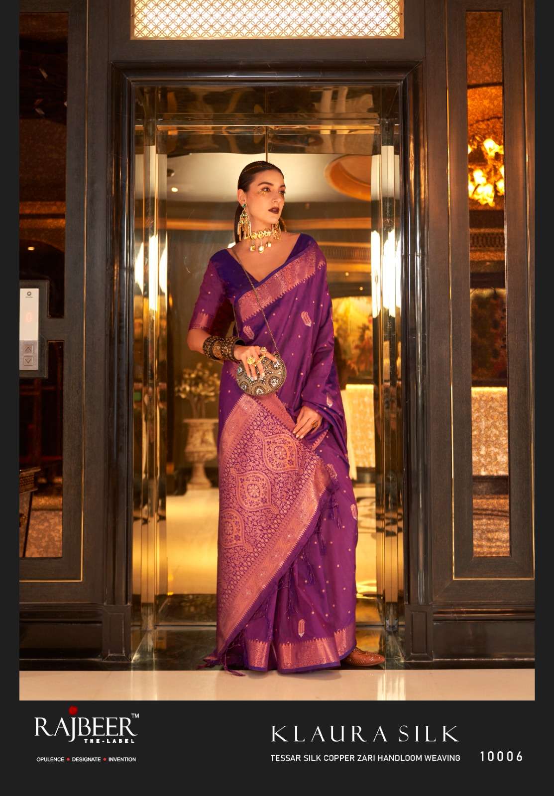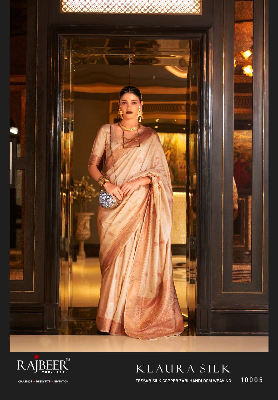 rajbeer present klaura silk amazing tessar silk copper zari handloom weaving sarees supplier
