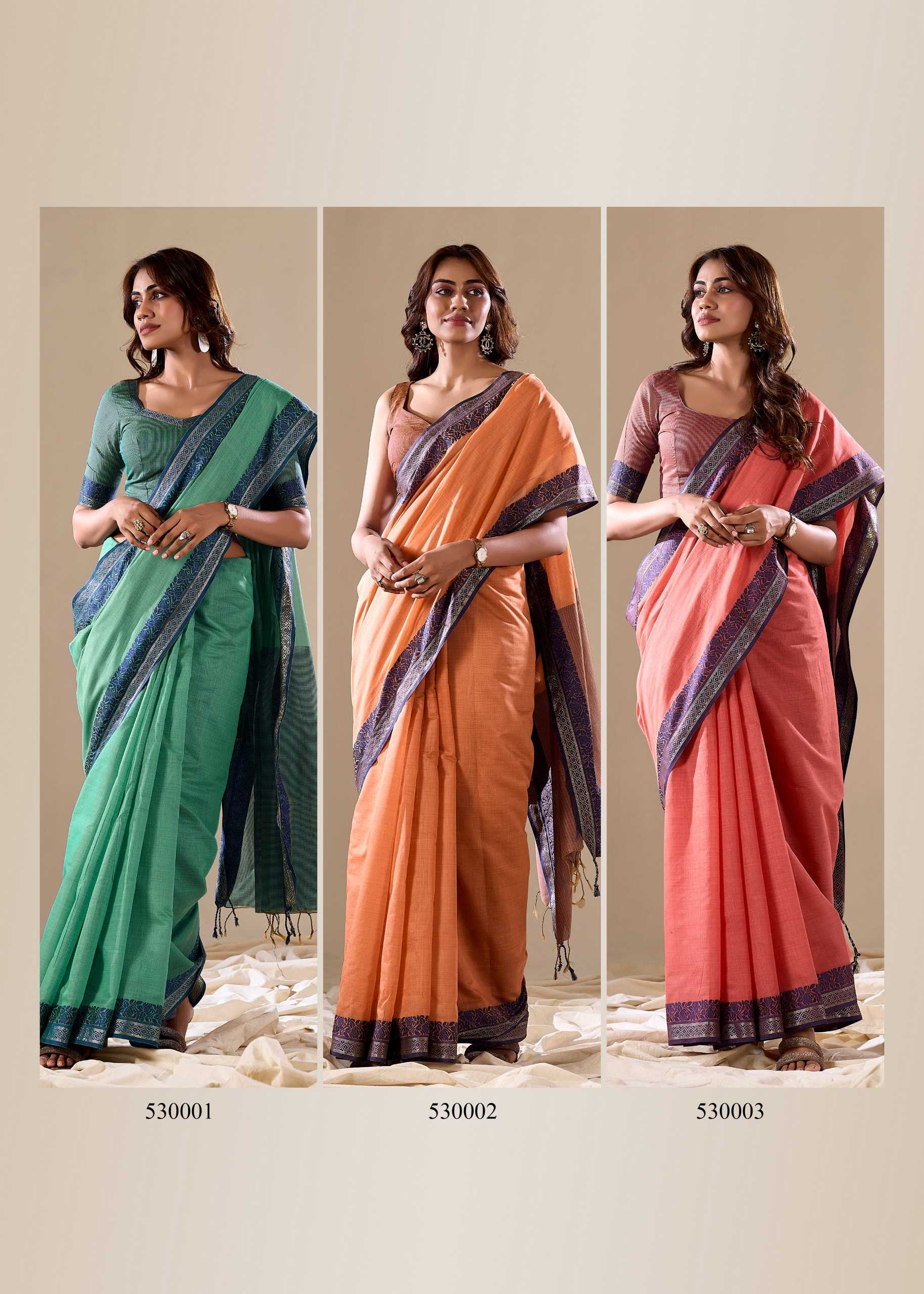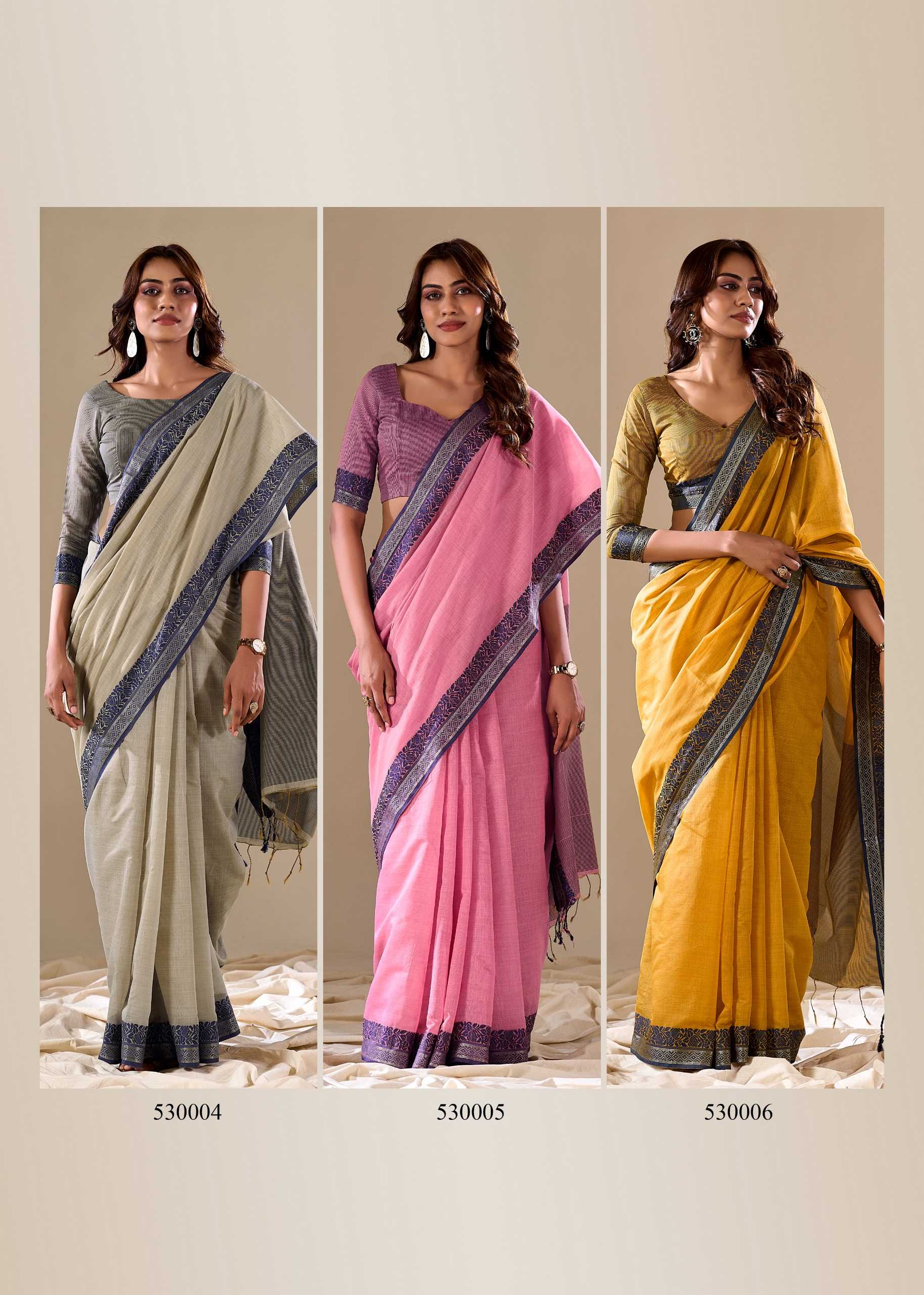 Brand - Rajpath Catalog Name -Abhilasha Silk Series :-53001 TO 53006 Rate : 699/-+5% Gst Fabric : Handloom Silk Saree With Contarast Border Blouse: Handloom Silk Saree Occasion : Uniform Wear, Casual Wear, Summer Wear |