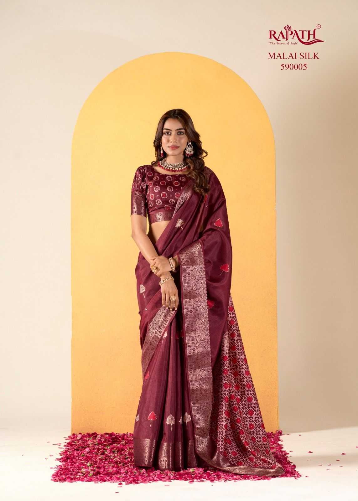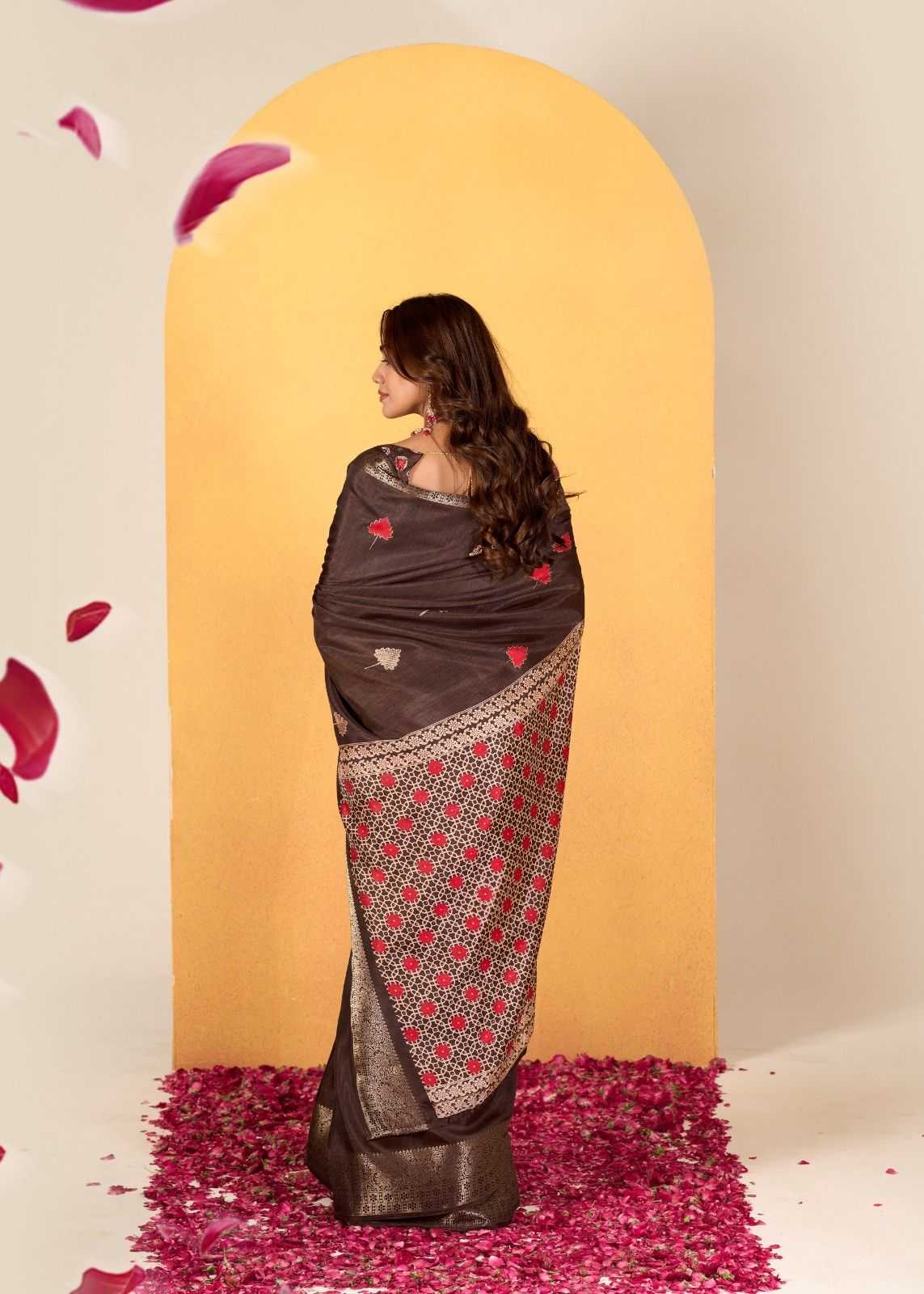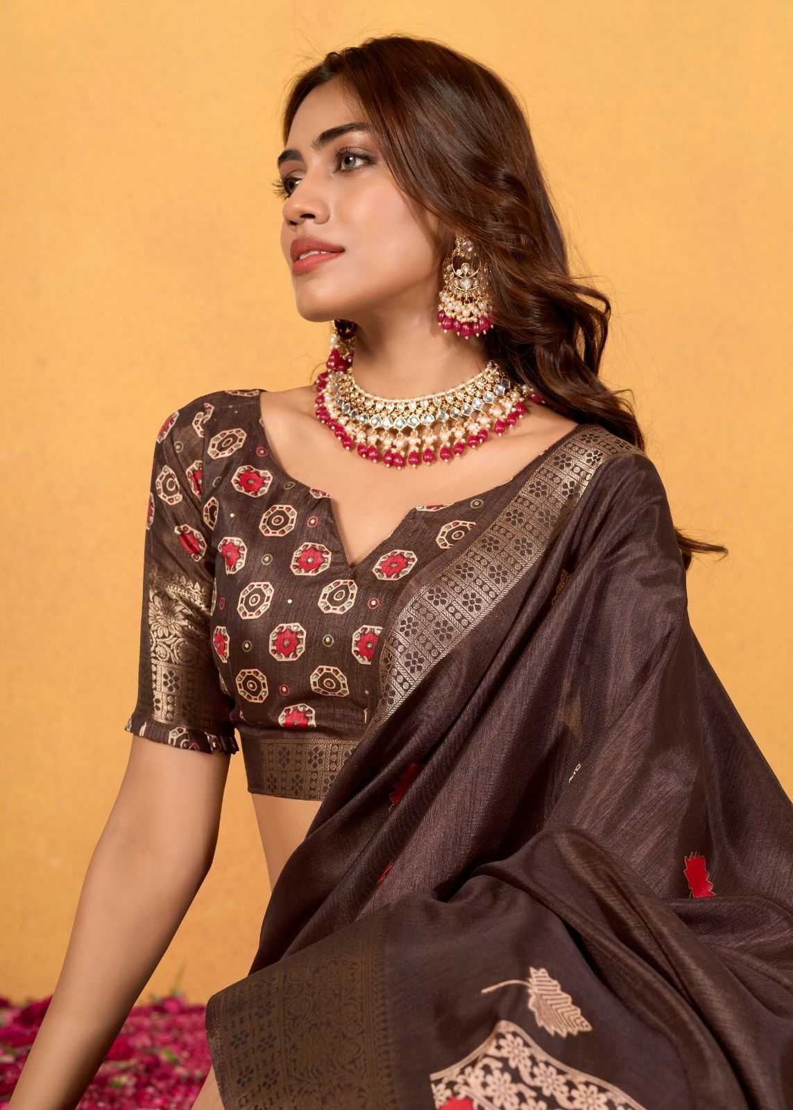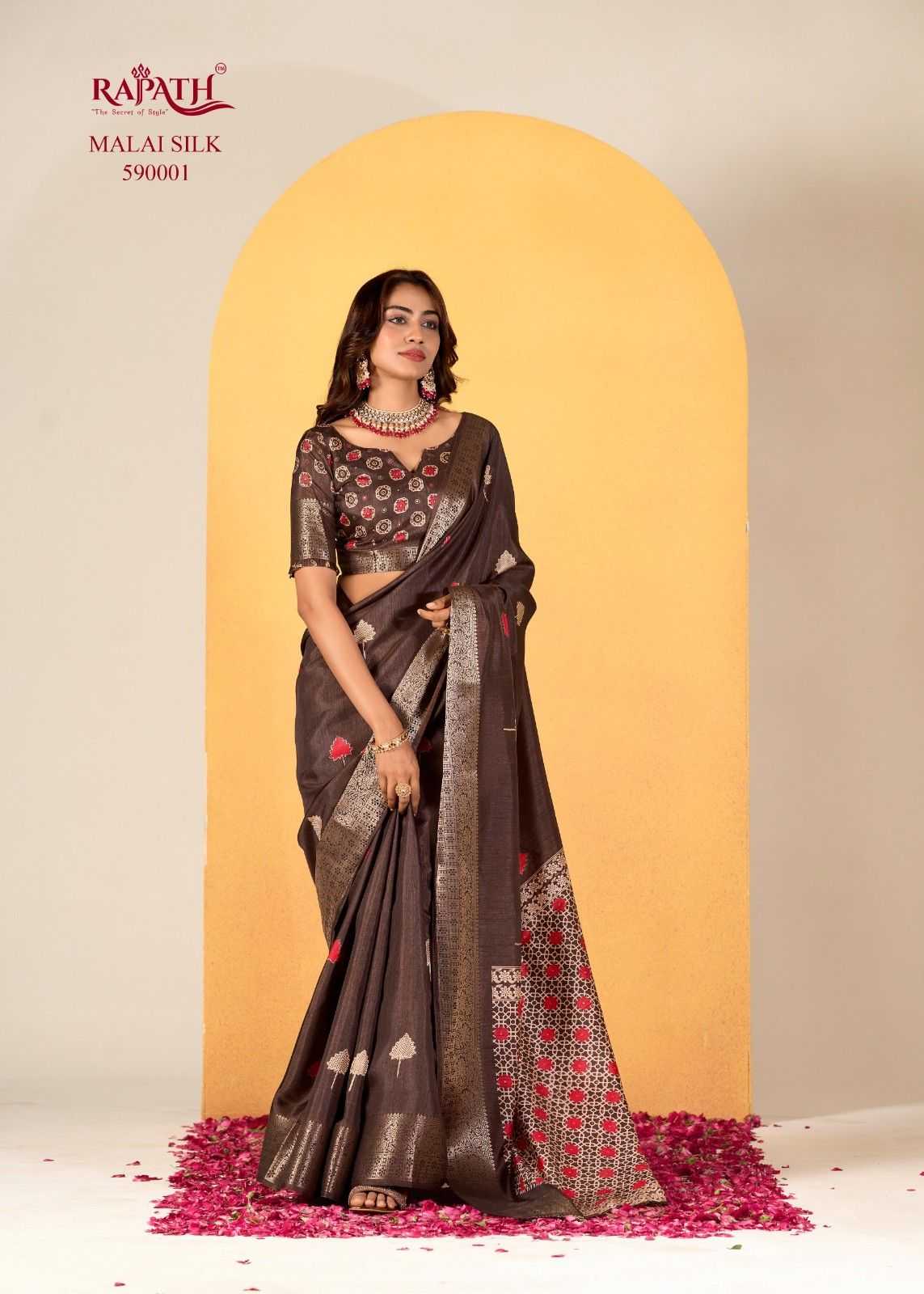 rajpath chocolate dola silk with foil print saree for women