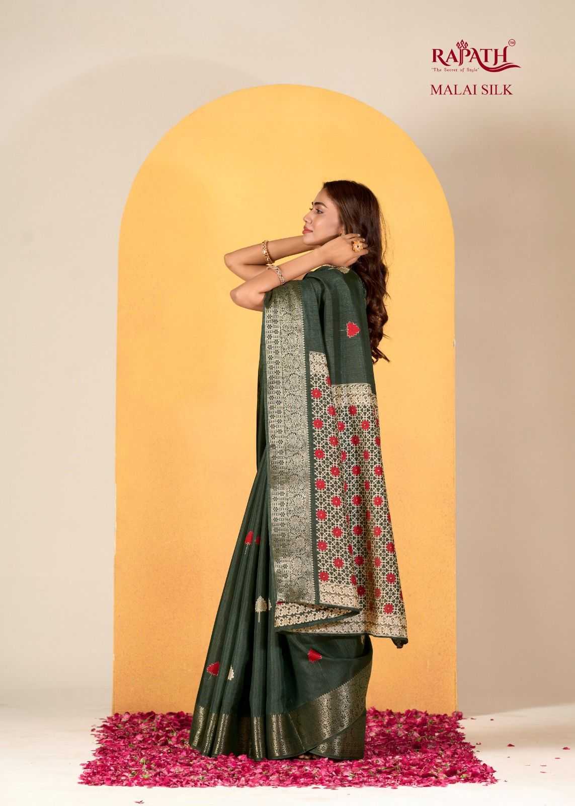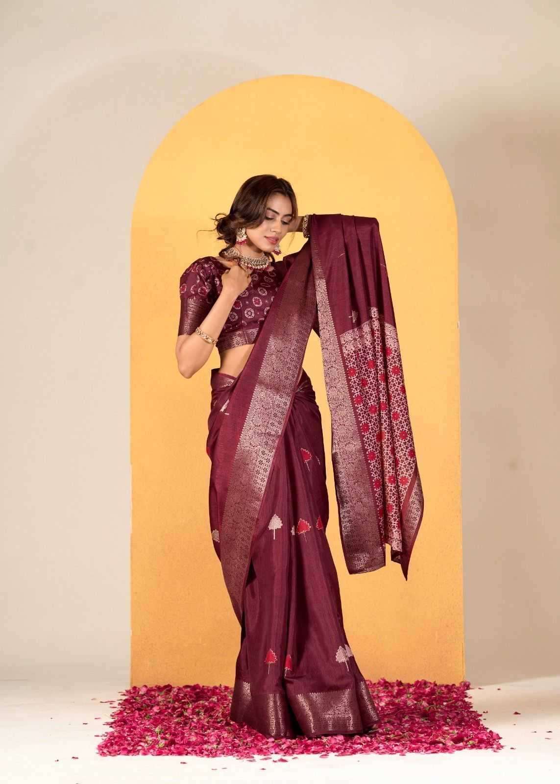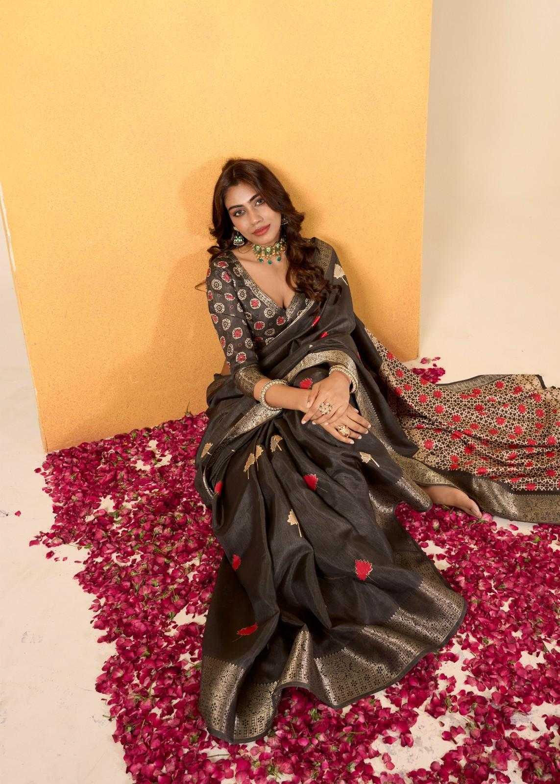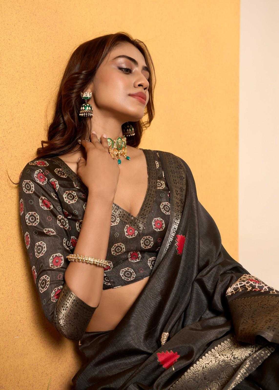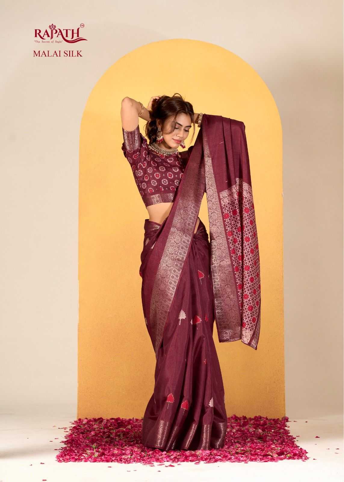 rajpath chocolate dola silk with foil print saree for women