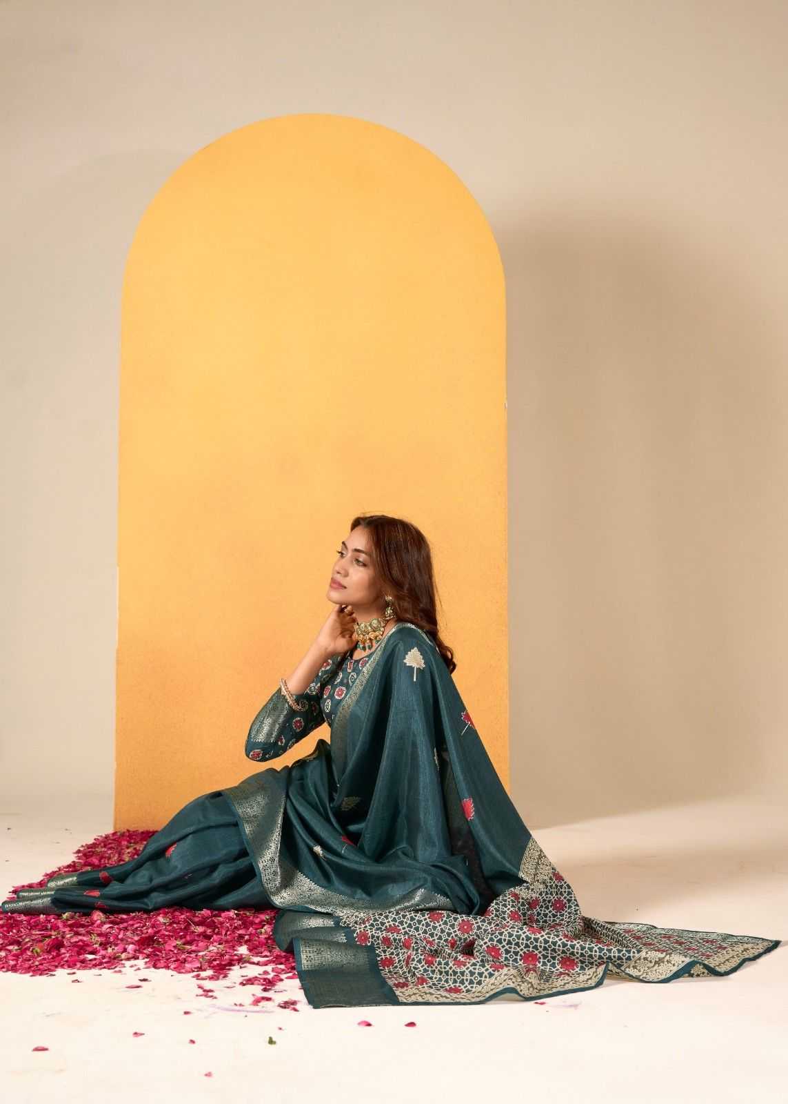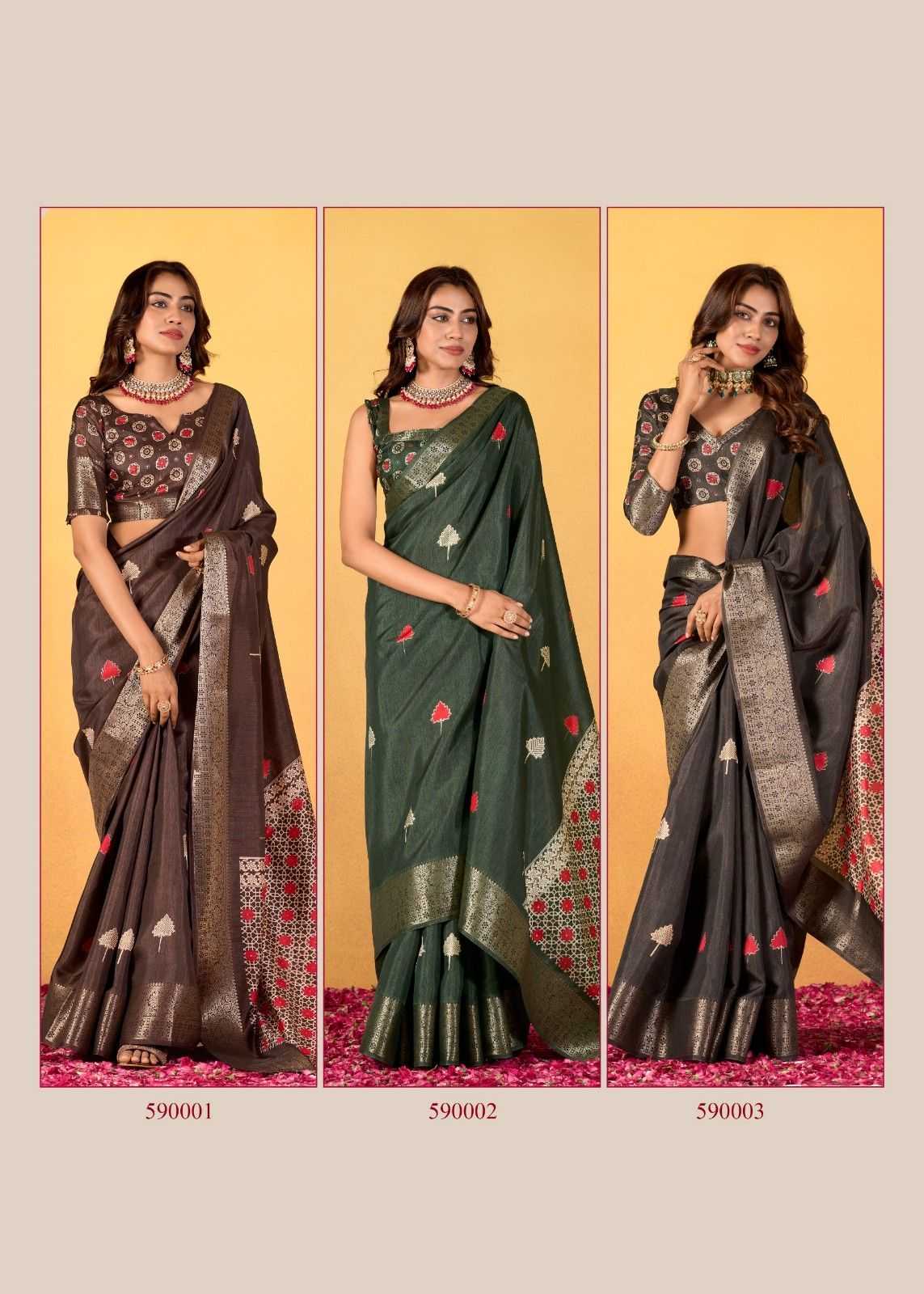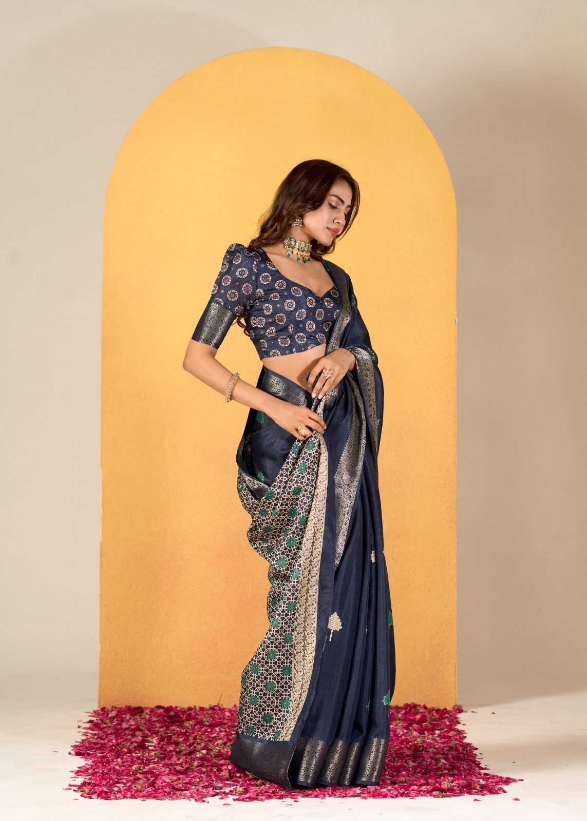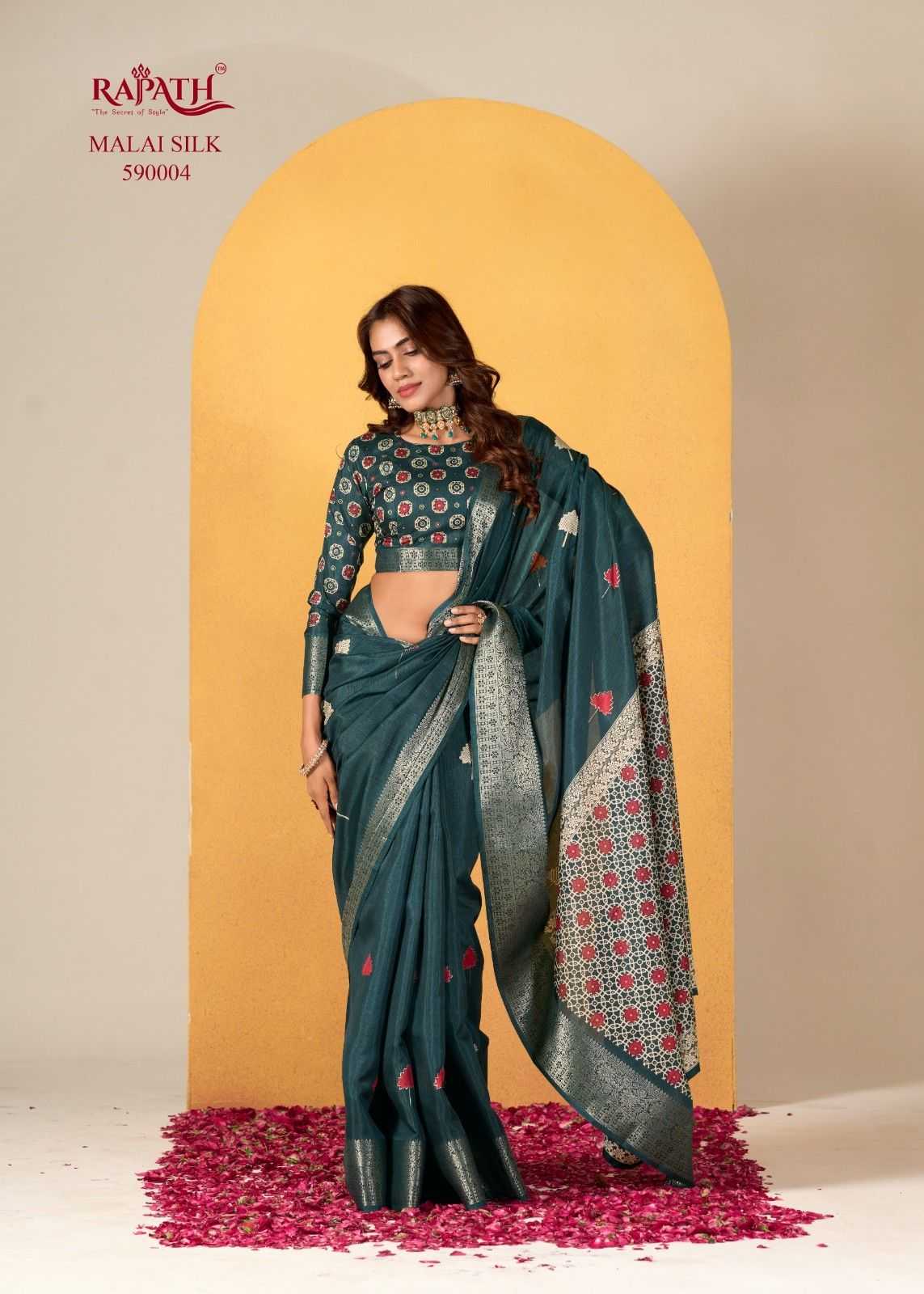 rajpath chocolate dola silk with foil print saree for women