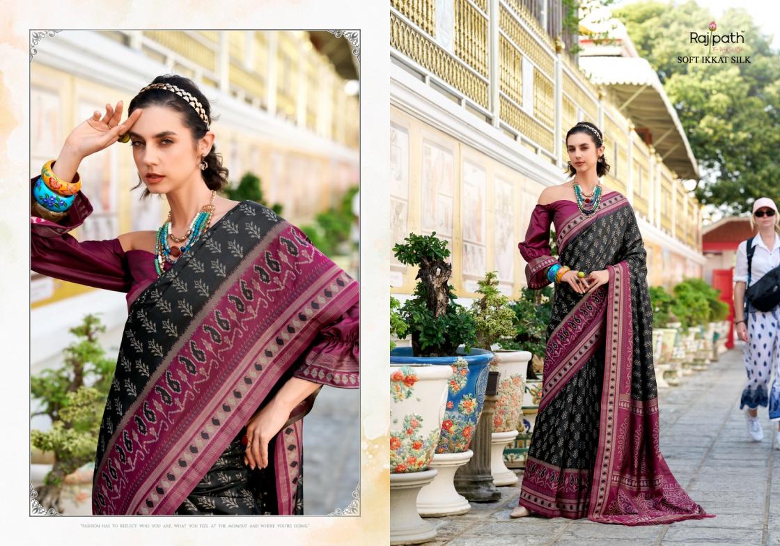 Soft Silk Saree Luxurious Fabric With Beautiful Ikkat Weaving Design And Elegant Drape Perfect For Any Occasion, This Saree Is A Statement Piece. Brand : Rajpath Catalog Name : Taj Mahal Vol -2 Series: 163 To 170 Saree Fabric : Soft Ikkat Silk Contrast Border Zari Weaving Saree Blouse Fabric : Soft Silk Occasion : Party Wear, Festival Wear |