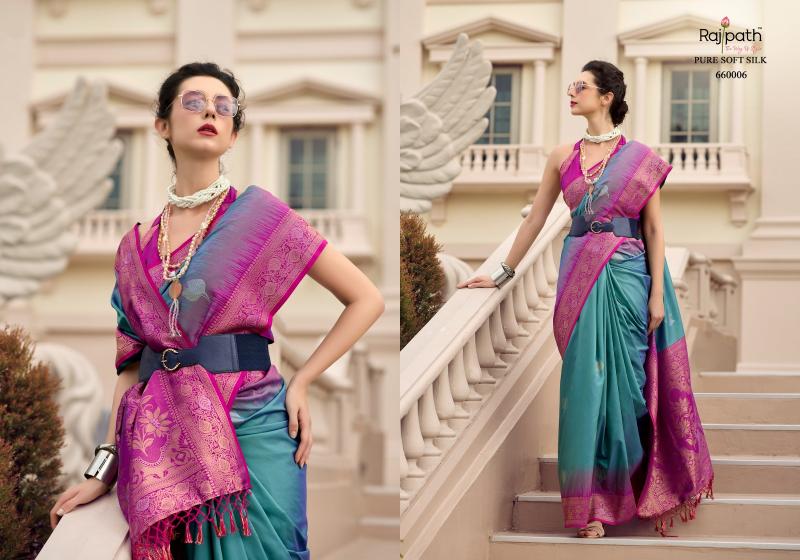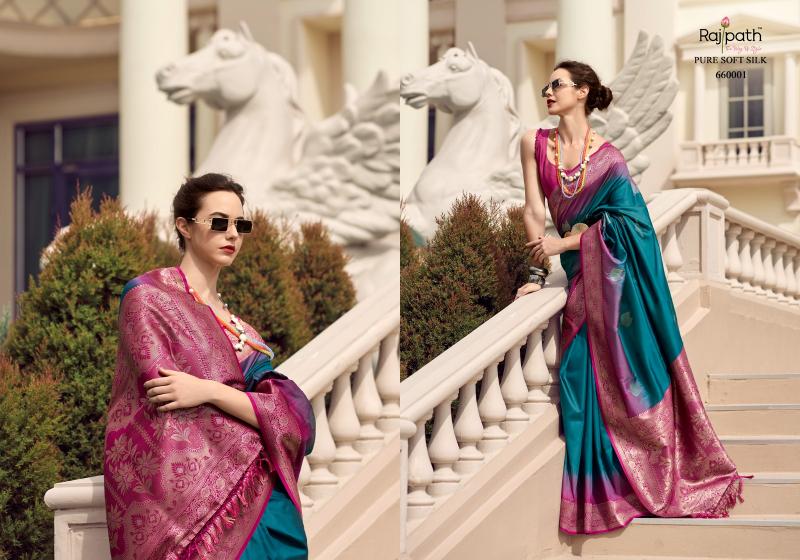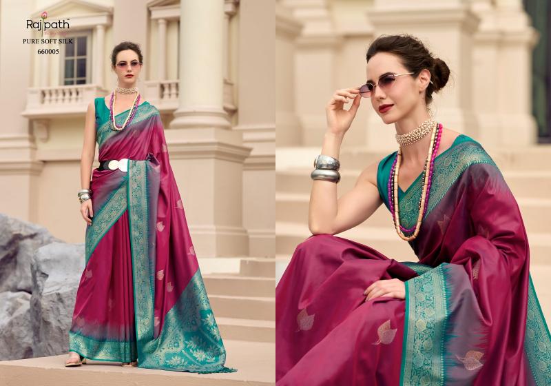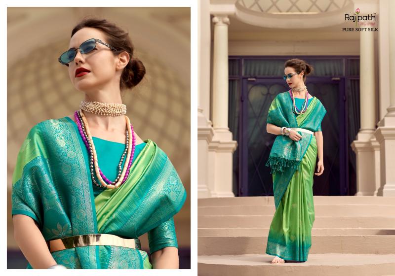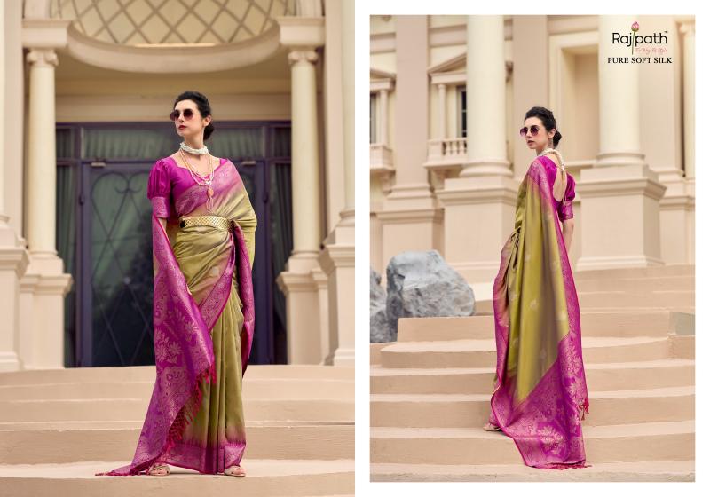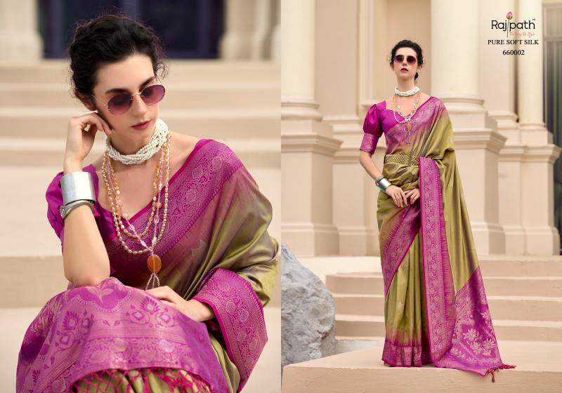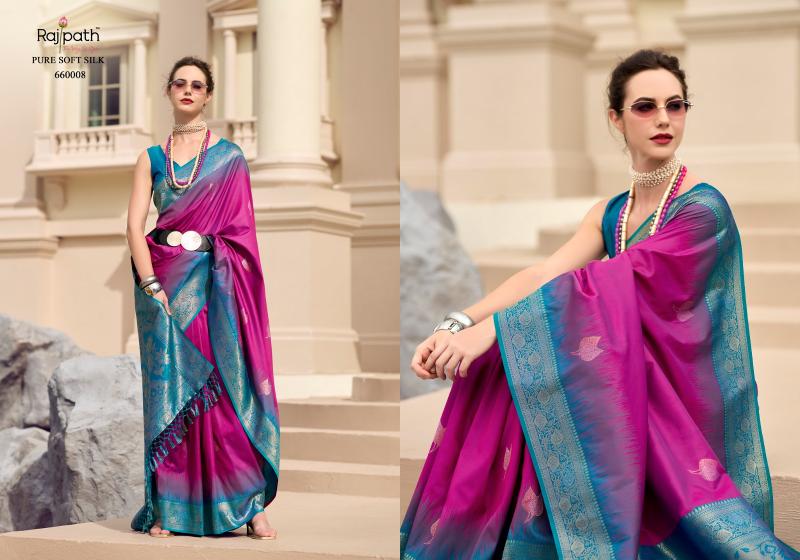 The Feminine Charm And Melodic Grace Of This Soft Silk Saree Add A Touch Of Sophistication And Elegance To Your Look Brand : Rajpath Catalog Name : White Mango Series: 660001 to 660008 Saree Fabric : Silk With Weaving All Over Saree With Contras Border & Tussles On Pallu Blouse Fabric : Silk With Weaving Occasion : Festival Wear, Party Wear |