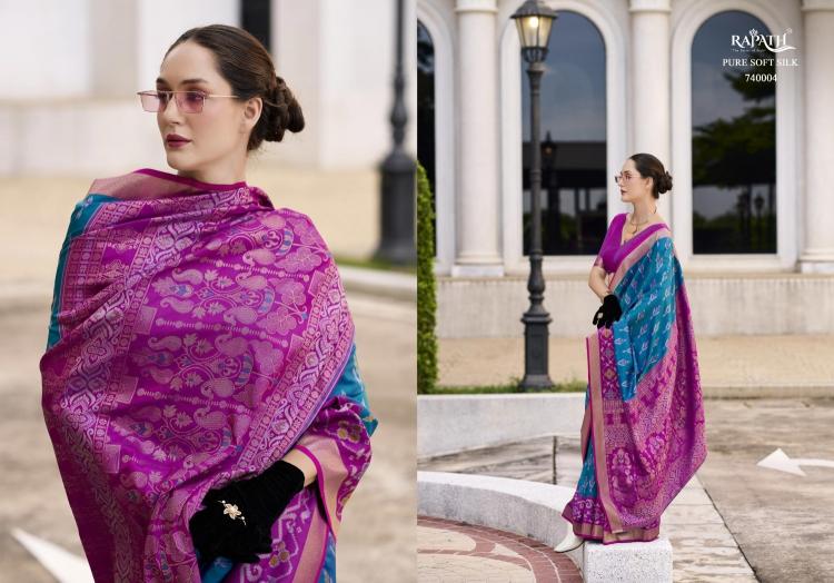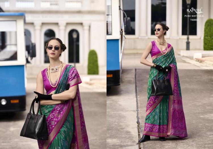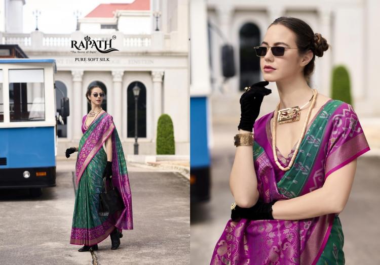 Soft Silk Weaving Saree Luxurious Fabric With Beautiful Ikkat Design And Elegant Drape Perfect For Any Occasion, This Saree Is A Statement Piece. Brand : Rajpath Catalog Name : Pyramid Series: 740001 To 740008 Saree Fabric : Ikkat Base Soft Silk With Weaving Or Beautiful Contrast Border Blouse Fabric : Soft Silk Occasion : Party Wear, Festival Wear, |