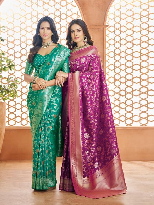 rajpath shvitri vol 1 banarasi silk attractive look saree wholesaler