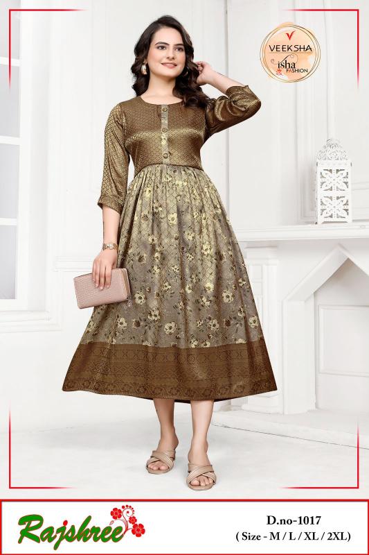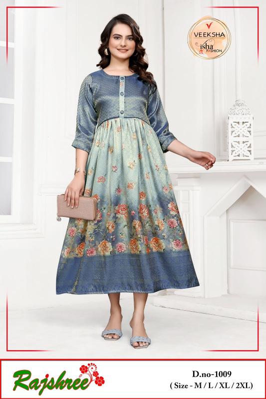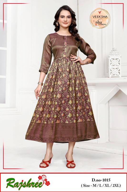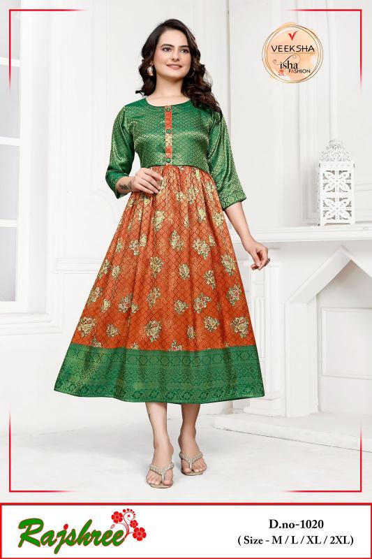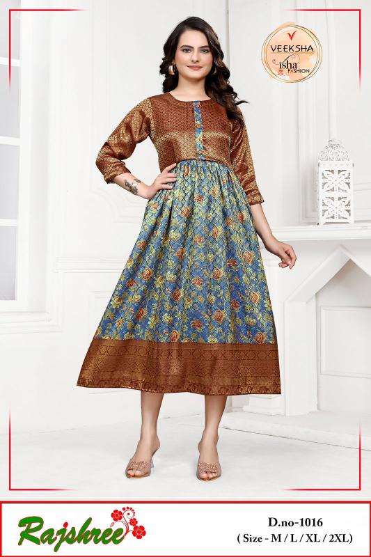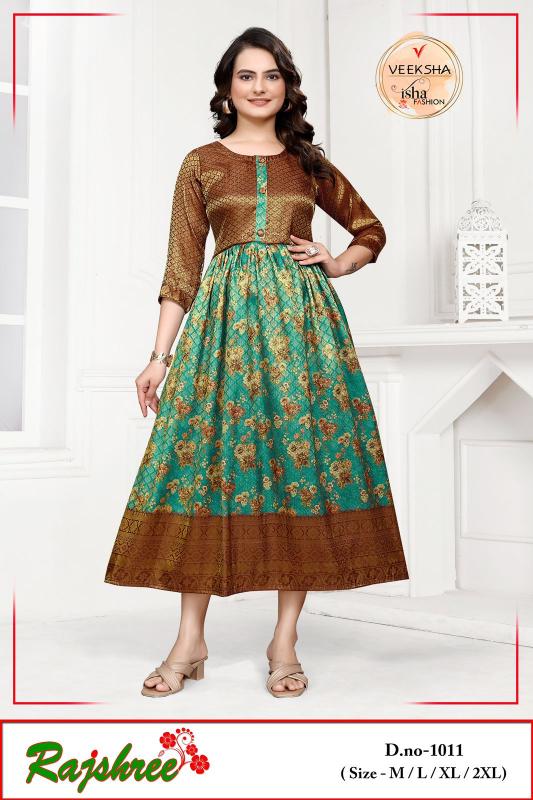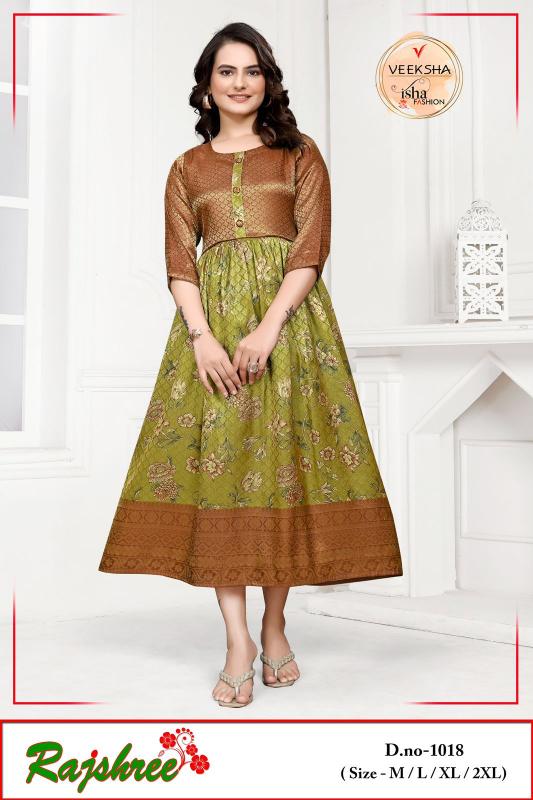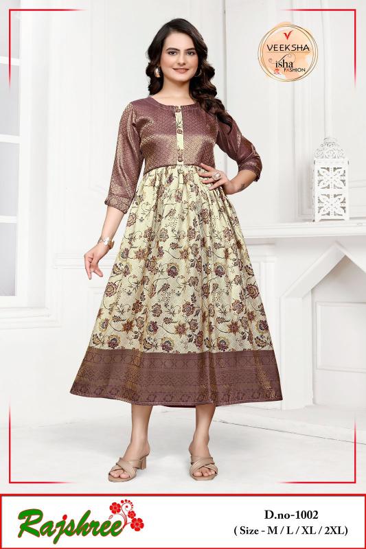 rajshree vol 1 by veeksha died jacquard readymade frock style long combo kurti