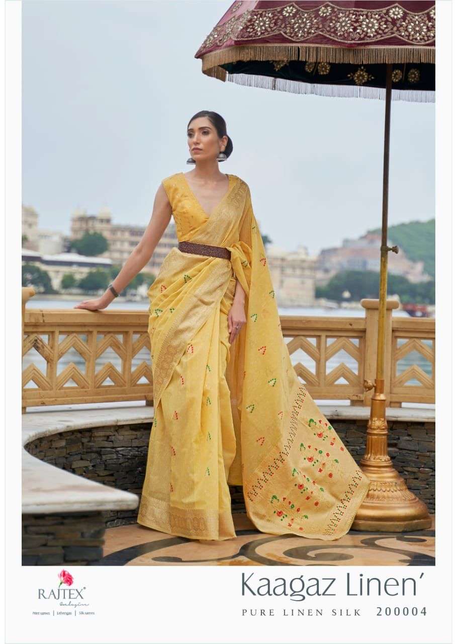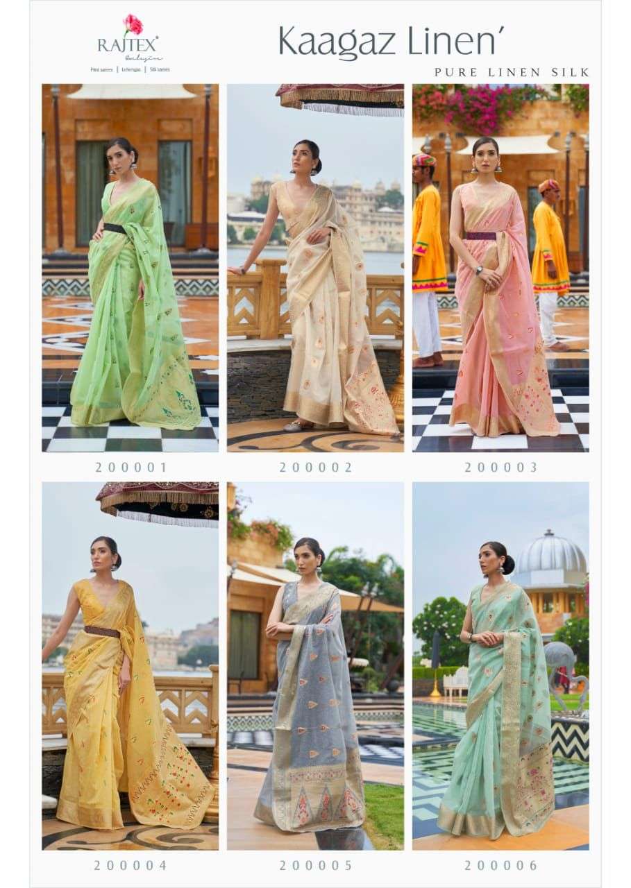 rajtex kaagaz linen 20001-20006 series pure linen sarees wholesaler