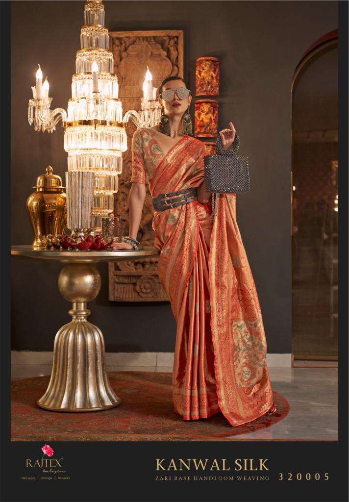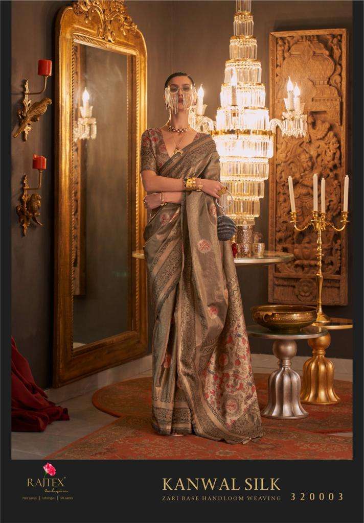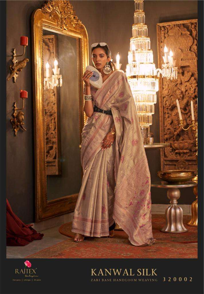 rajtex kanwal silk 320001-320006 series designer zari base weaving silk saree