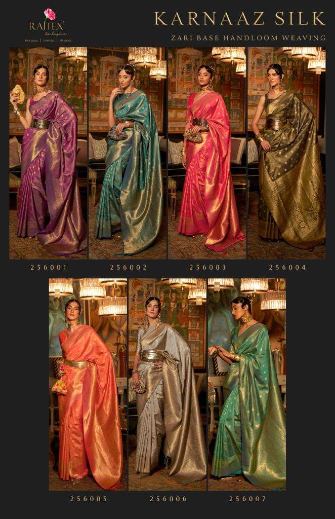 rajtex karnaaz silk 256001-256007 zari base handloom weaving silk sarees collection