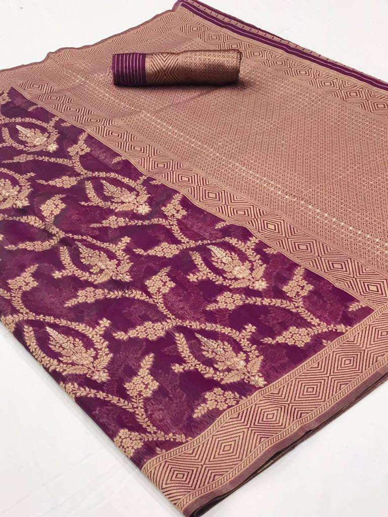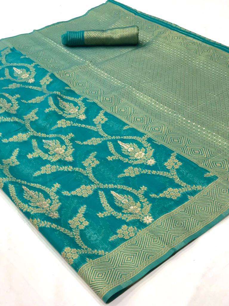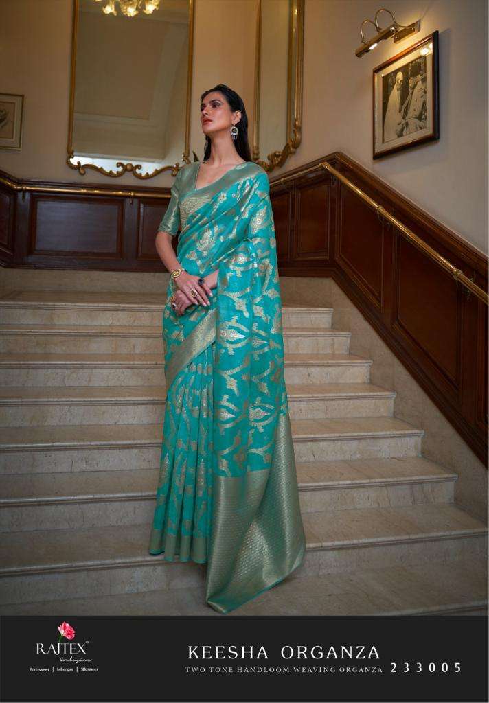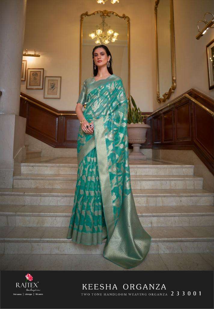 rajtex keesha organza party wear handloom weaving unstitched sarees
