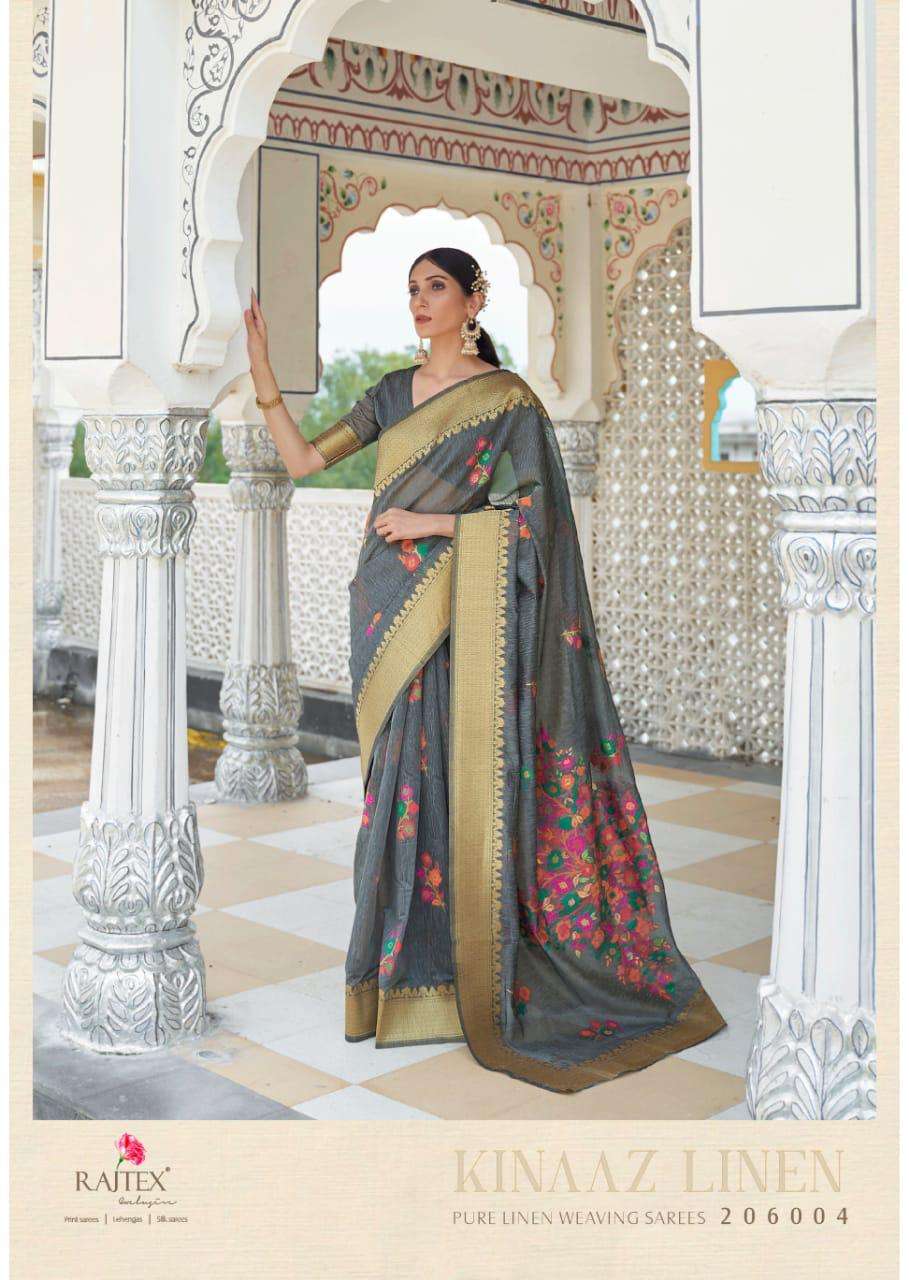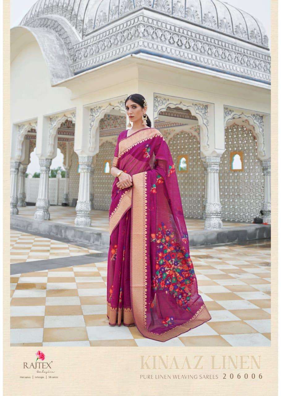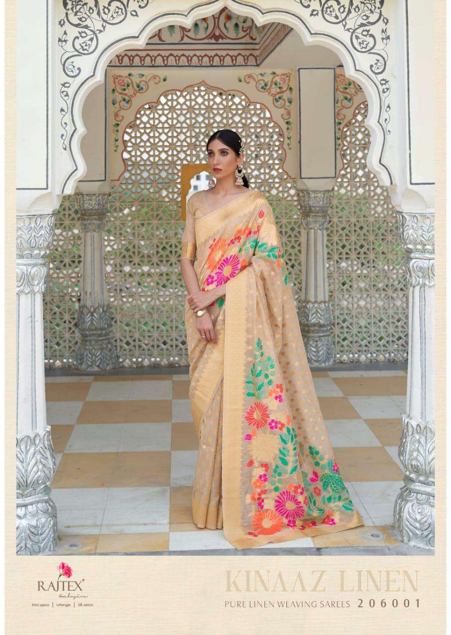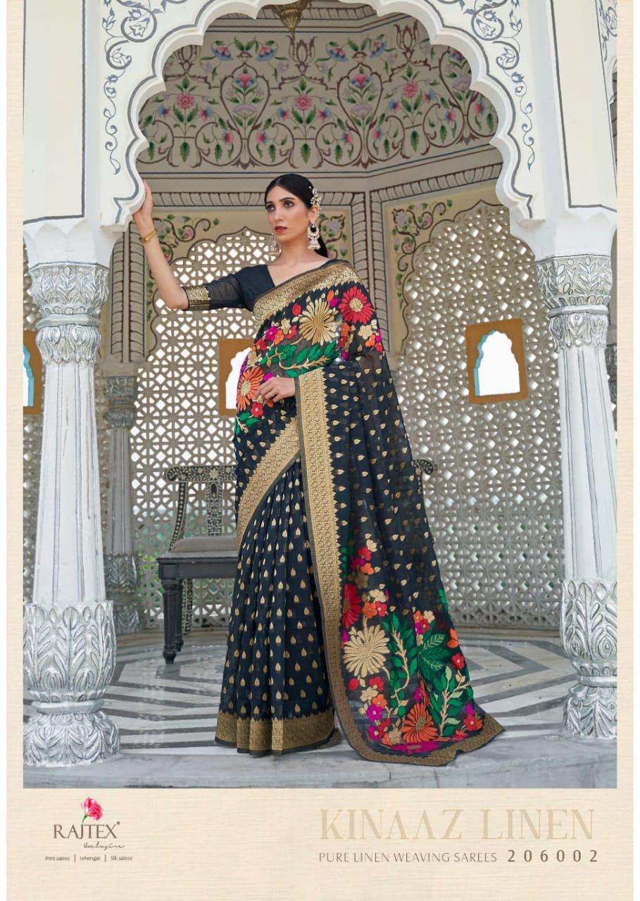 rajtex kinaaz linen series 206001 to 206006 pure linen weaving silk sarees collection