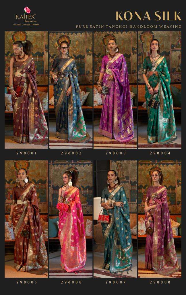 rajtex kona silk 298001-298008 series pure satin tanchoi handloom weaving sarees