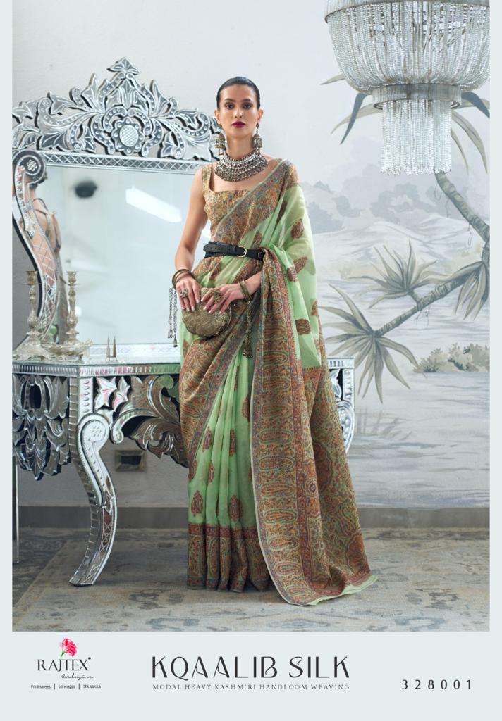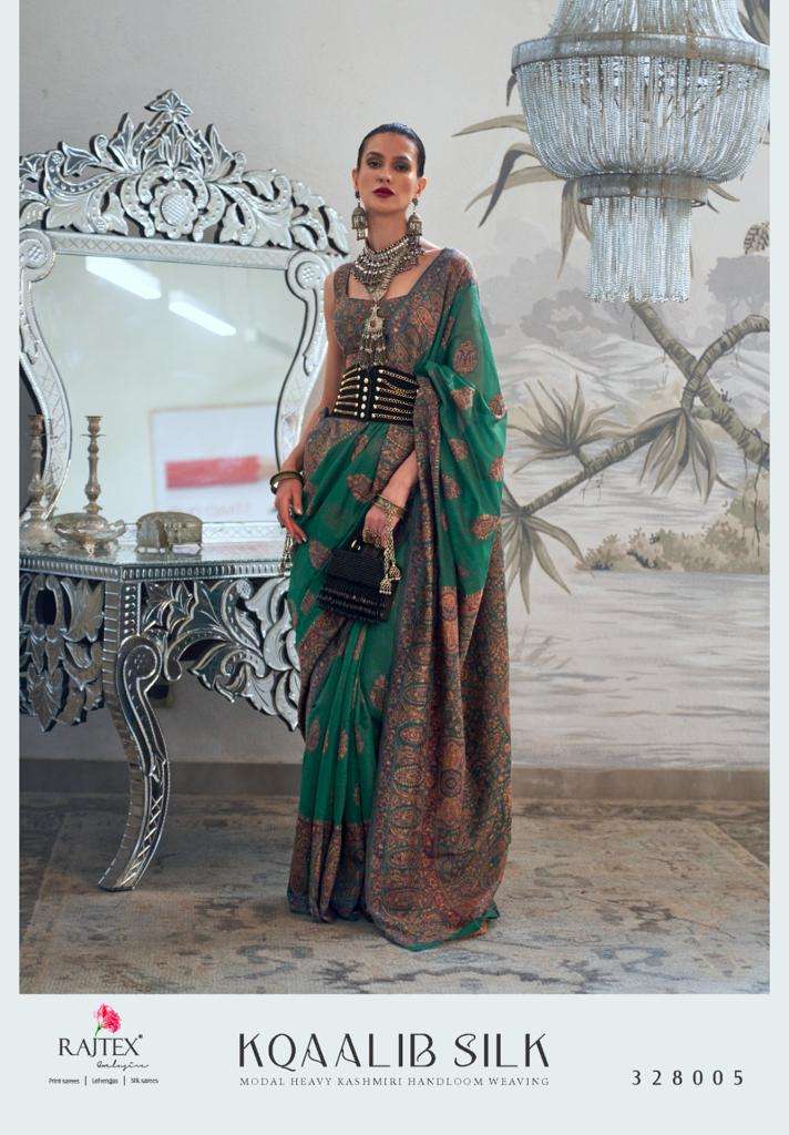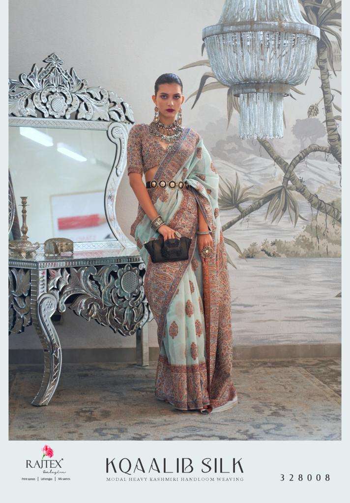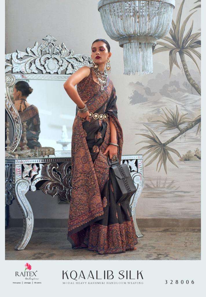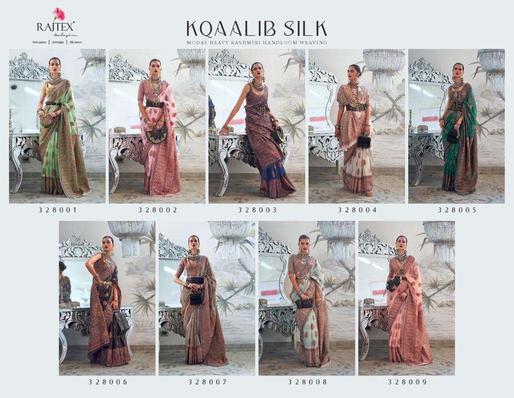 rajtex kqaalib silk 328001-328009 series modal heavy kashmiri handloom weaving sarees