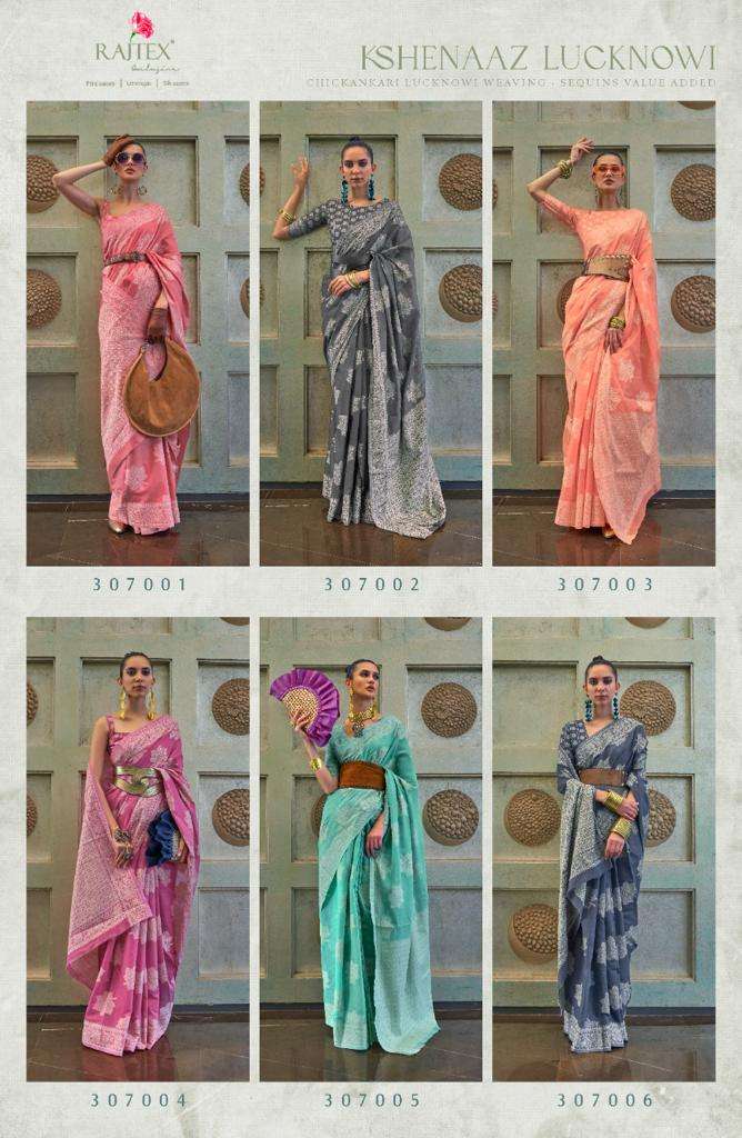 rajtex kshenaaz lucknowi 307001-307006 series chikankari weaving sarees