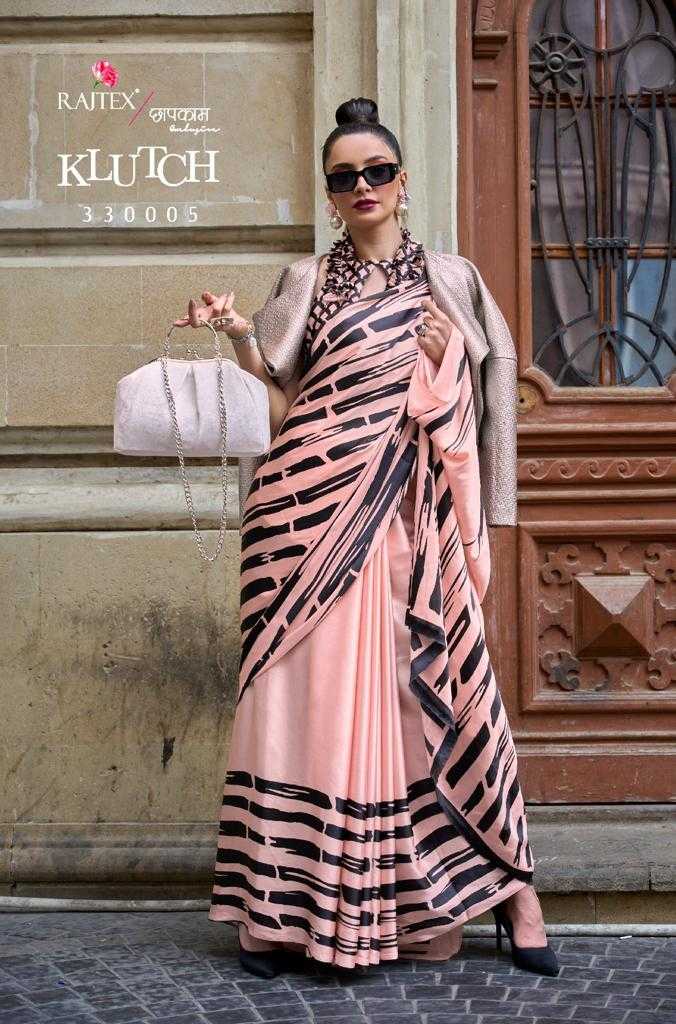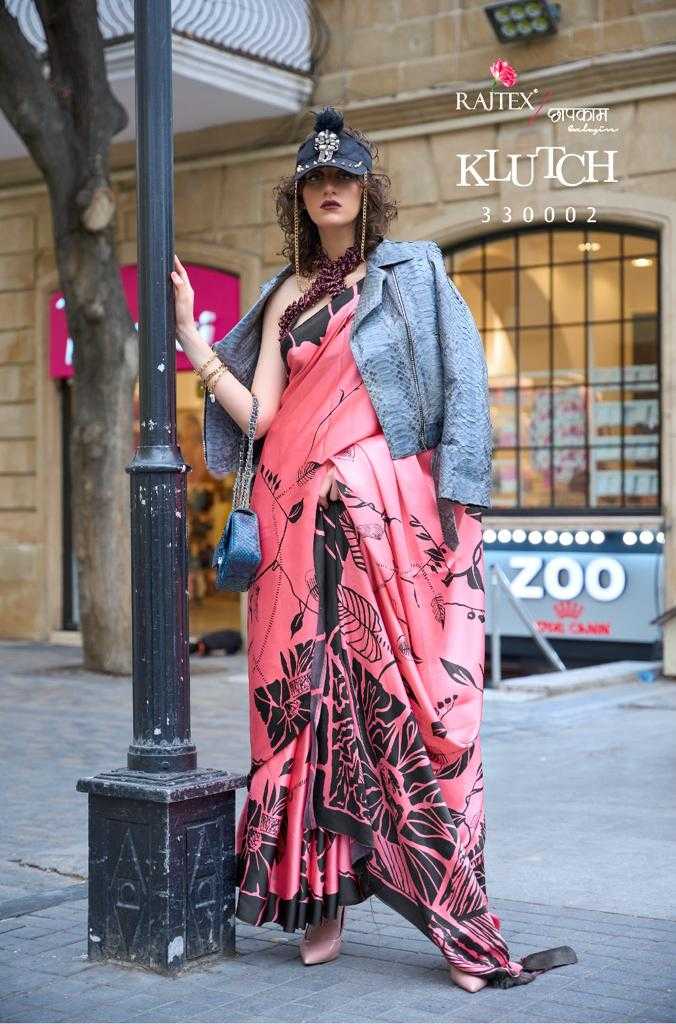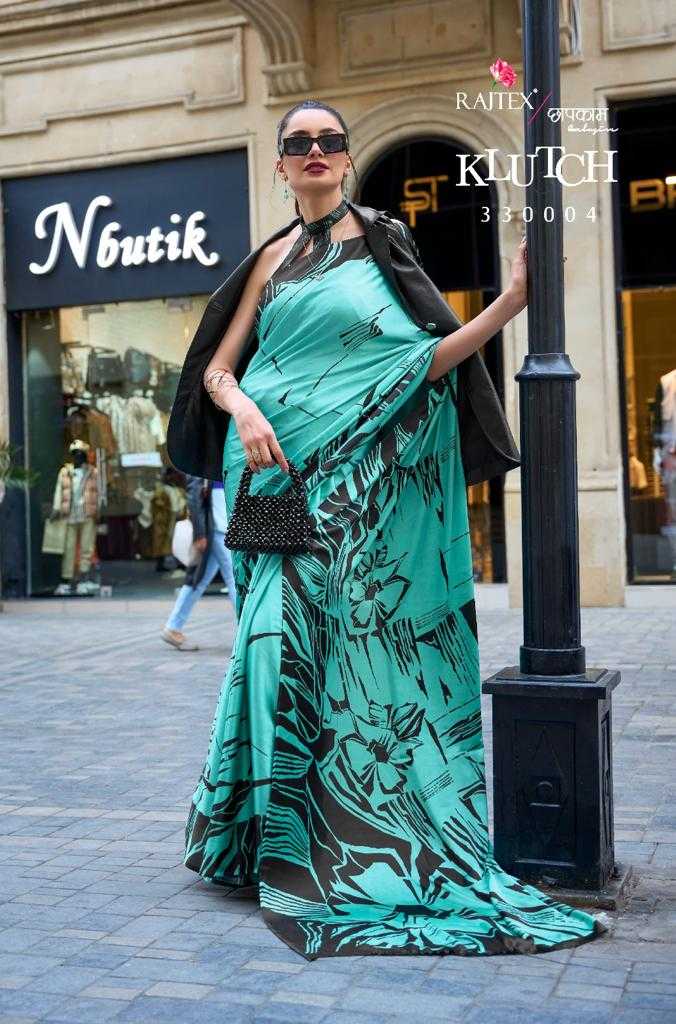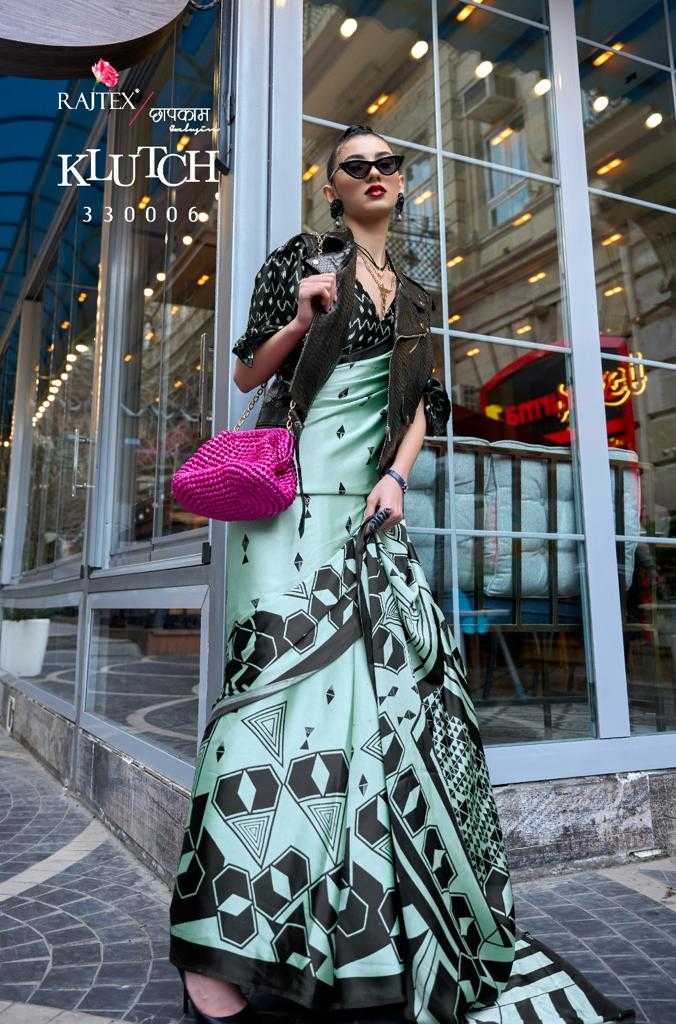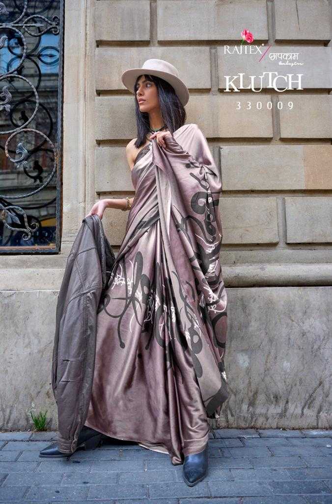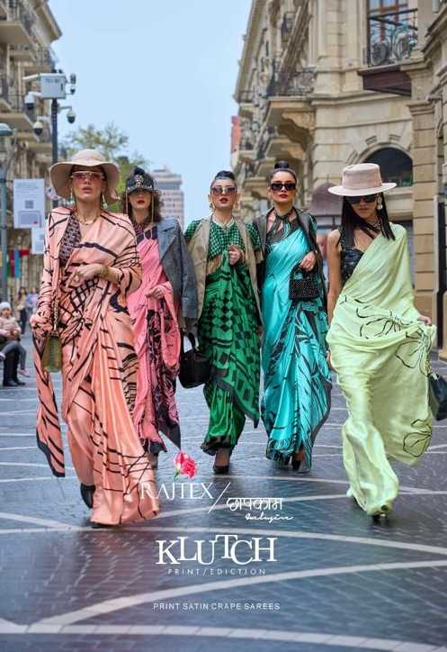 rajtex launch klutch 330001-330009 stylish satin crape saree new catalog